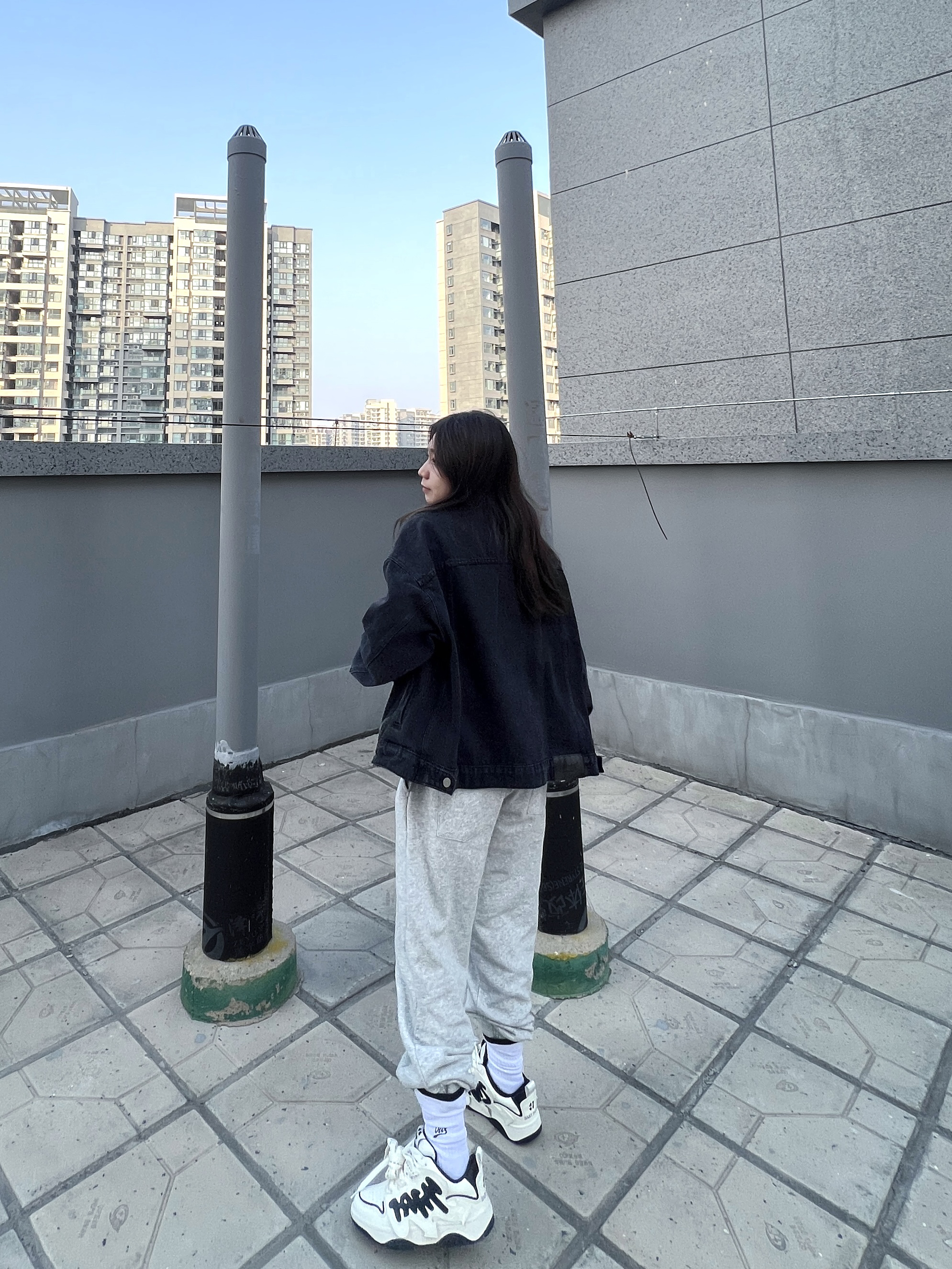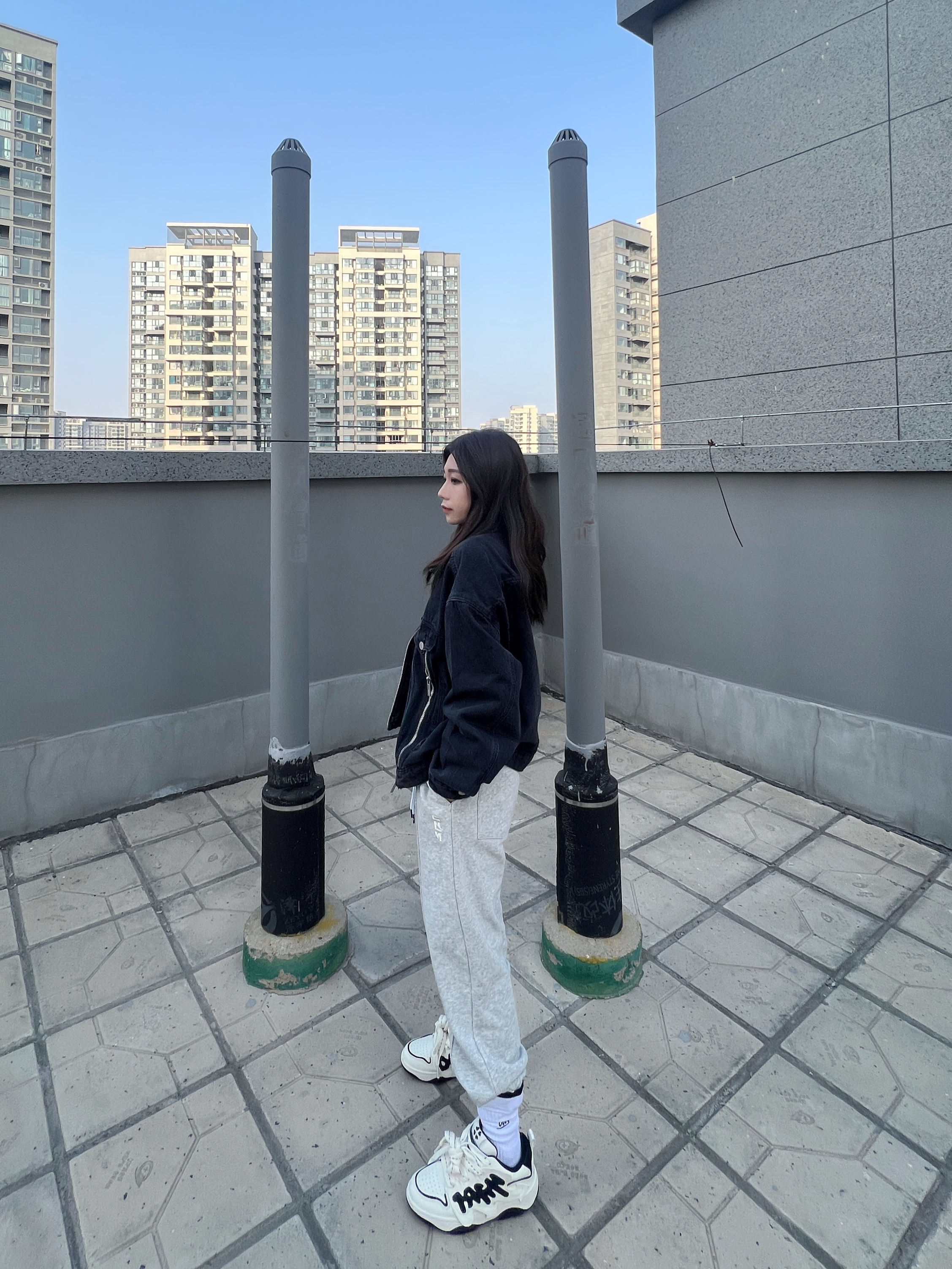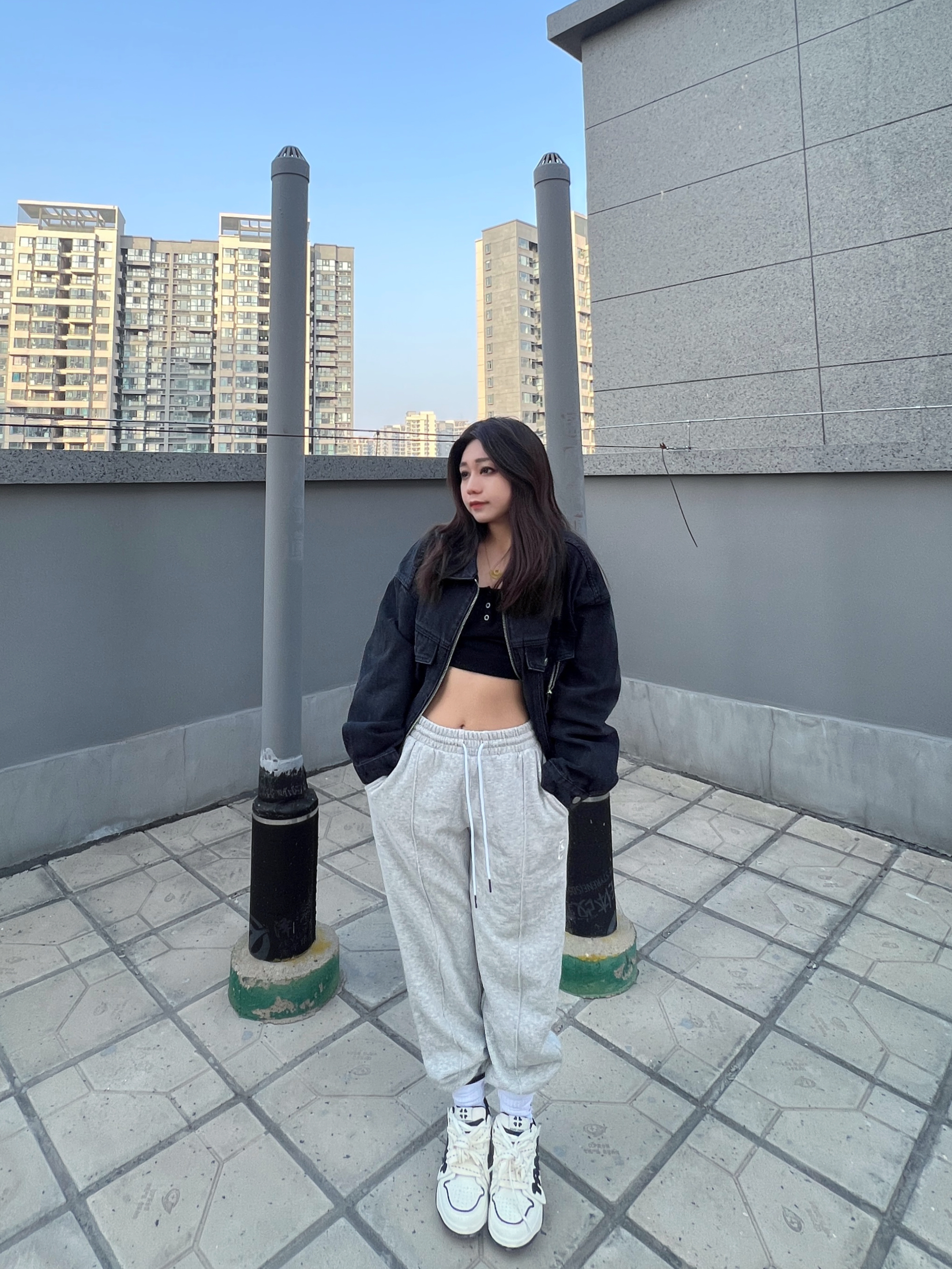 🌟没错!是你们的婷哥没错啦~ 嗨 bb们~到了秋冬就超级喜欢穿这种宽松又休闲的衣服 卫裤不止和卫衣穿搭,今天搭配了潮酷的牛仔拉链外套,黑牛仔我就很爱啦,搭配背心穿又辣又酷呢! 简约的穿搭我会选择一双百搭的球鞋👟叛逆者黑白配 秋冬的穿搭不用太繁琐哦!