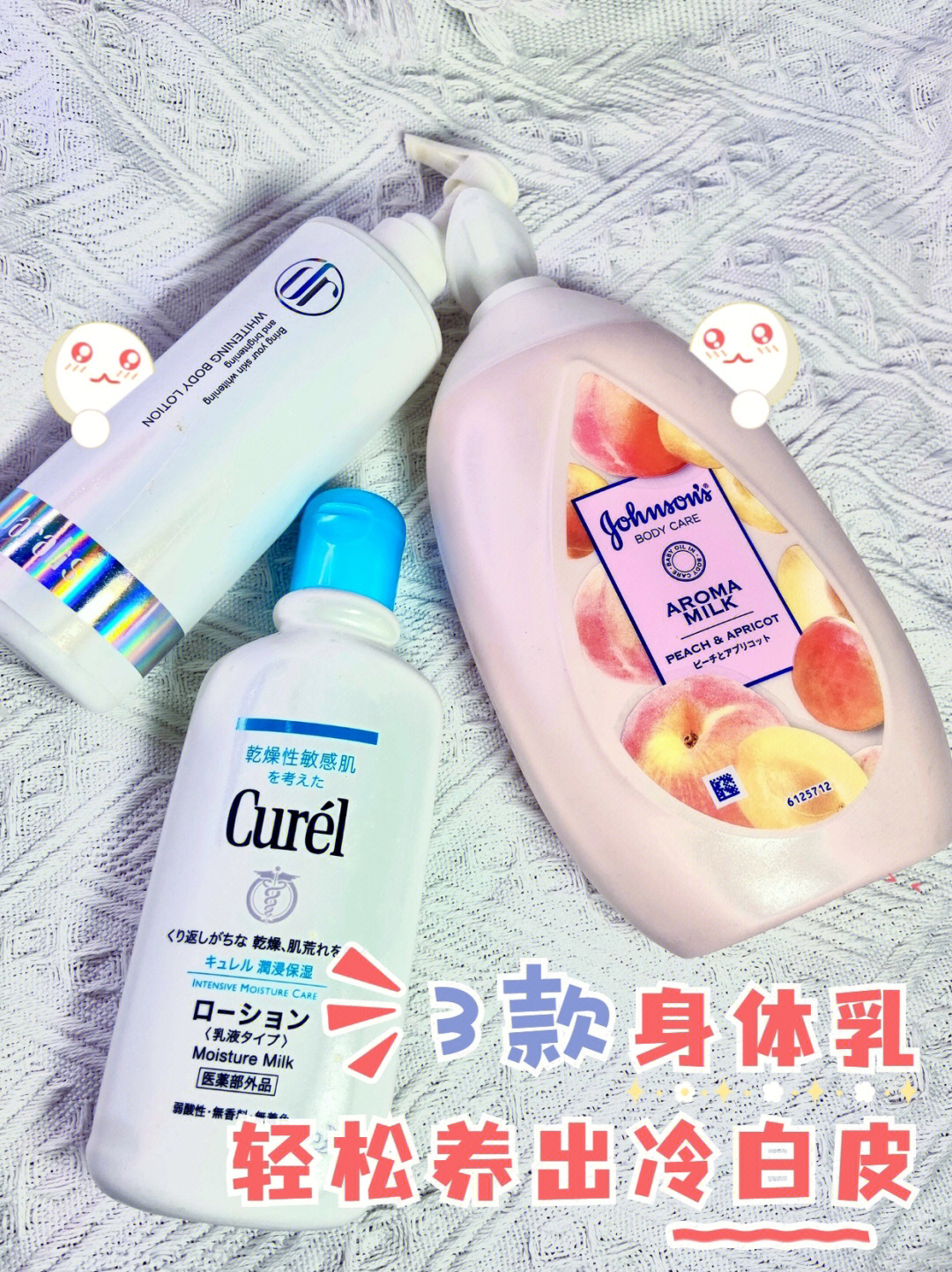 咱就是说,女孩子真是一年四季都离不开身体乳,今天就跟大家分享3款我最近比较爱的身体乳,滋润度都还不错,而且不会粘粘的!姐妹们要理性种草吖~🍃 🍬珂润身体乳 🍬日本版强生身体乳桃子味 🍬笛爱儿美白滋润身体乳 身体乳 美白身体乳 平价身体乳 好闻的身体乳有哪些
