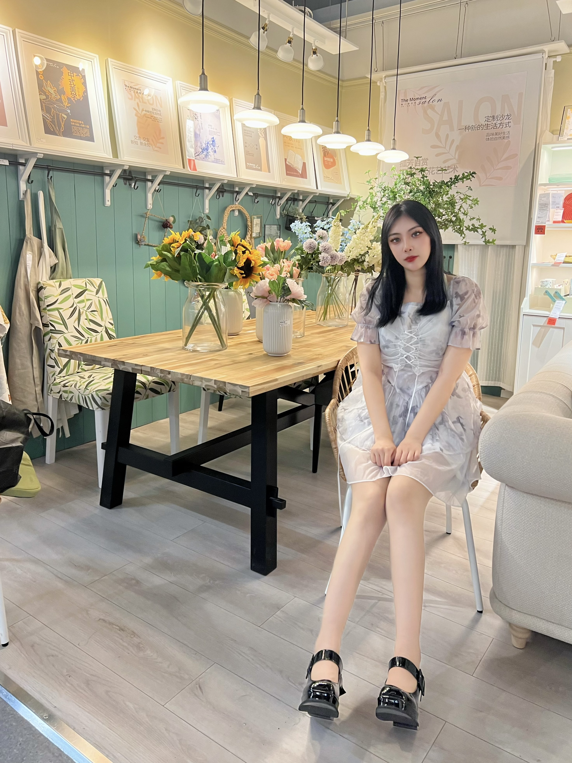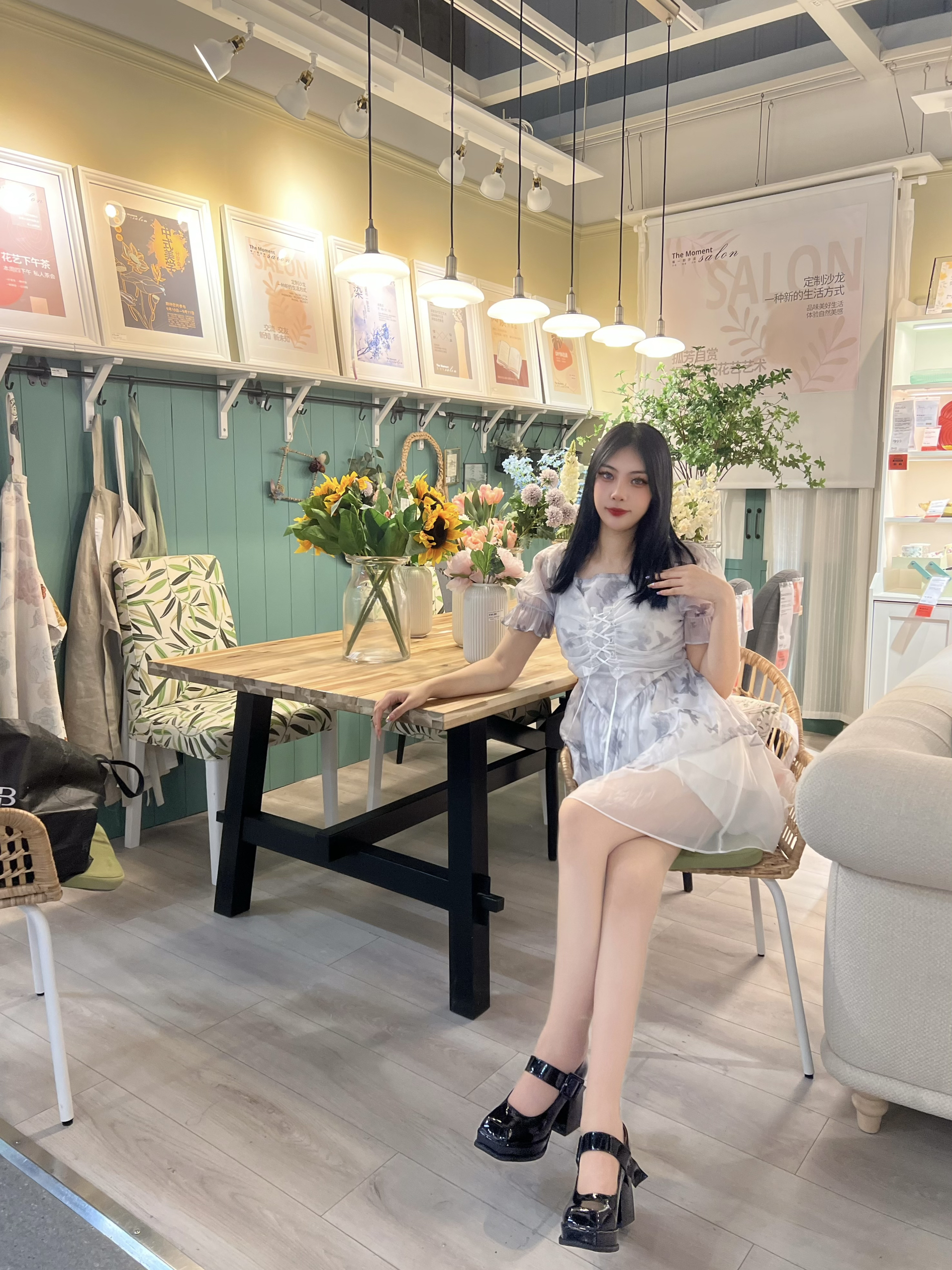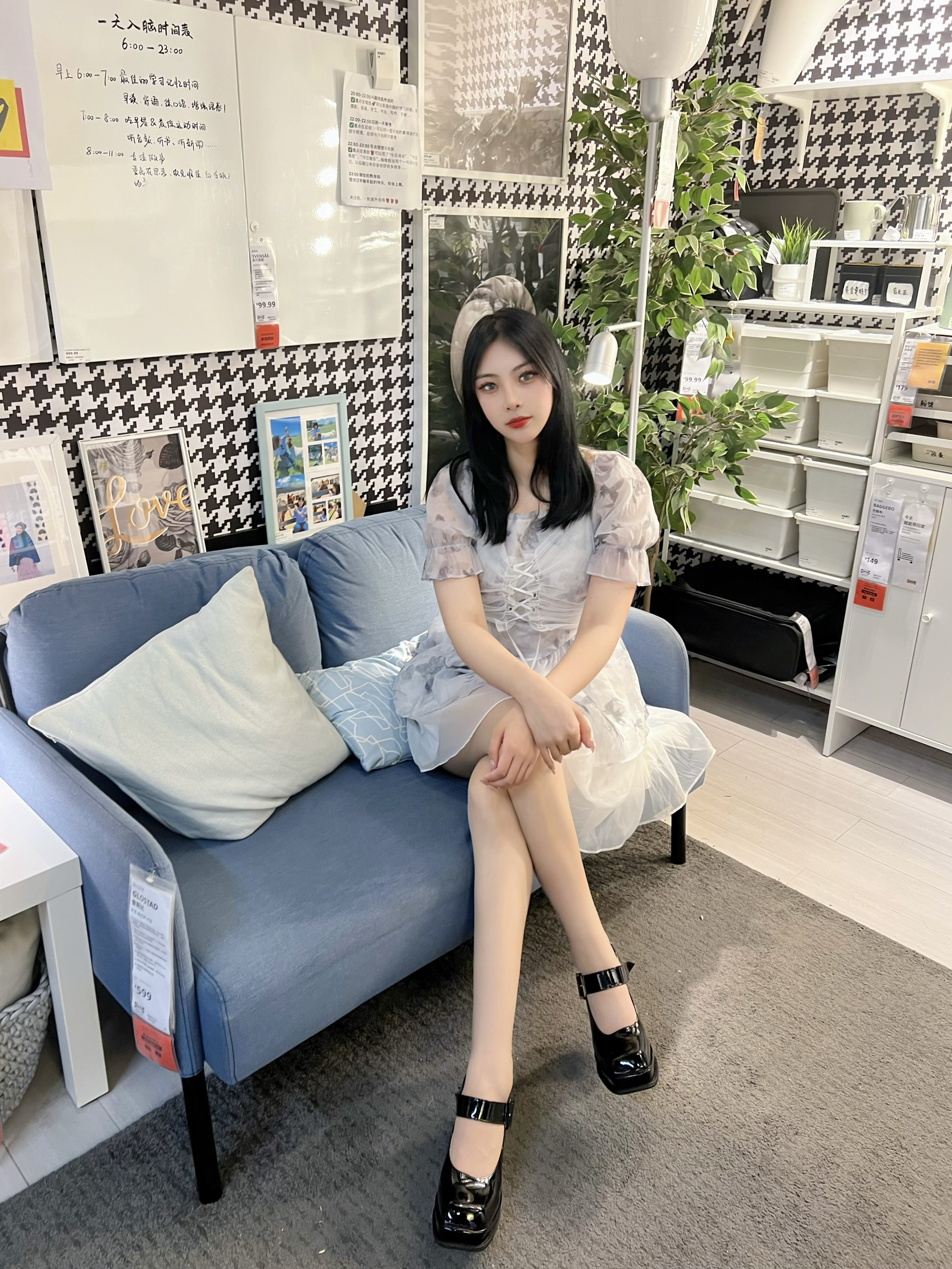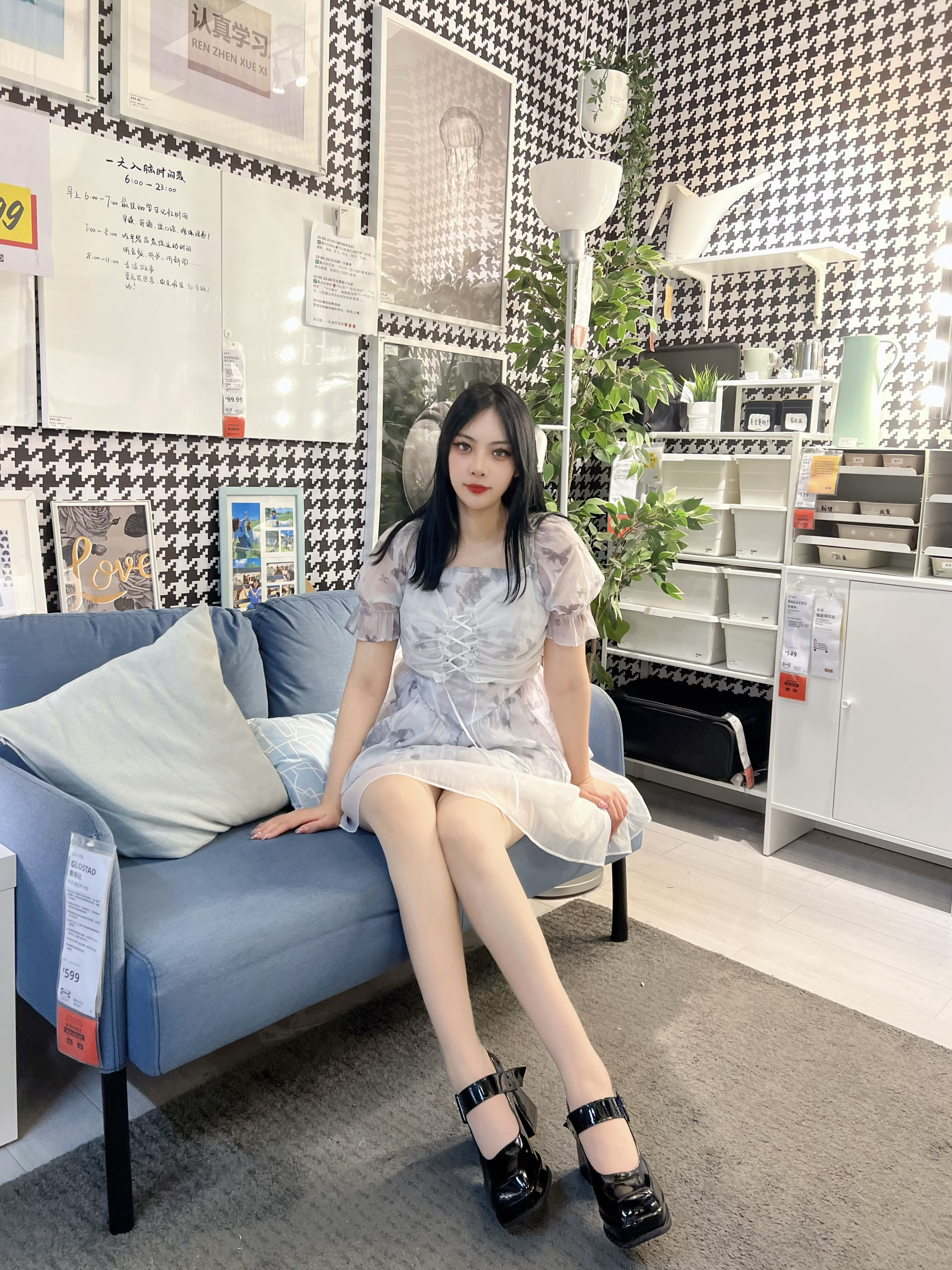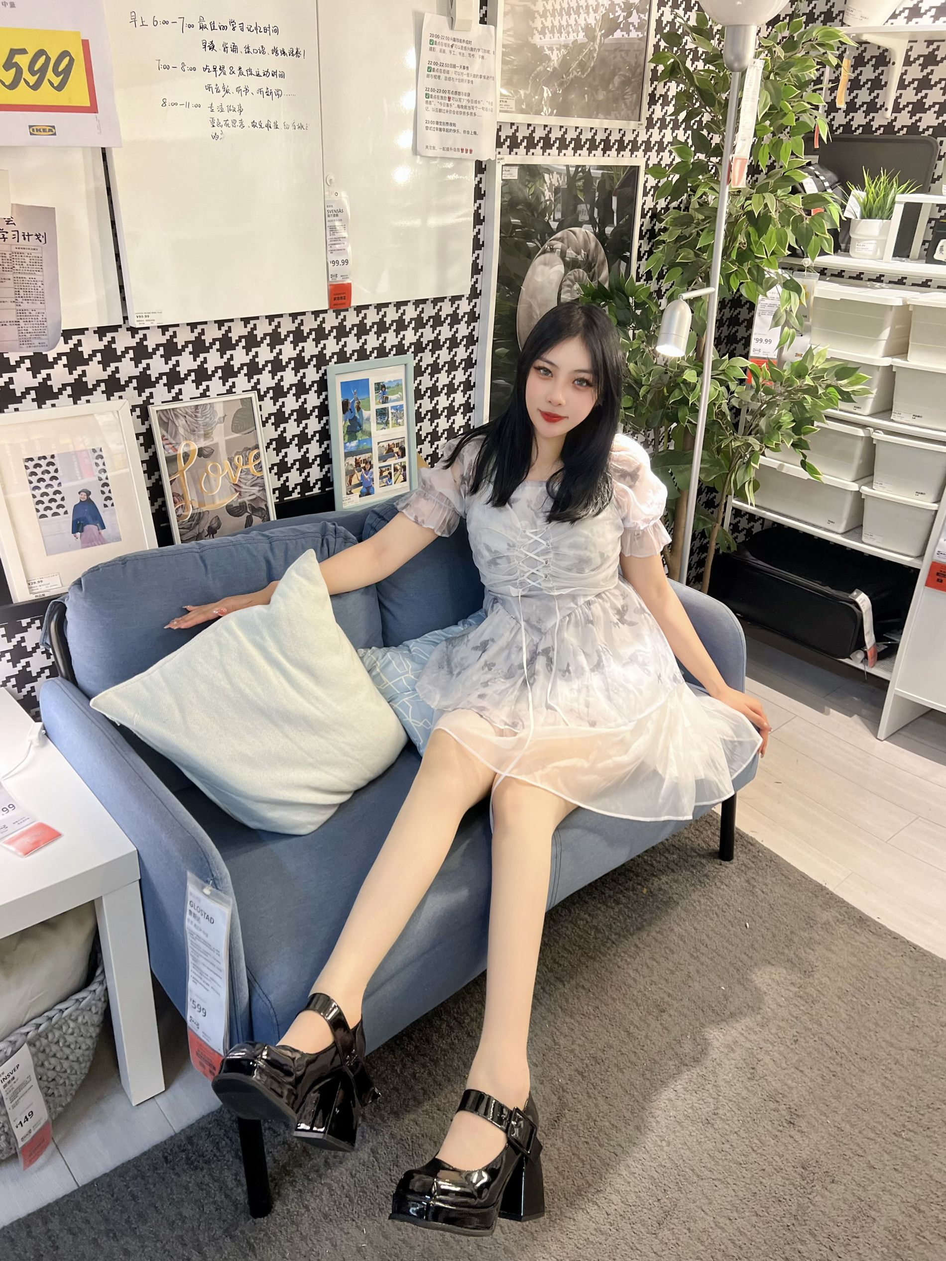 🧦:涞觅 ⭐️今天的穿搭很少女,很可爱,穿了一件水墨元素的白色蓬蓬公主裙,下身搭配了涞觅的肉色丝袜还有最近很流行的厚底增高芭比鞋~ ⭐️穿搭起来,优雅又日常,很显腿长,肉丝上身腿像加了磨皮一样,无暇~