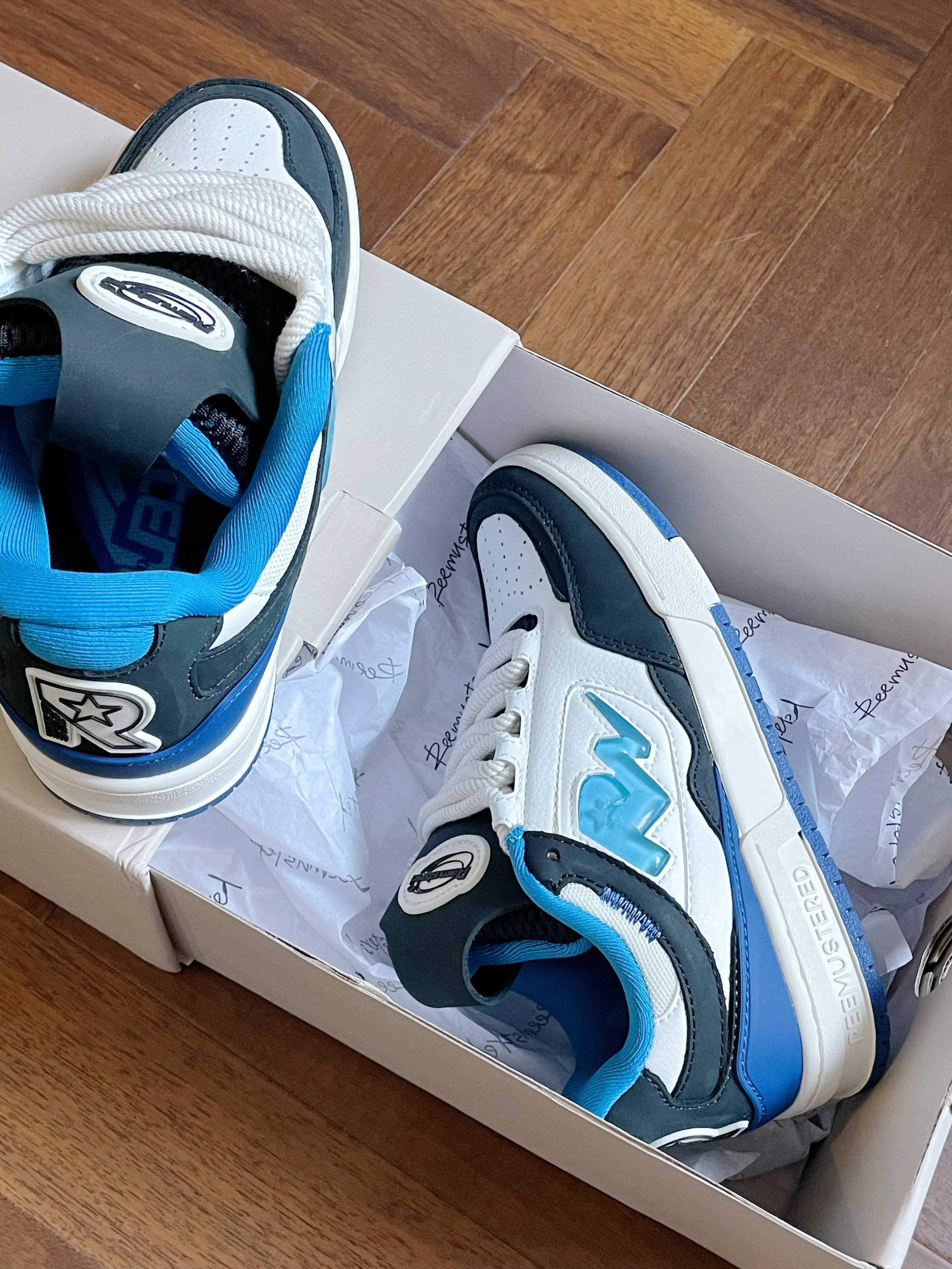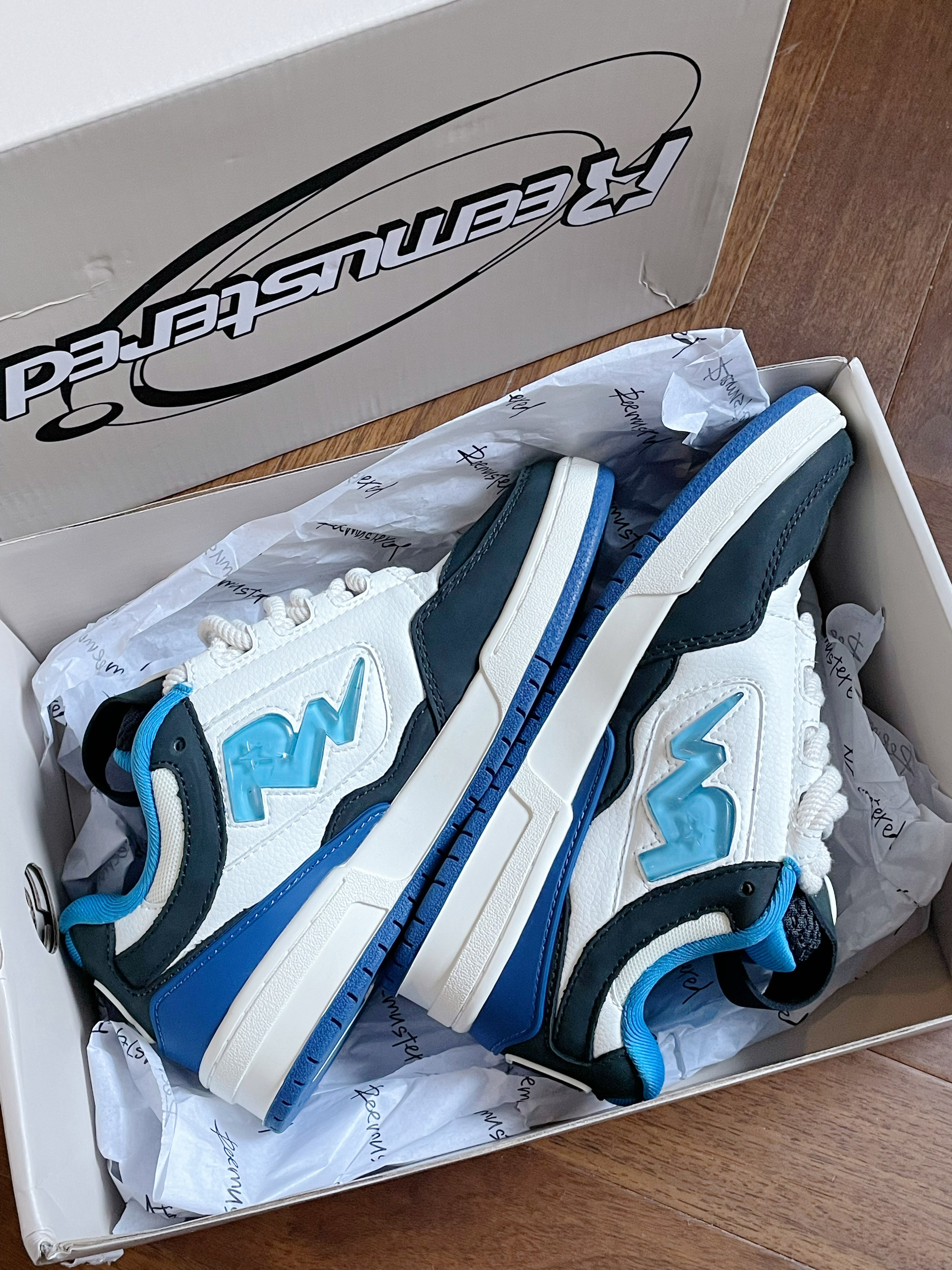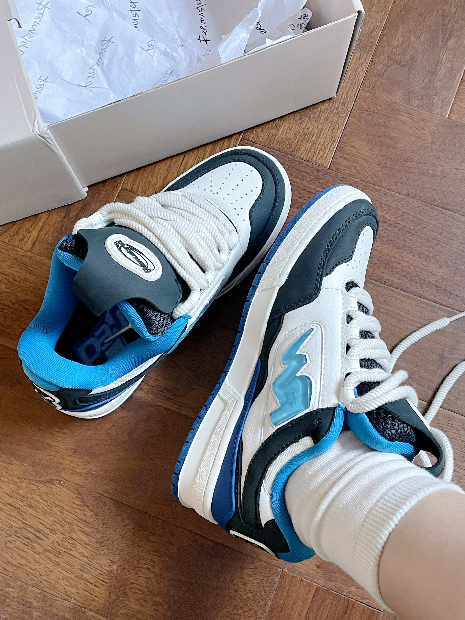 今年面包鞋的风真的好大 这双果冻小闪电好可爱了 白蓝配色超酷的 脚感非常好 完全不会磨脚的那种 超显腿长 配牛仔裤穿真的绝了