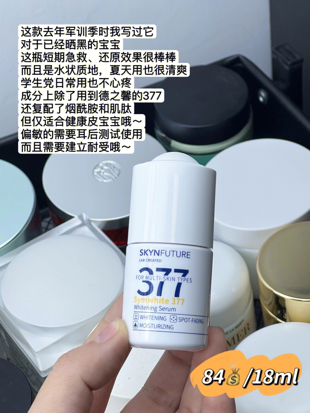 东西虽好,价虽不高,但也不要涂太多 变白白不是刷墙墙,不是涂越厚就能越白 日常可以:精华+精华、精华+面霜的组合 贵有贵的白法,便宜也有便宜的白法 今天给大家这几个百元左右的产品: ①春日来信三体vc ②谷雨小奶罐面霜 ③姐夫传明酸精华 ④肌肤未来377精华 ⑤若美欣377精华 另外,想要变白白,一定别忘记放晒晒 防晒霜是其次的,打伞、帽子之类的硬防晒不能丢 感谢几家品牌爸爸的寄品,但使用分析保管...