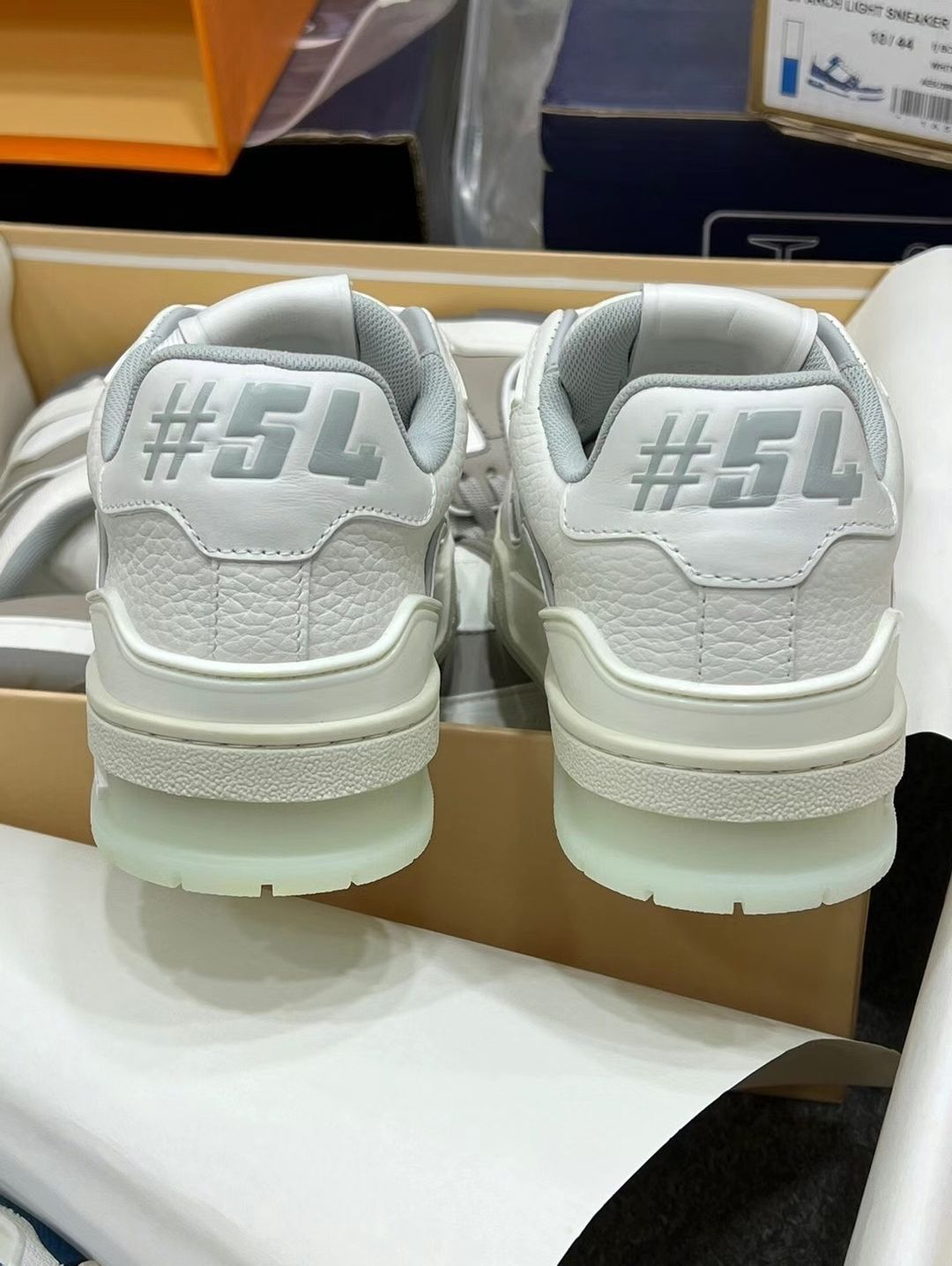 男装艺术总监 Virgil Abloh 以古着篮球鞋为蓝本,创作 LV Trainer 运动鞋。粒面小牛皮鞋舌呈现纯净色调,设计师手写体路易威登标识压印一侧,后部#54标识追溯品牌诞生的1854年。 质感好鞋,值得入手🤭🤭🤭