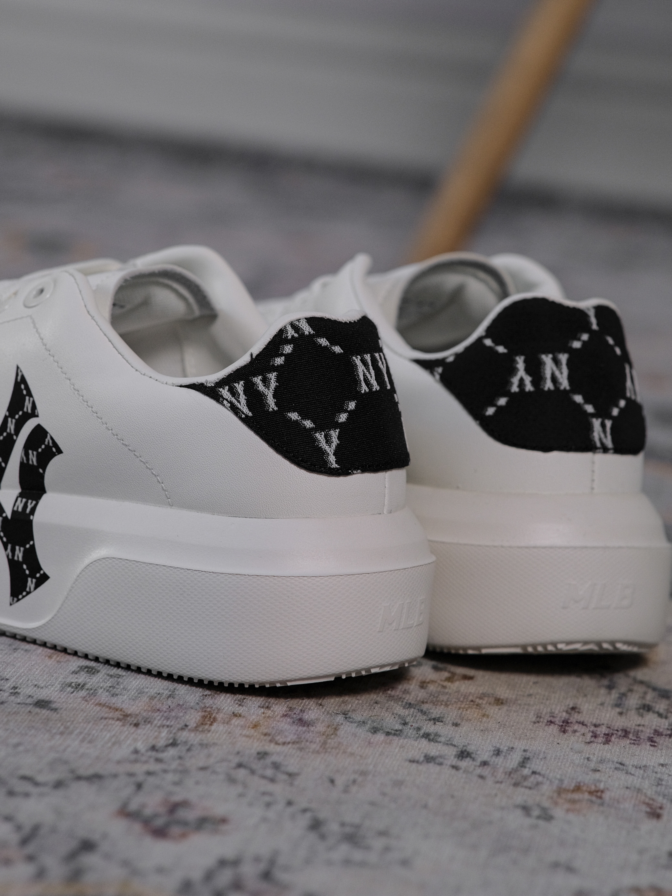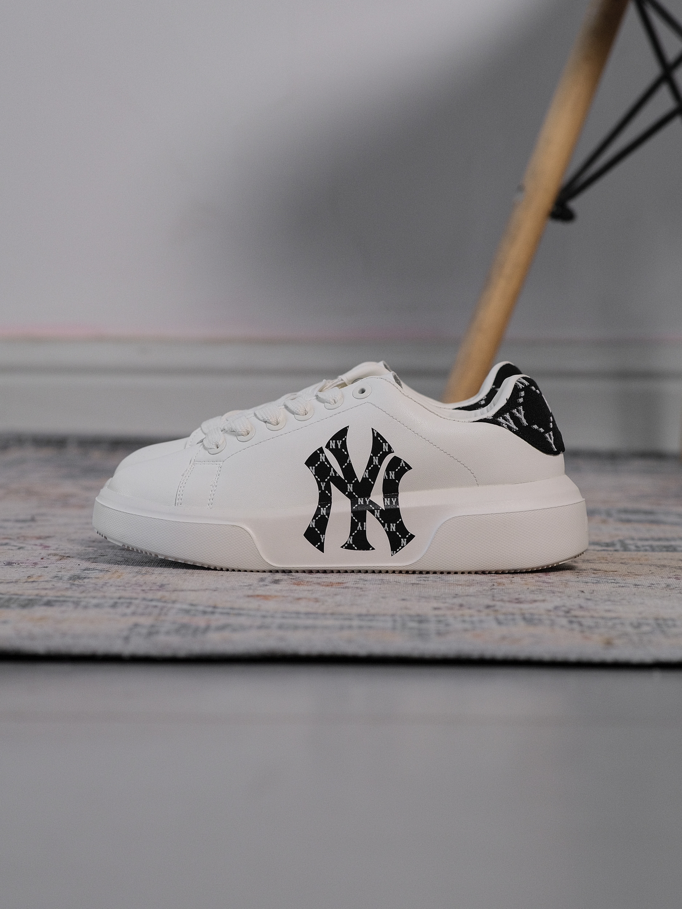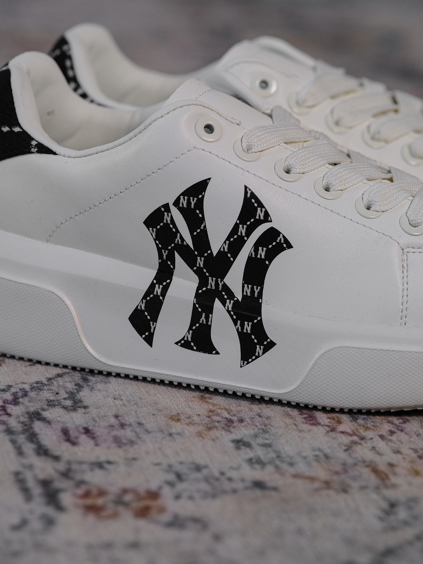 哟!wassup!大家好!今天分享一双超赞的复古风格厚底板鞋,就是这双MLB的Chunky Classic的钻石老花黑白配色鞋款。 全鞋采用到了极其简约的外观设计,整体配色以白色为基底,鞋侧与后跟部分采用到了黑色的钻石老花图案进行点缀,不仅丰富了全鞋的细节,更是让高级感拿捏的十分到位。 材质方面采用合成革为主,平时打理起来也相对方便,而且加厚的外底与EVA鞋垫也给予全鞋不错的舒适性。