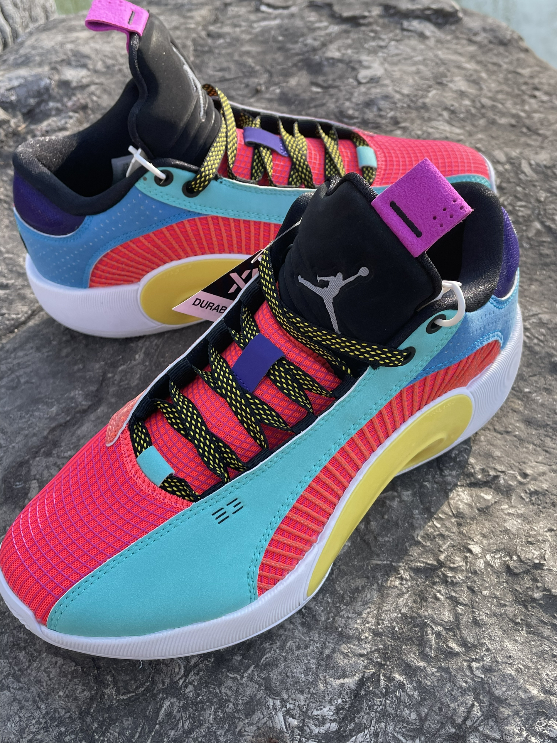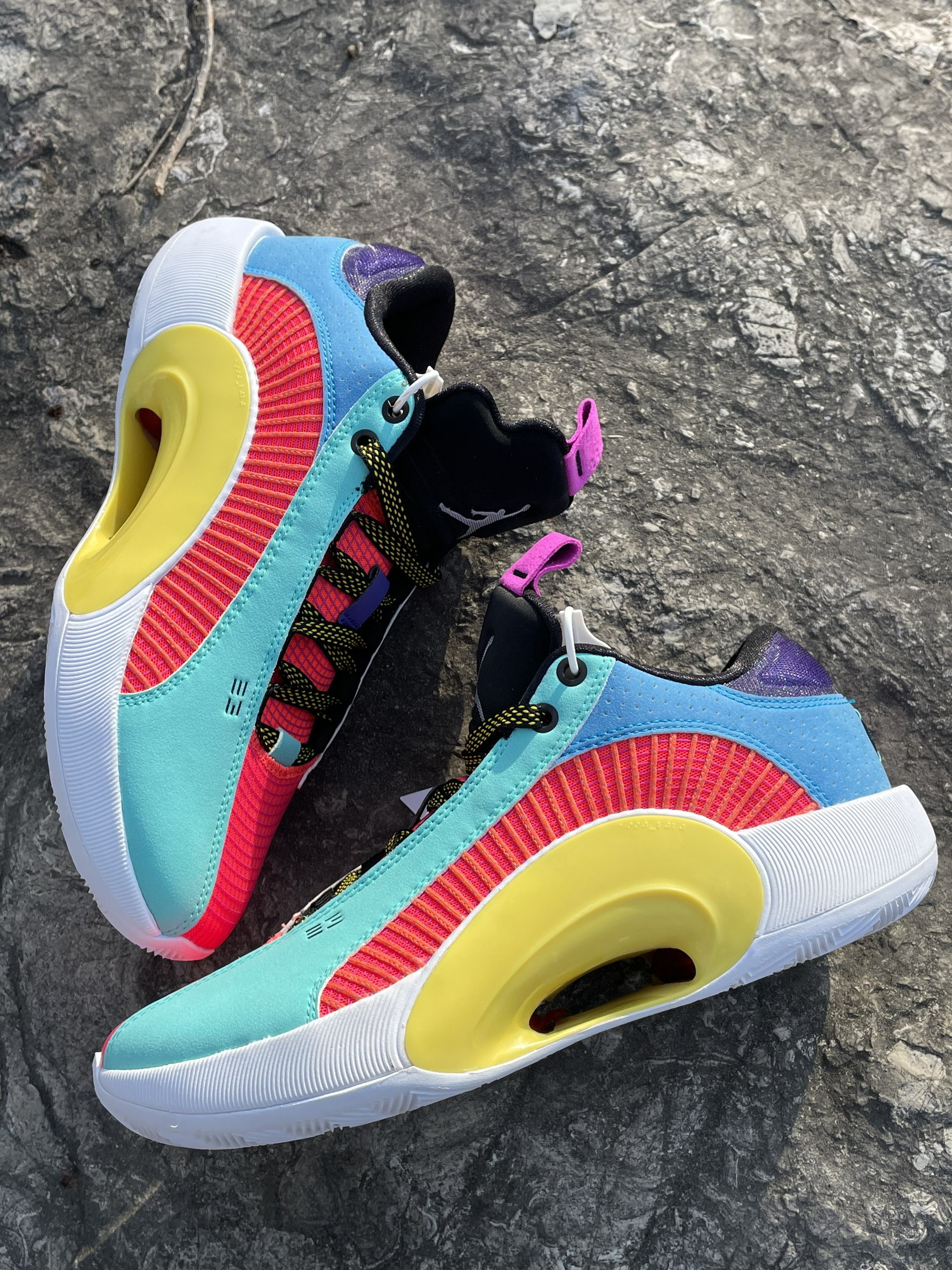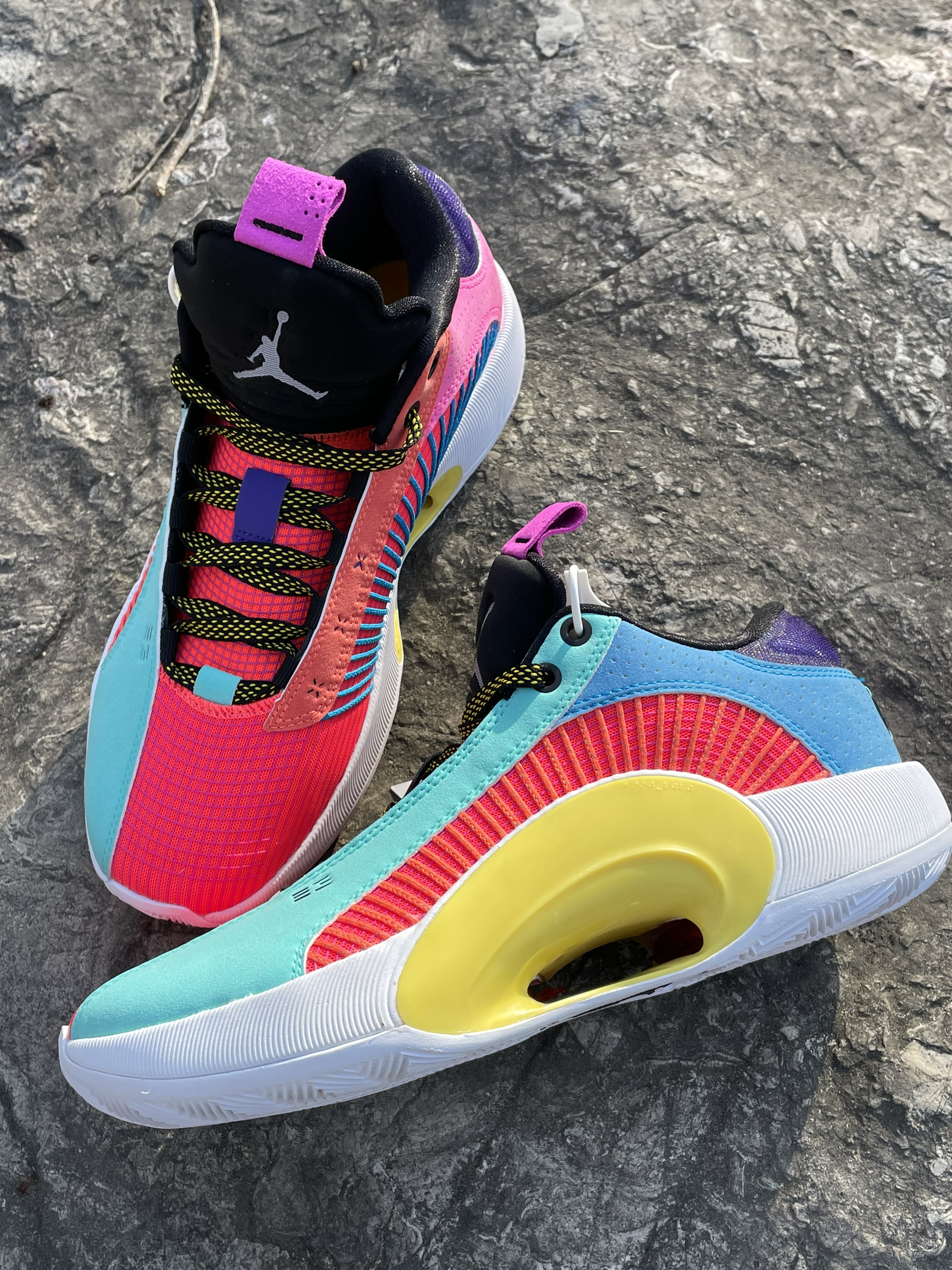 本篇笔记关联了Air Jordan 35 篮球鞋 可视Zoom防滑耐磨舒适减震时尚百搭支撑包裹性实战 蓝色/粉红/黄色等商品,为用户提供真实的使用体验和购买参考。