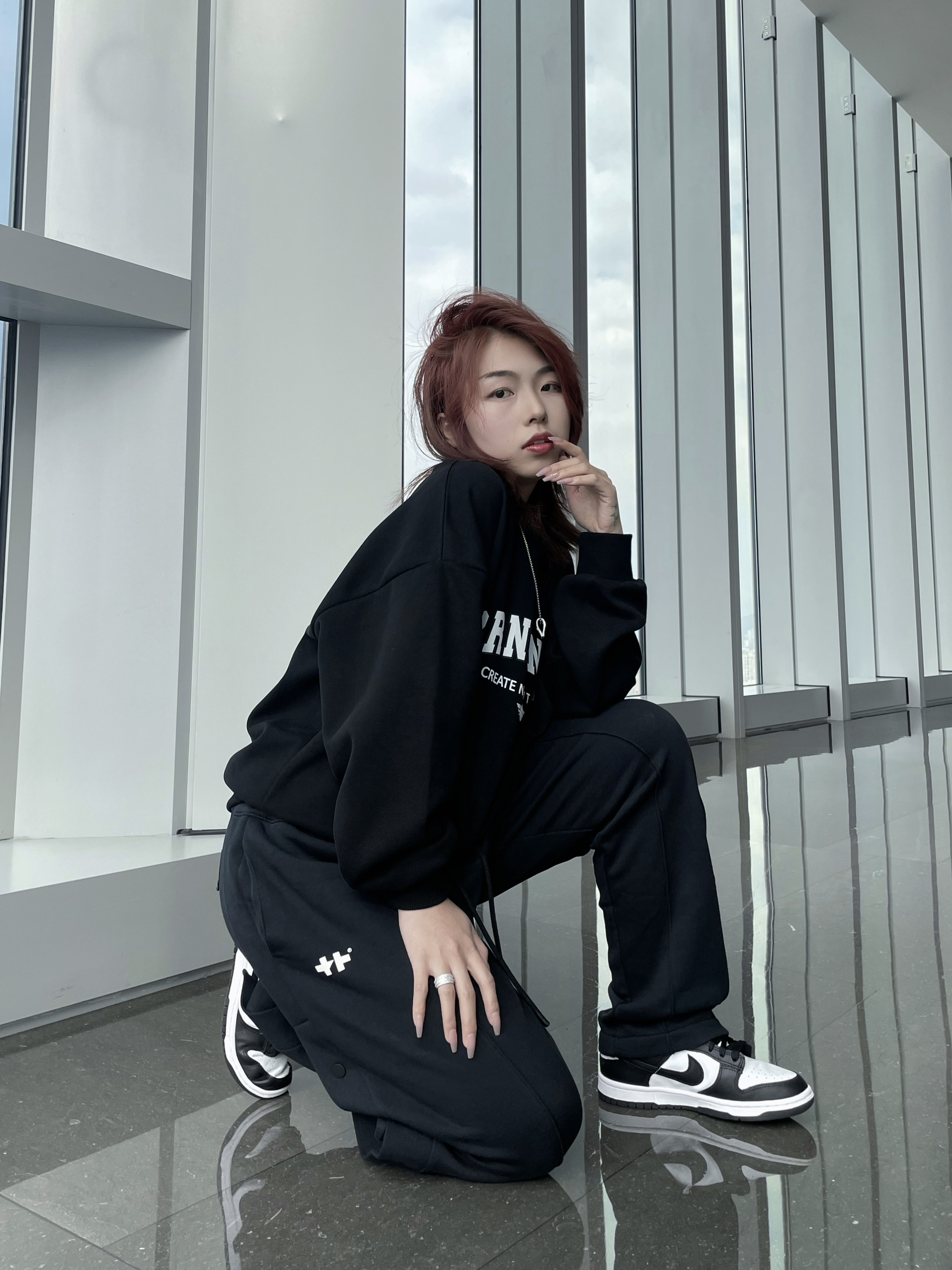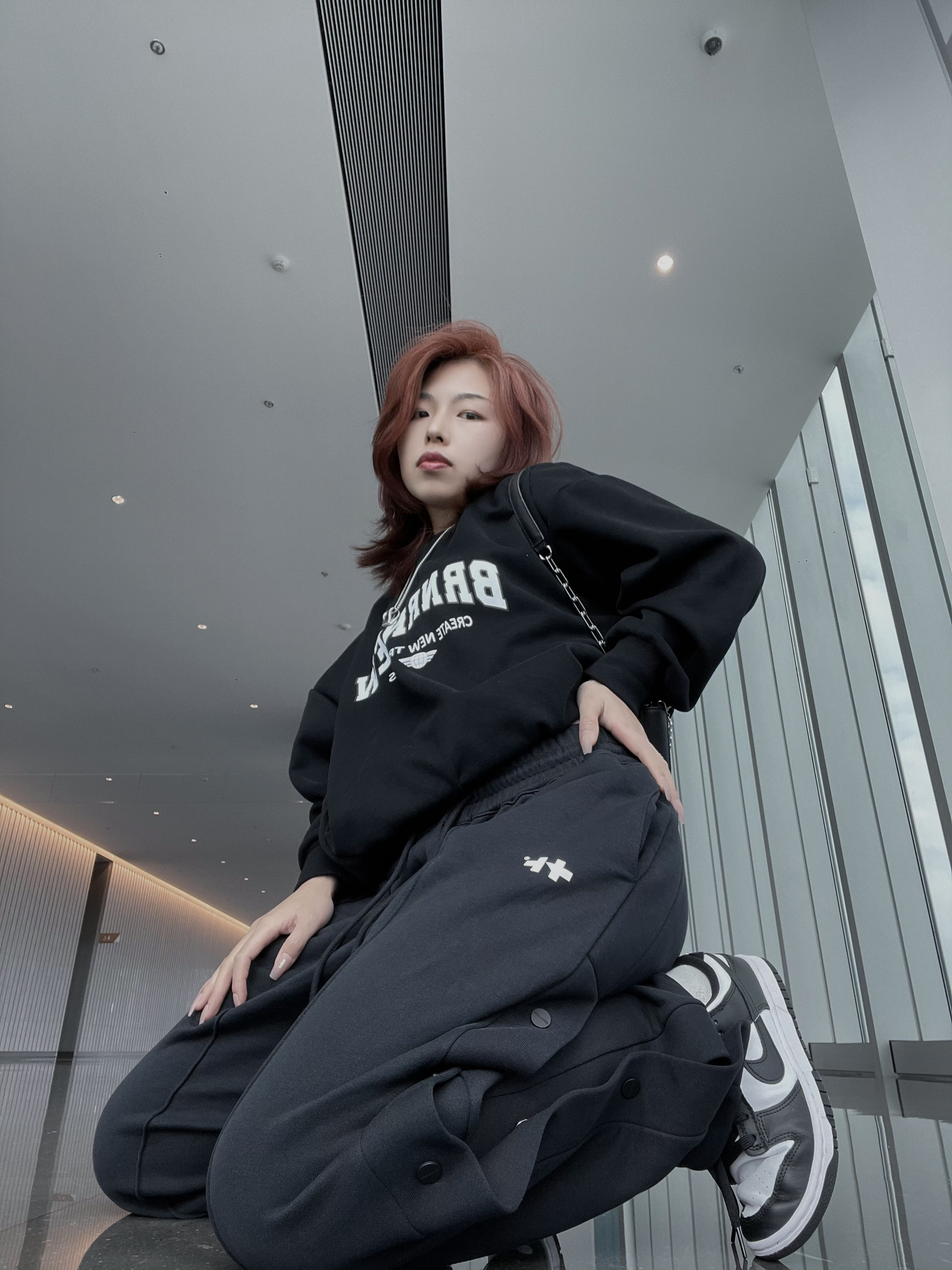 All BLACK和blingbling绝配🙈 黑色显瘦效果很nice 📙:简单的黑色卫衣卫裤也能搭的干净舒服又耐看 前段时间刚中的熊猫今天派上用场了!搭配全黑太好看了! 配上自带爆闪的配饰小细节拿捏住!王嘉尔同款真的香拥有明星同款就是这么简单! 👕:- 👖:EQUALIZER 👟:Nike dunk 熊猫🐼 💍:nothingbutmini