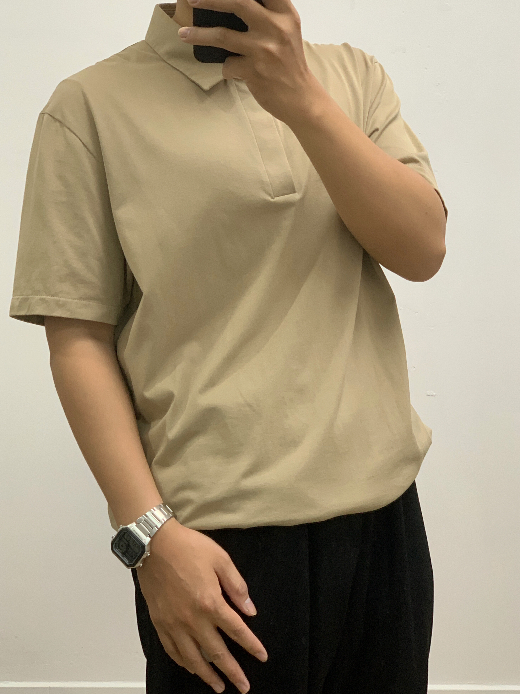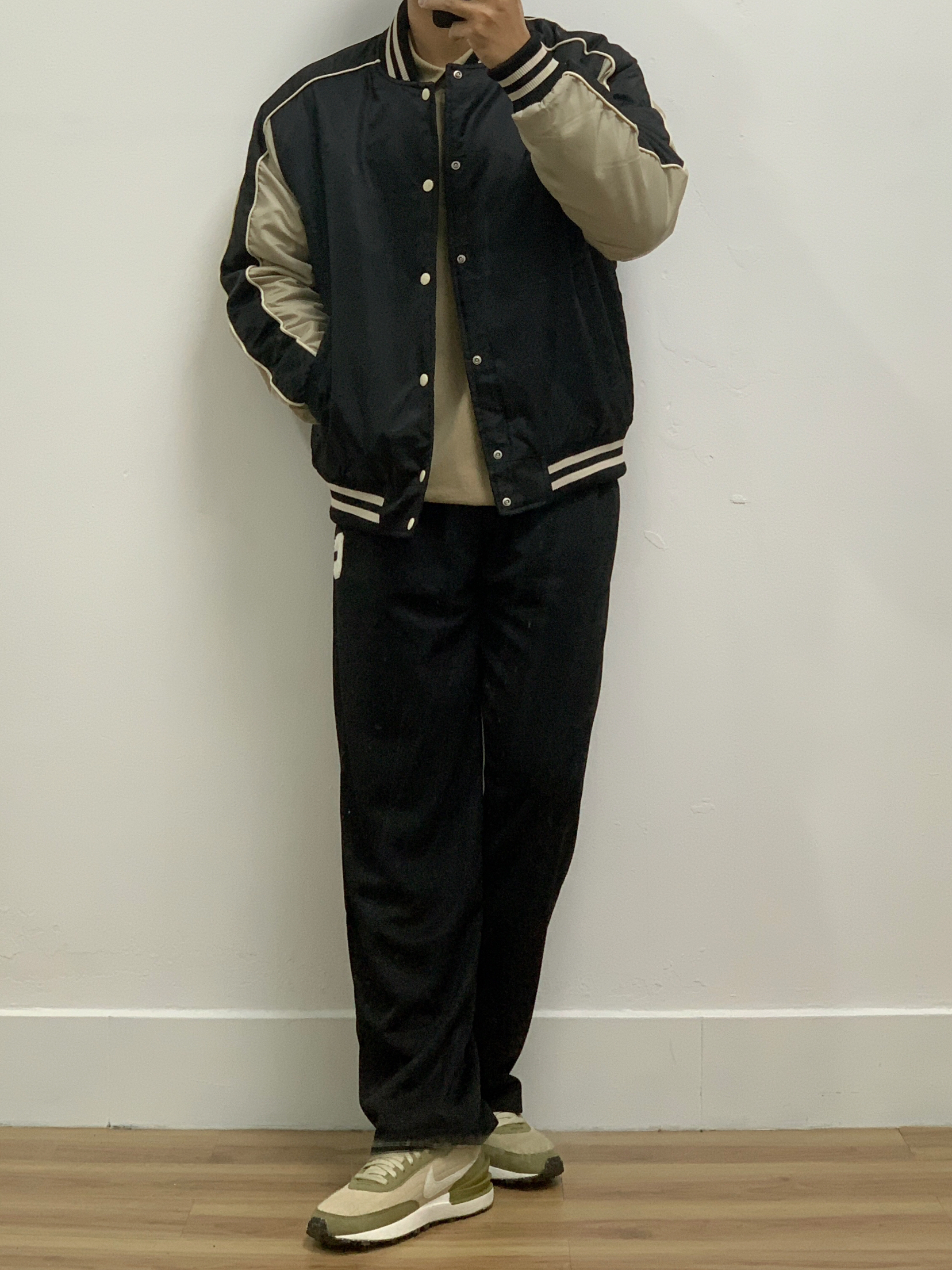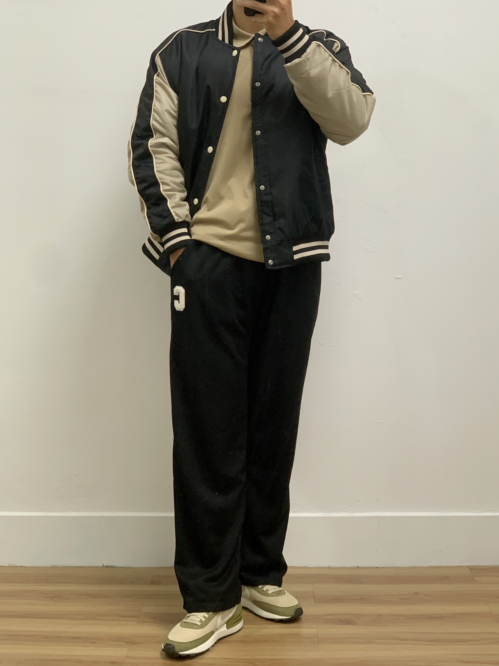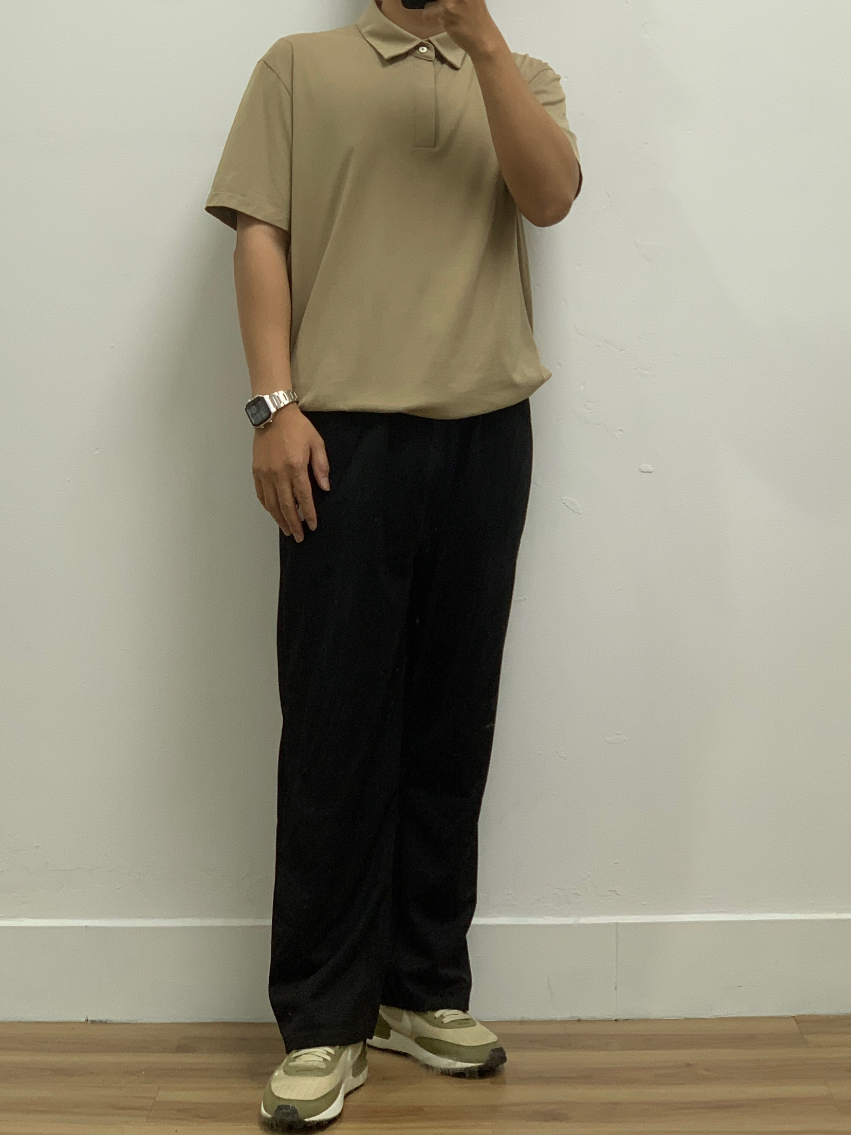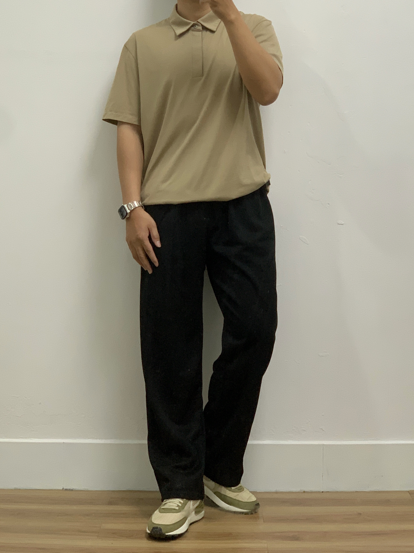 今日瞎搭: 卡其polo短袖 黑色拼卡其棒球服 黑色西裤 牛油果配色跑鞋🥑