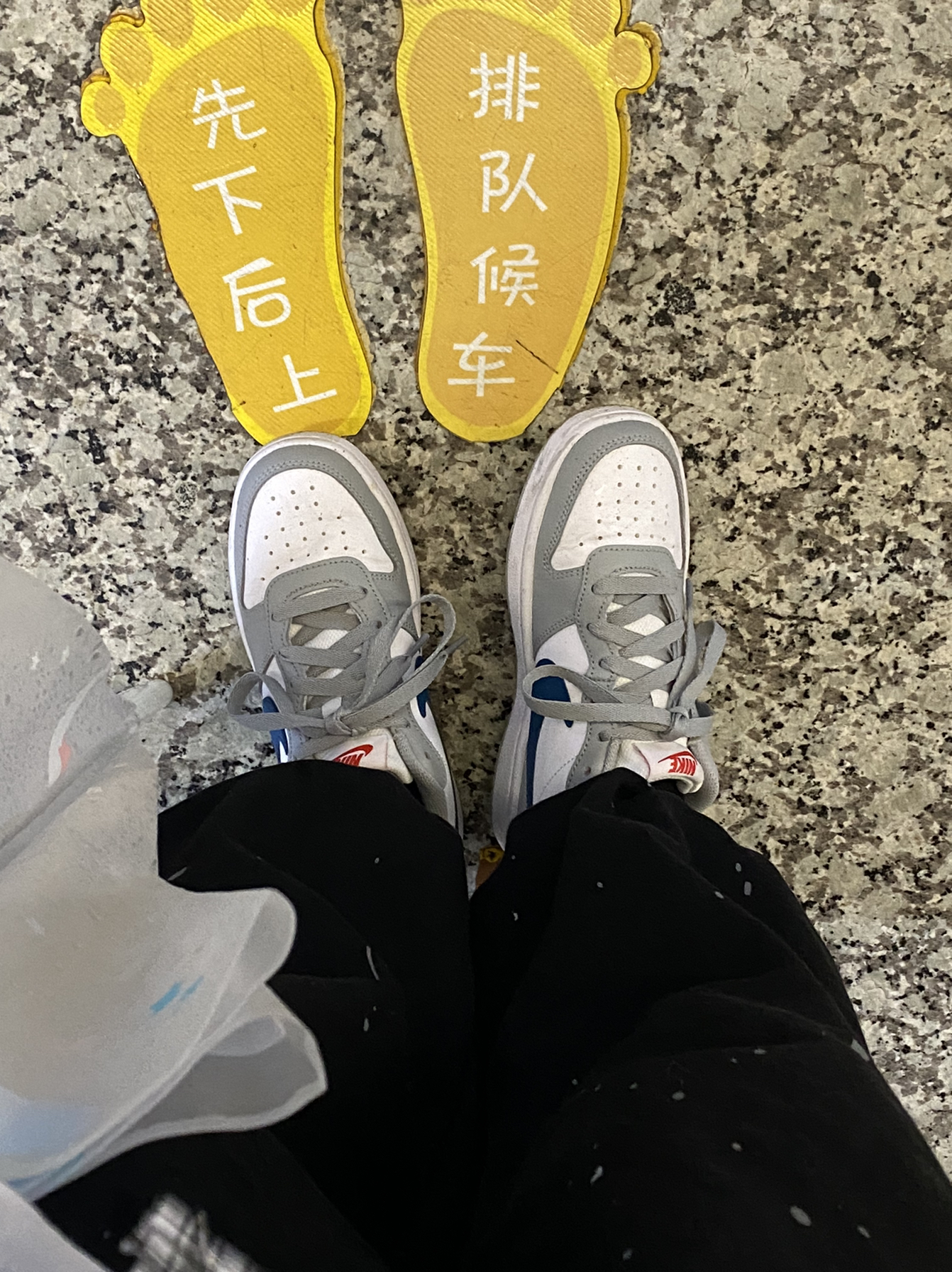 🧍♂️穿搭简介: 黑色裤子搭配灰白色鞋 👟球鞋:这款鞋很适合简洁风穿搭 👕上衣:穿的休闲风纯黑 👖裤子:黑色西装裤