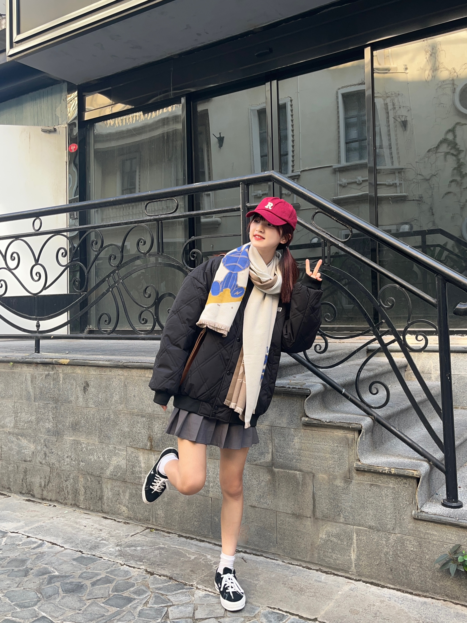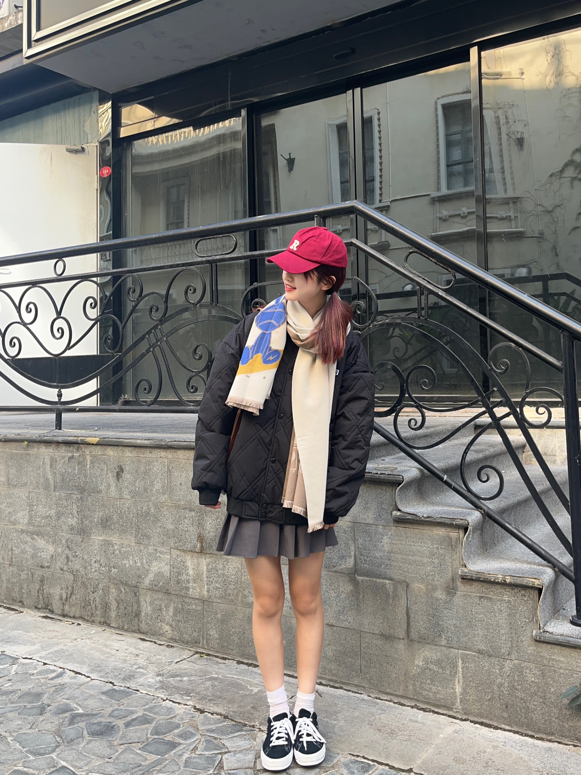 hii!大家好啊!这里是大双啊! 👧:172cm|52kg 今日LOOK👔 黑色羽绒服➕灰色百褶裙➕红色棒球帽🧢 是心动呀~糟糕眼神躲不掉又是放学日!嘿嘿嘿~ - 韩系学院风的bb们看过来! 好看的学生党黑色棉服被俺找到啦! 太好看啦韩国高中生本高! 学院风拉满!忒适合本人啦 穿上俺喜欢的小众滑板鞋👟 一起做韩里韩气的美女子吧~