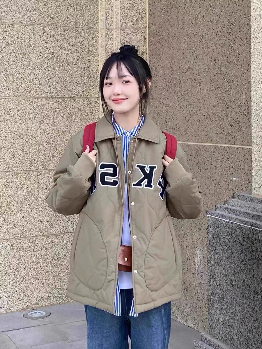 这一身棉服真的好有日系感啊!真的是非常适合校园感的女孩子们的日常穿搭 这一款棉服外套是非常百搭的款式,可以在里面随便搭配一个简单的内搭 这一款特别适合学生党们日常穿,有一种很青春的少年感,给人一种非常阳光可爱的感觉,性价比也是比较高的 (图源来自网络)