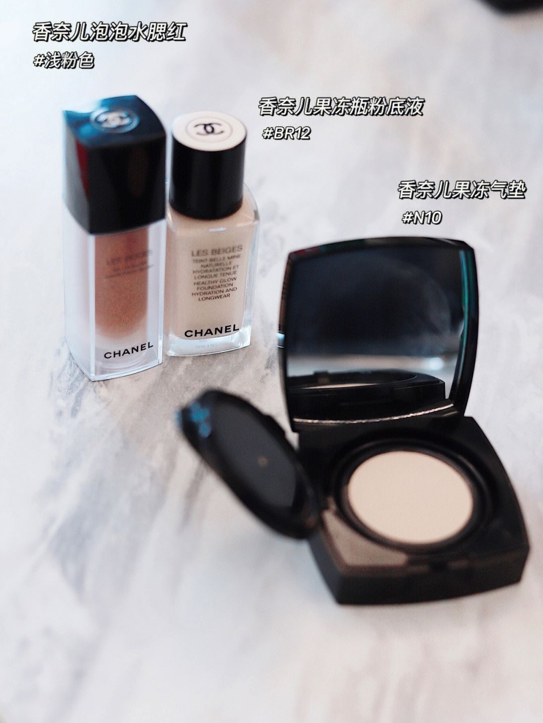 本篇笔记关联了Chanel/香奈儿 果冻气垫水粉底液 奶油肌 11g #N°10象牙白 适合白皙肤色、Chanel/香奈儿 泡泡水腮红单色液体腮红 妆容 15ml LIGHT PINK-浅粉色、Chanel/香奈儿 米色时尚粉底液果冻瓶 30ml #BR12 适合粉调偏白肤色等商品,为用户提供真实的使用体验和购买参考。
