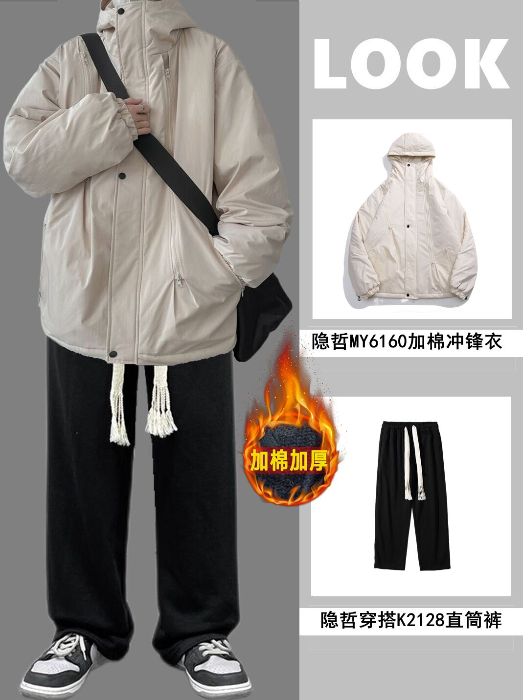 隐哲穿搭MY6160加棉连帽冲锋衣+隐哲K2128直筒裤