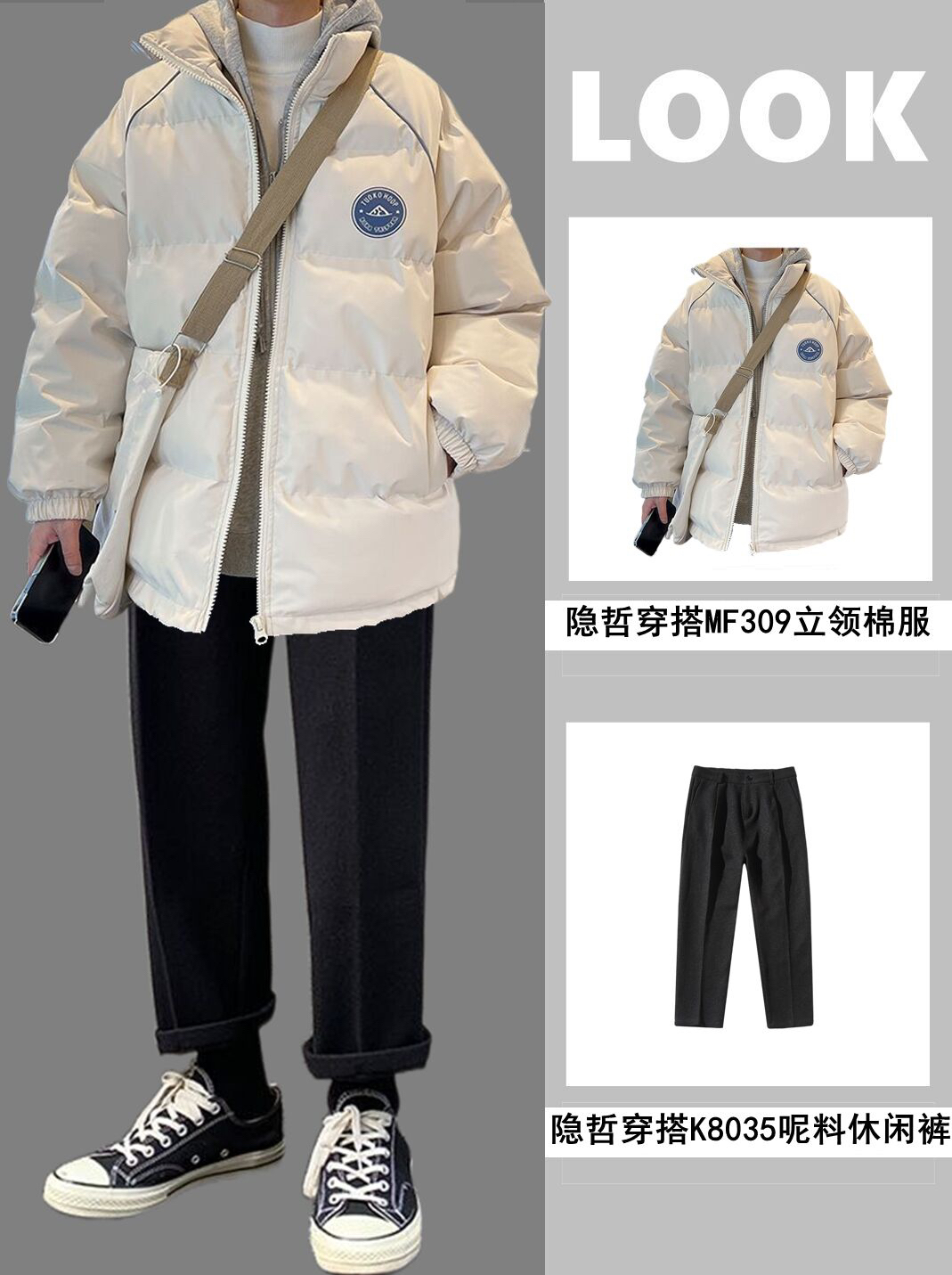 隐哲穿搭MF309立领棉服+隐哲K8035呢料休闲裤