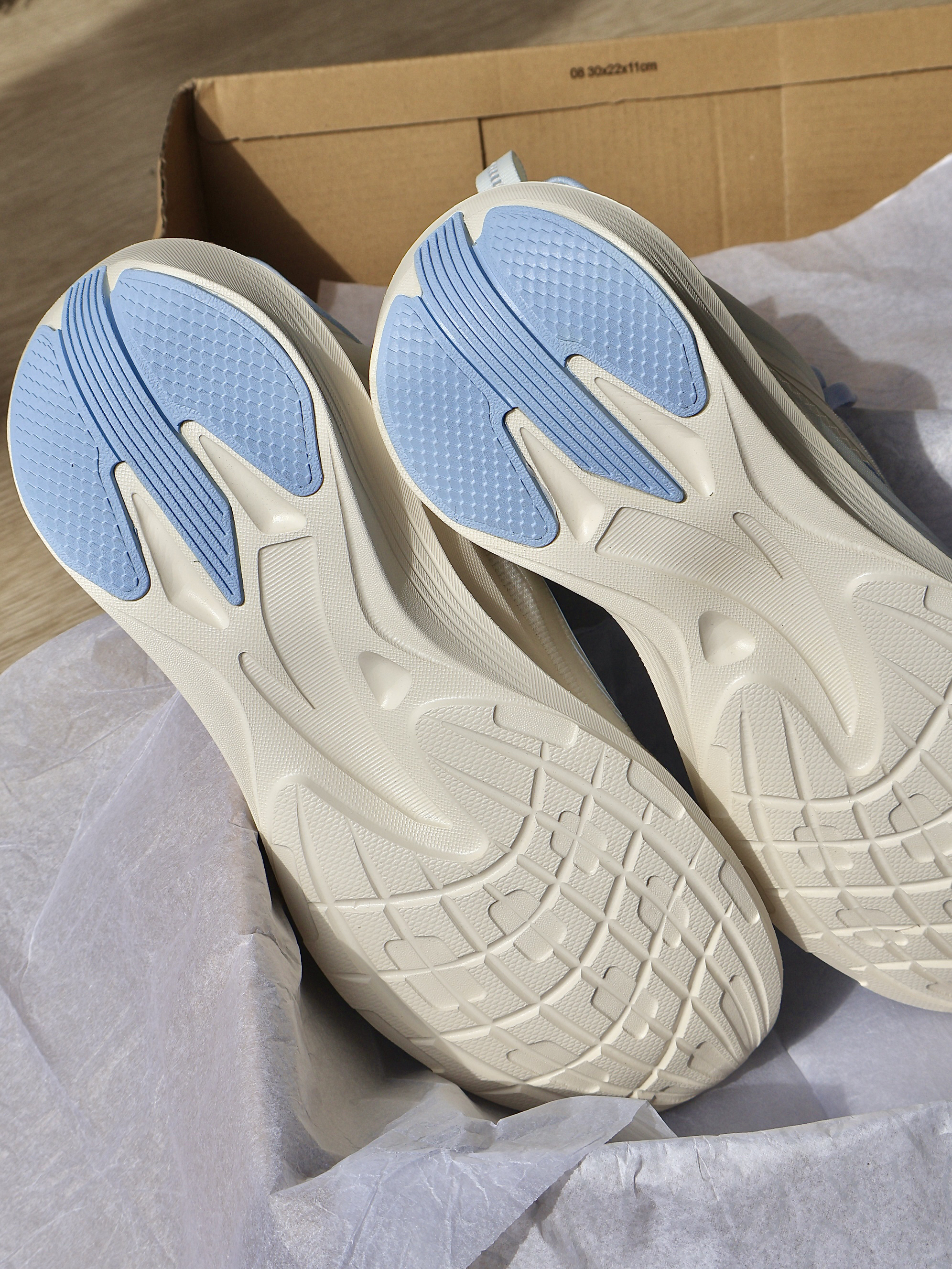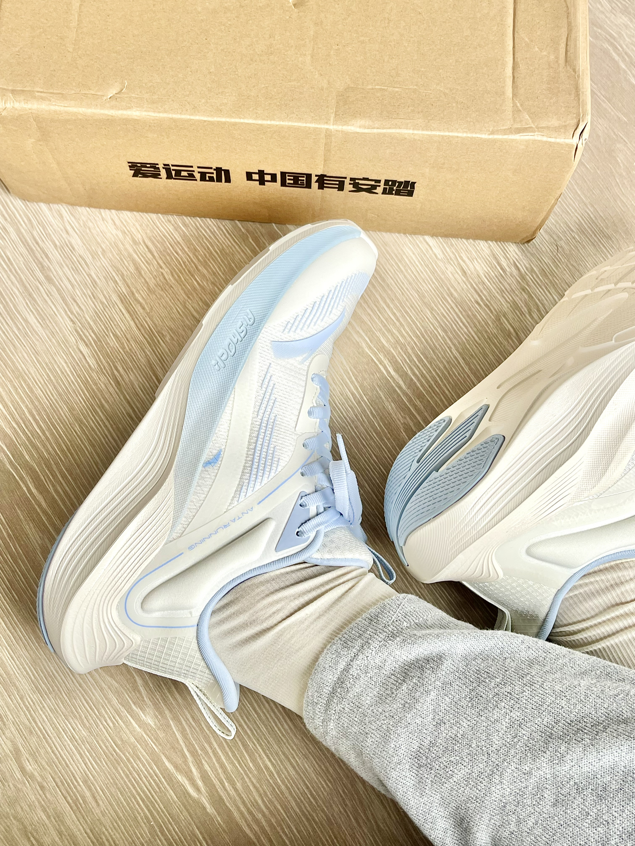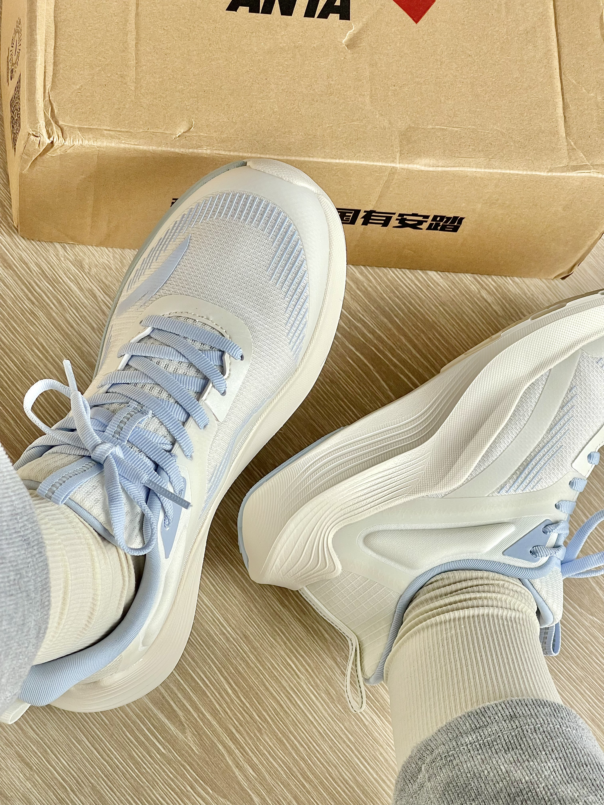 这双毒刺等了好久终于入了 实物真的超惊艳 好清透的海盐蓝 绝美 连鞋底都很好看 跑步跳绳 都敲适合!
