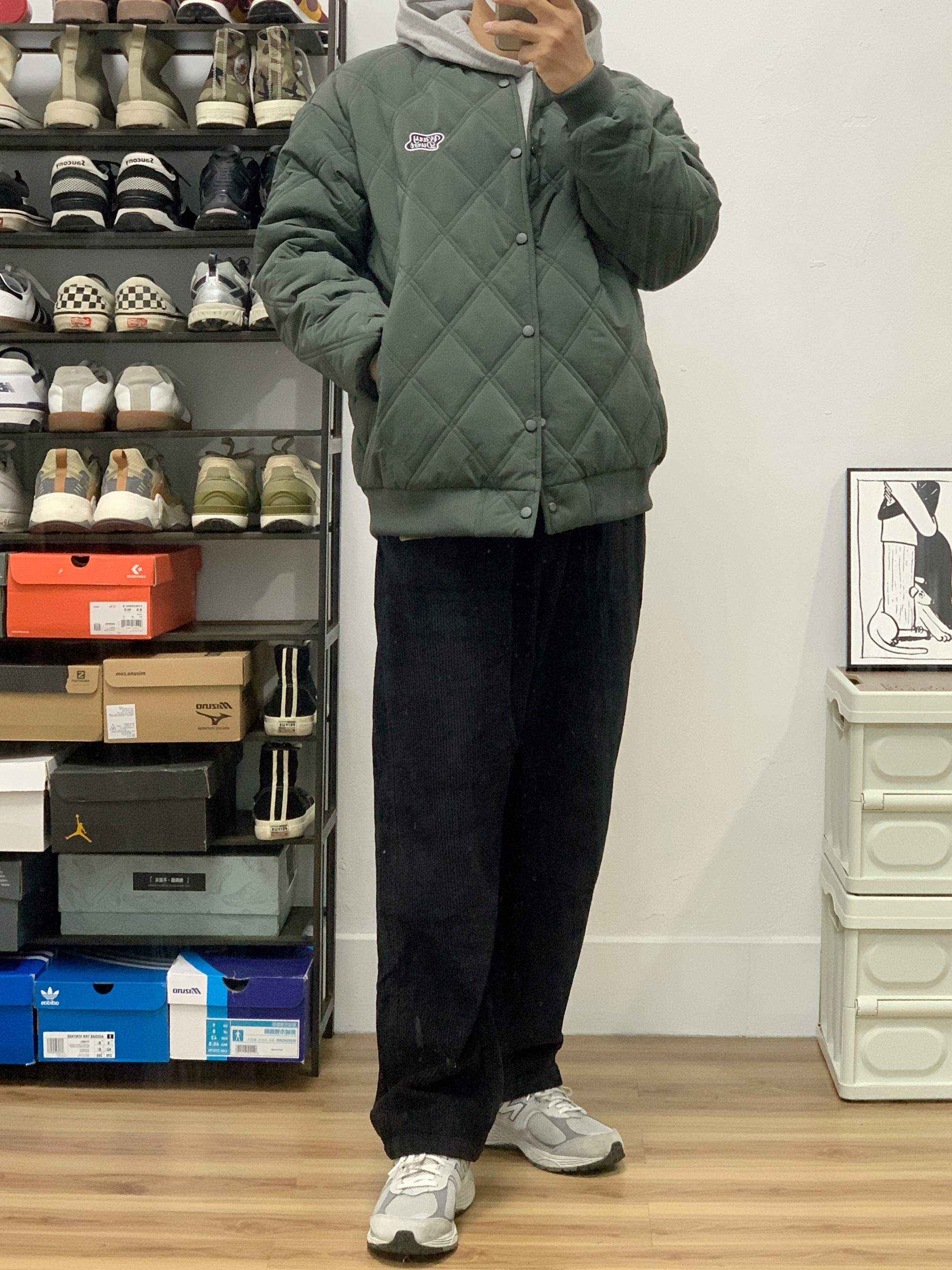 hey 这里是每天记录穿搭的社畜日记。 家人们!你们是如何从催更夏装直接到催更冬装的。 你们那是没有秋天吗😅 前几天我这边又口罩了 棉服刚到货,但是我们这还是很热。 今天的我开着空调拍刚到的棉服🥵(把敬业打出来!) 今日乱搭: 灰绿棉服+灰色连帽卫衣+黑色灯芯绒裤+nb2002r0