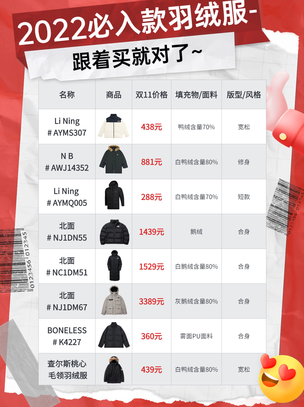本篇笔记关联了Li Ning 可拆卸防寒防风短款连帽羽绒服 男女同款 AYMQ005 黑色、Charles Jang's Happy Heart/查尔斯桃心 毛领派克中长款白鸭绒立领羽绒服 男女同款 21654CH60963 黑、【iu同款】New Balance 防寒毛领宽松连帽长款保暖羽绒服 女装 AWJ14352 黑等商品,为用户提供真实的使用体验和购买参考。