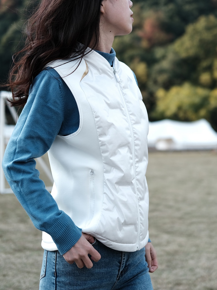 必迈跑步羽绒马甲,胸前采用又轻又暖的90白鸭绒,提升核心区域抗寒性,背部整身采用立体空气层面料,保暖有弹性,贴合身型减少不必要的晃动,让冬日运动没有负重感,无拘束,自由自在,想动就动!
