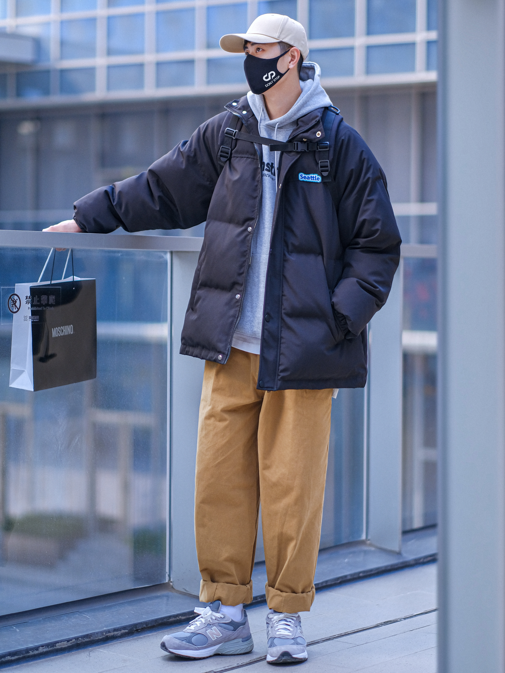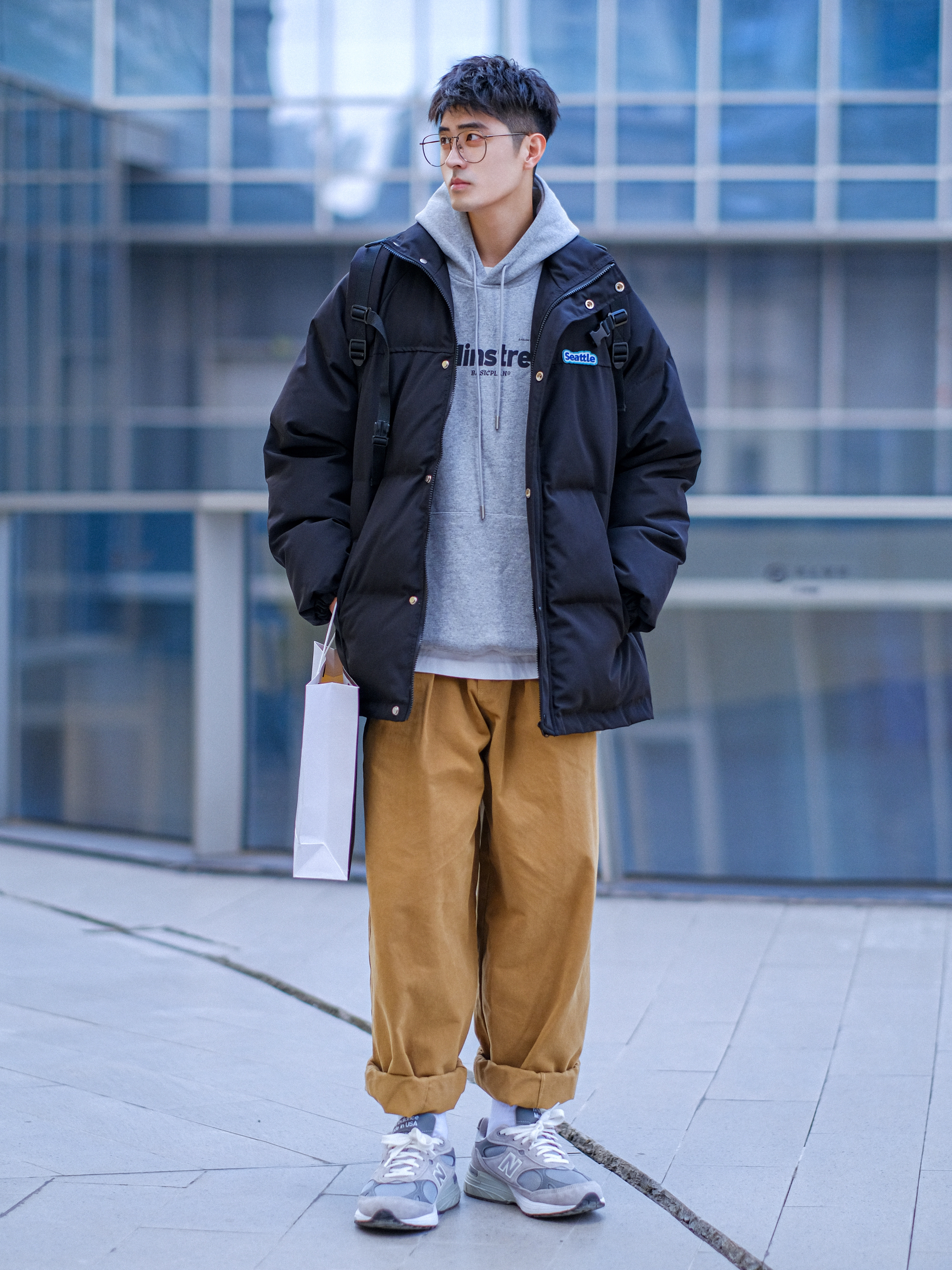 ▪️关于男生冬季穿搭,【黑色棉服】真的差不多就是人手一件!所以,今天分享一套【黑色棉服少年感穿搭】,整体色感简约干净,好适合秋冬懒人穿搭! — ⚠️本人身高|体重:176CM|63KG(🉑️参考) — ▪️今日份黑色棉服穿搭,打底一件灰色连帽卫衣,搭配一条奶咖色工装直筒裤,再穿上我的元祖灰复古跑鞋,一套简简单单的美式街头潮流穿搭,就可以帅气出街了咯! —