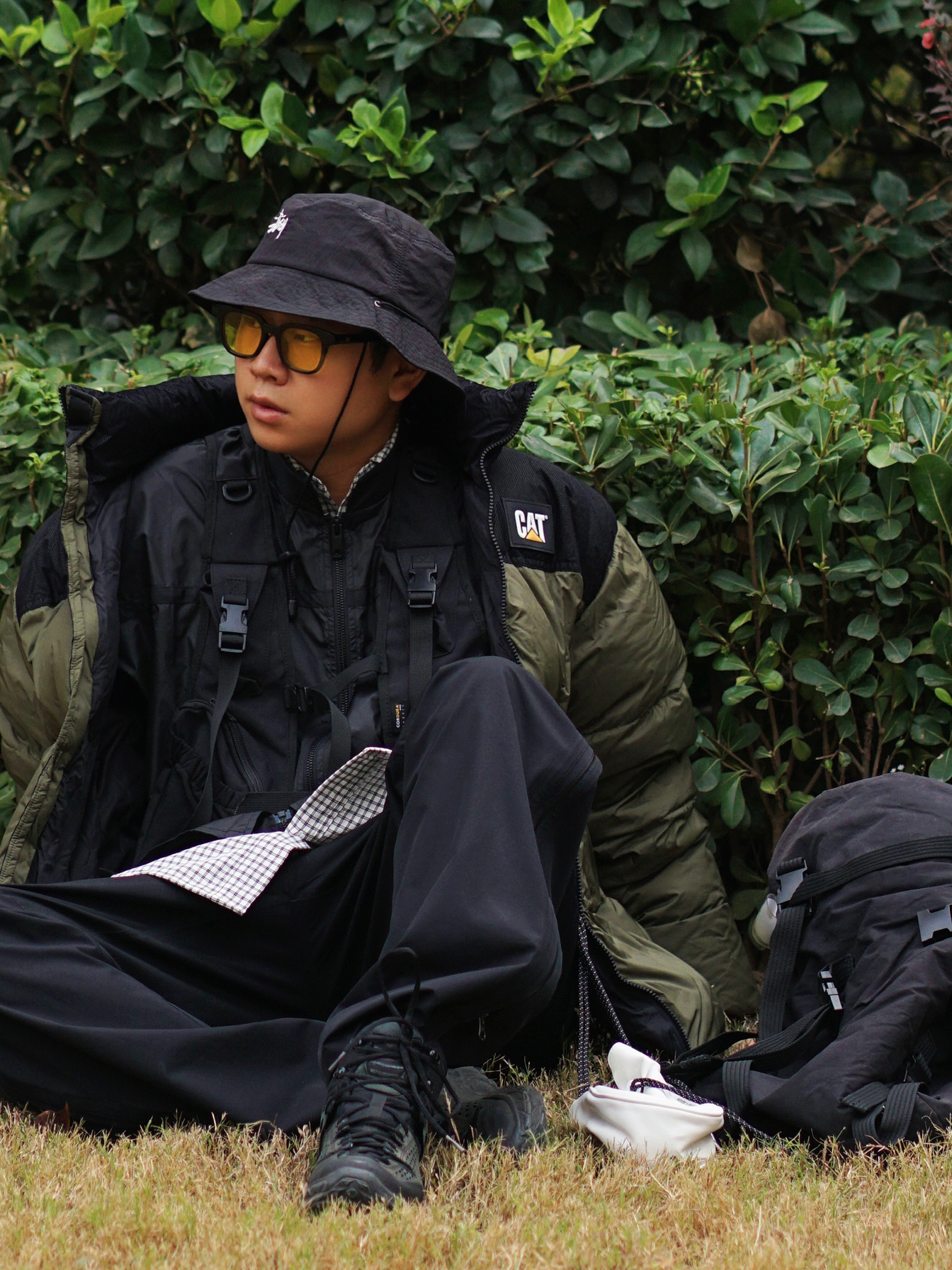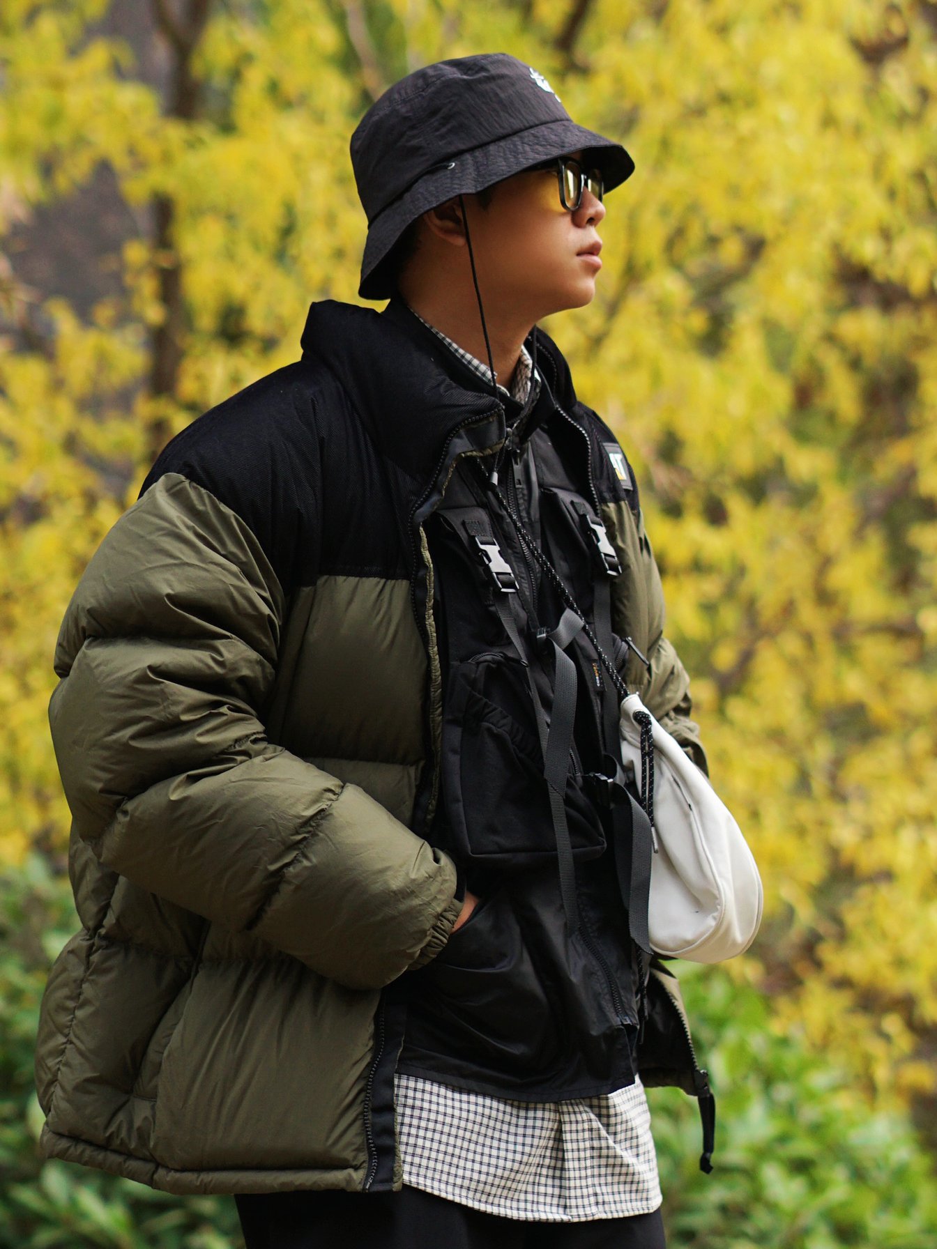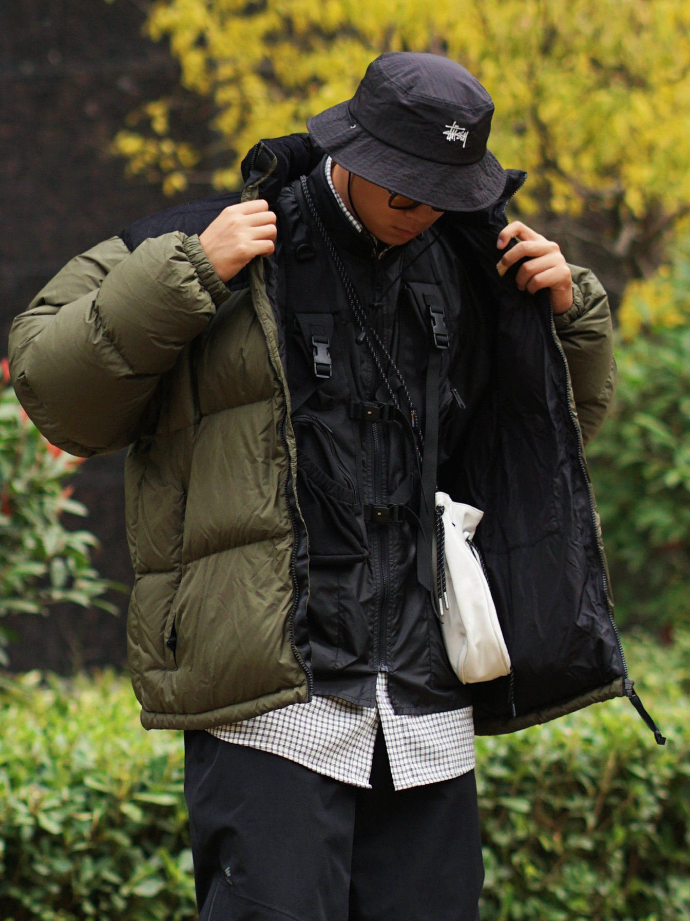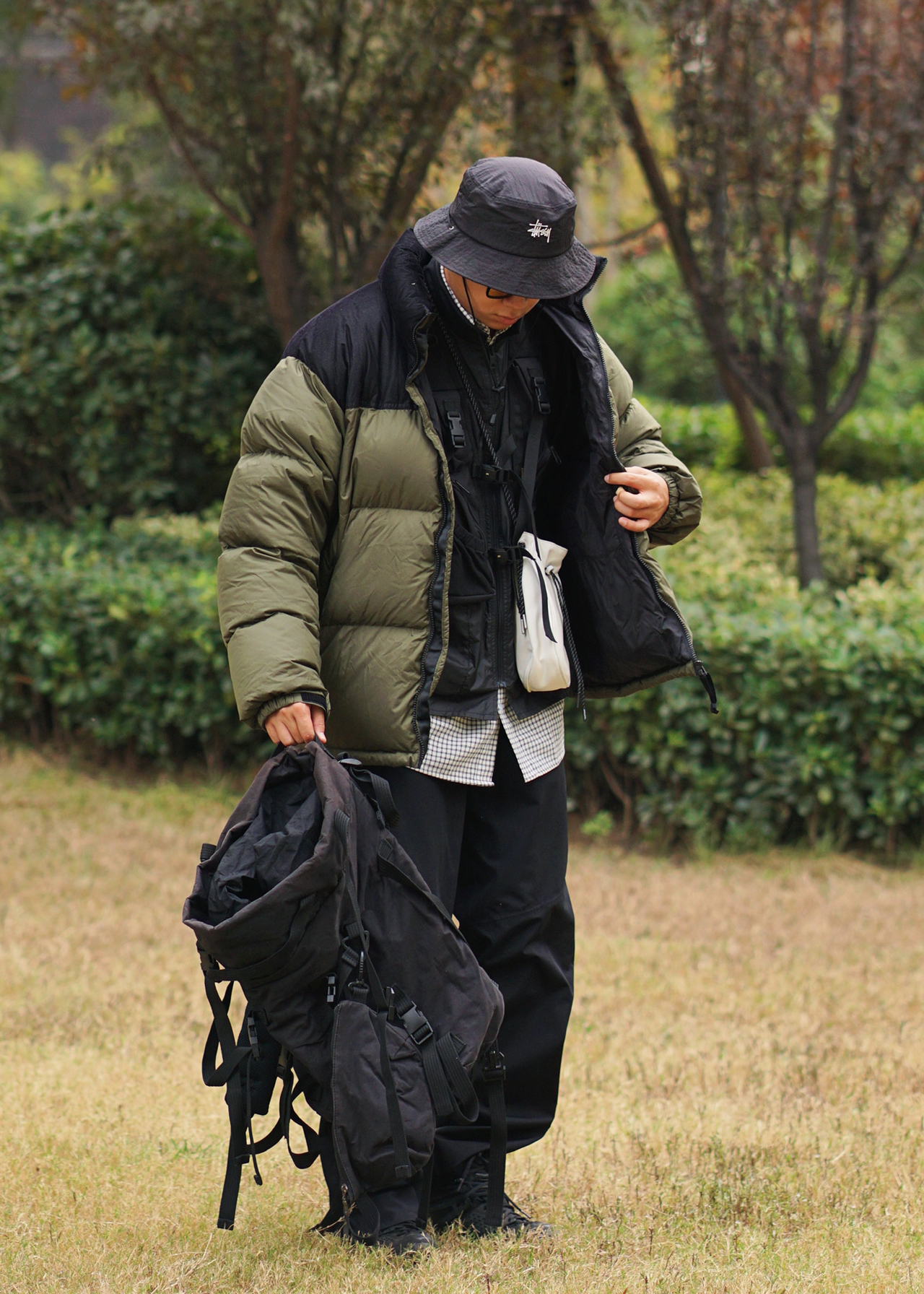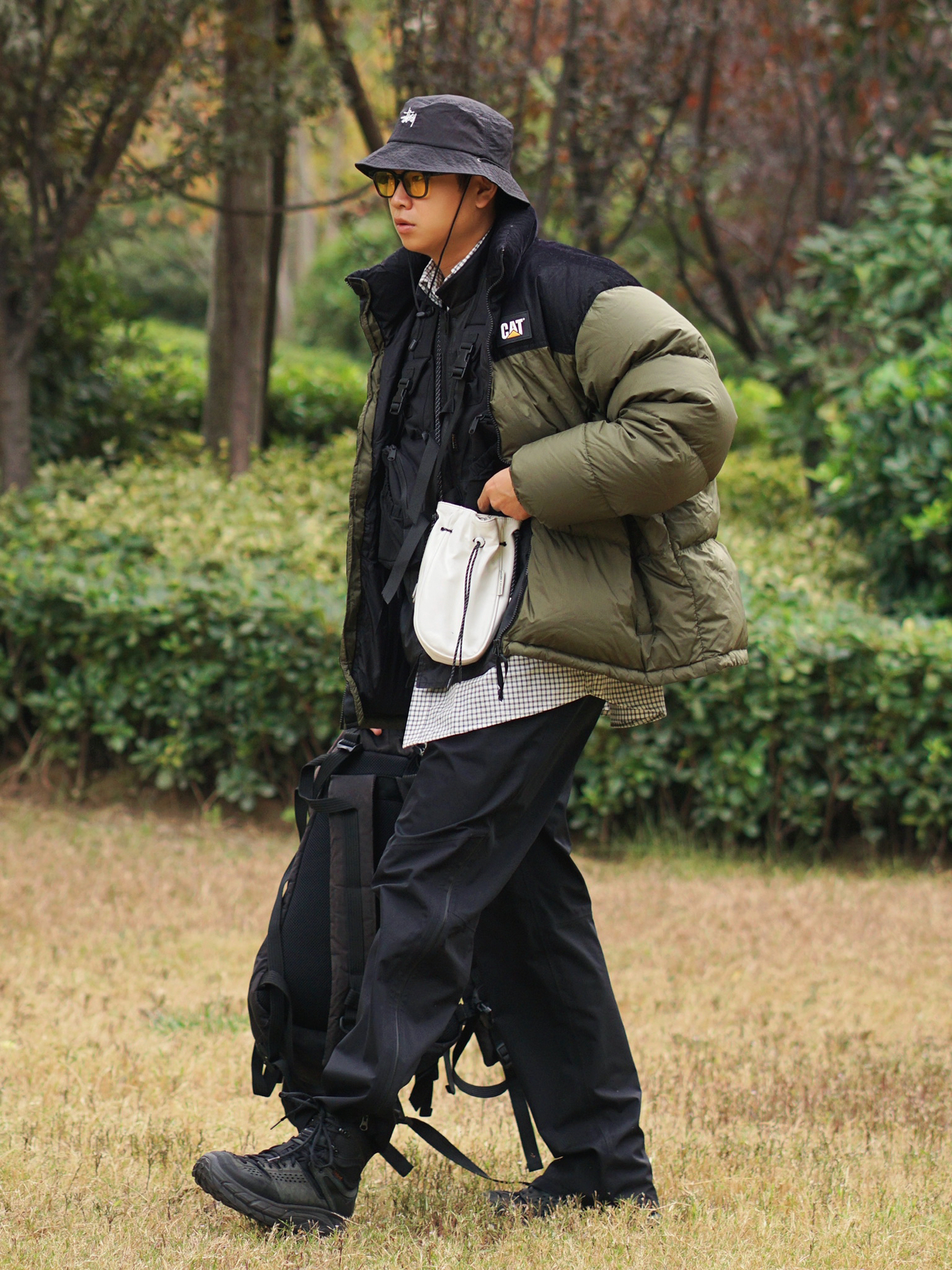 山系风格——面包服的功能性是毋庸置疑的,宽松版型很适合叠穿马甲和机能外套,多层次多口袋,满足户外urbanoutdoor的需求🏕 机能马甲给整体穿搭加分不少,黑色叠穿黑色也是很棒的选择✅ HOKA ONE ONE的功能性绝了,一般的户外活动都可以处理