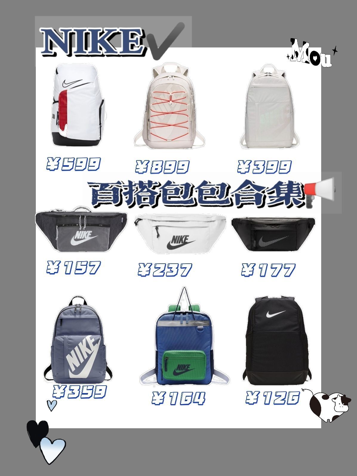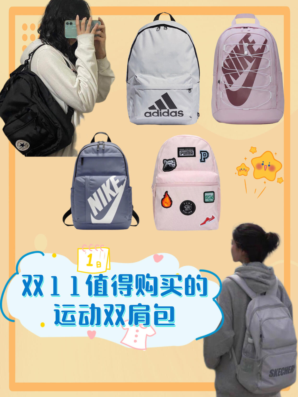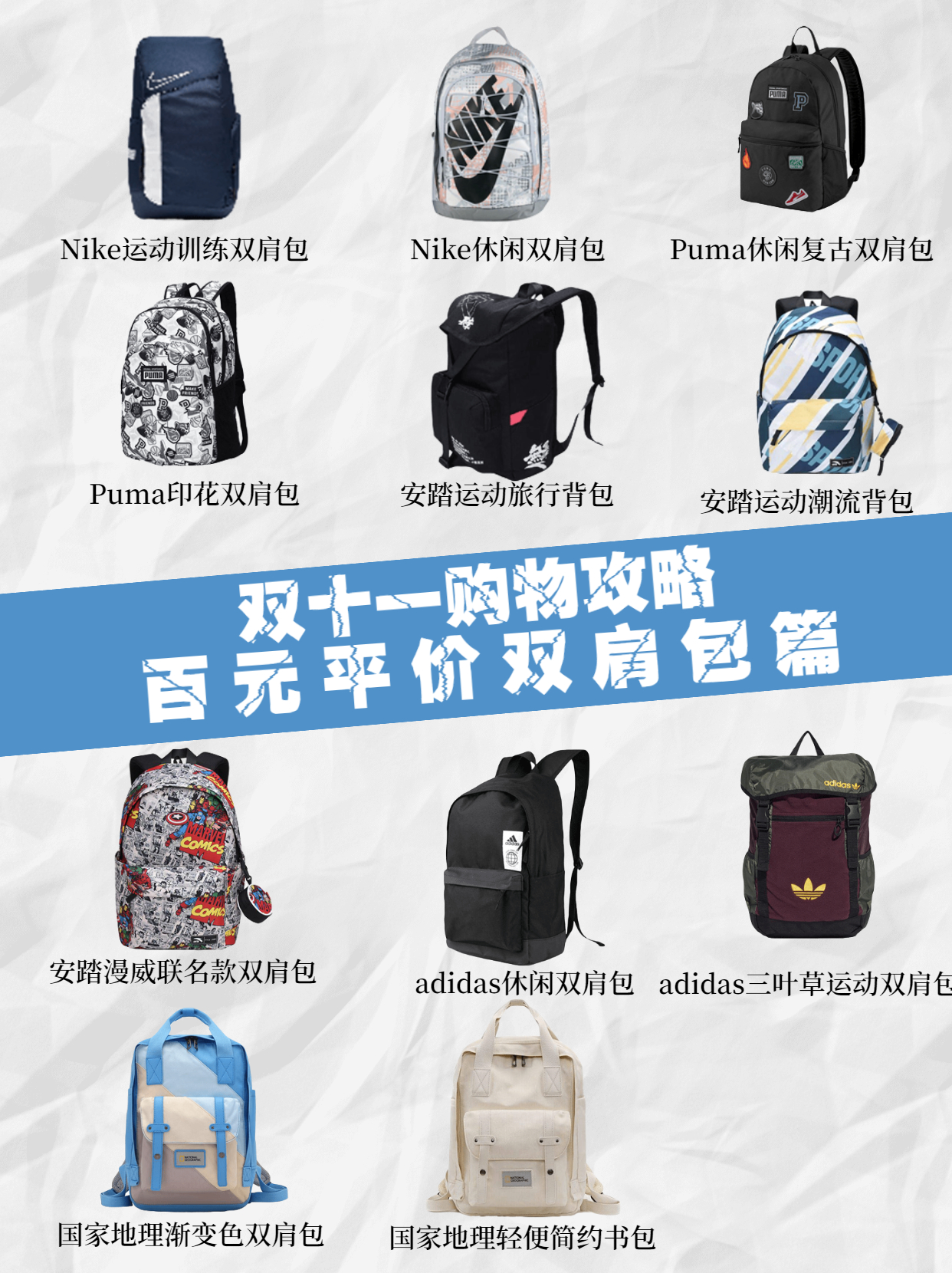 作为一个大学生,肯定不能像高中那样拿个蛇皮袋子装书,😭买一个使用又潮流的包包是必不可少的,什么单肩包啊,挎包,腰包都不如一个使用的双肩包😂 当时还以为耐克、李宁这种潮牌的包会很贵捏,没想到也就百来块,在此给兄弟们整一波合集,一次性看完性价比、颜值都爆表的几款包包😏 👉耐克的双肩包,我比较推荐,小巧精致,适合送给女朋友,可爱不失帅气; 👉匡威的双肩包,推荐他们家的常规...