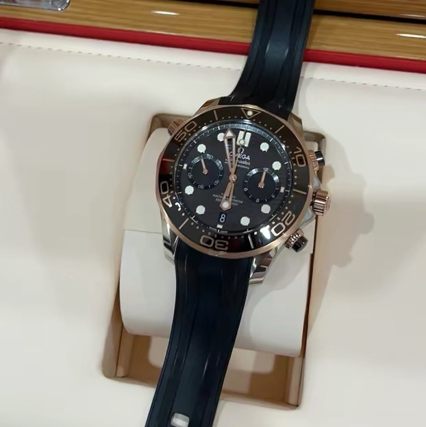 品牌名称:OMEGA/欧米茄 海马系列 44mm 300米潜水至臻天文台计时自动机械男士手表 得物App 09:27 < 开箱精选 17 44 12 欧米茄海马系列300米专业潜水表自1993年问世便开启了传奇篇章。如今,该款腕表秉承辉煌的海洋传奇,结合欧米茄技术创新与现代设计理念,呈献摩登时尚的新品力作。 这款44毫米计时表采用精钢与Sedna®18K金打造而成! 自动上链同轴计时机芯,配...