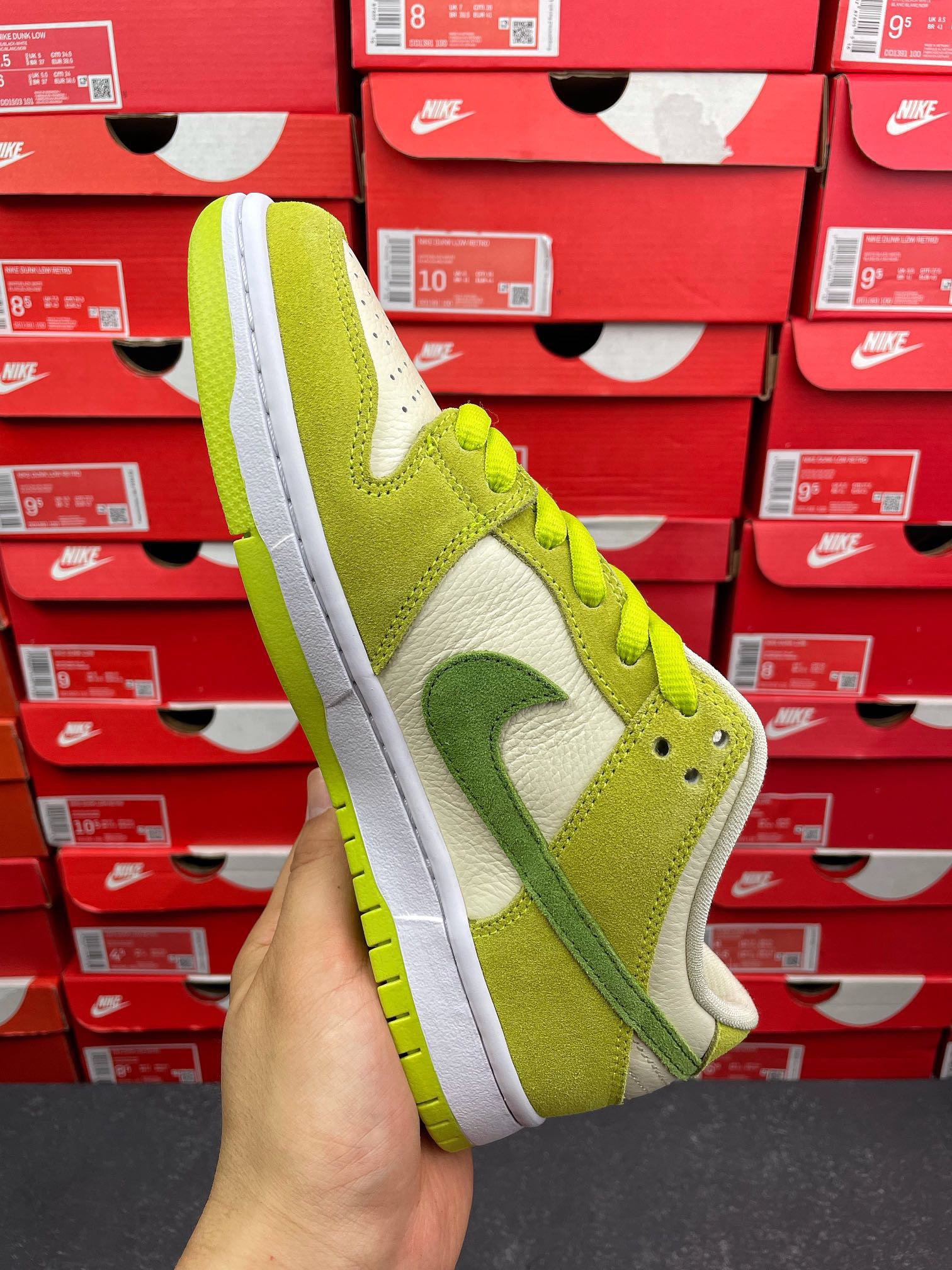👟球鞋名称:Nike SB Dunk Low Pro "Sour Apple" 潮流复古休闲板鞋 男女同款 米绿 青苹果 🔍设计亮点:夏日缤纷水果清爽来袭,这双SB Dunk Low 'Sour Apple'配色灵感汲取自诱人的酸苹果。其米色鞋面结合不同深浅的绿色,营造清新夏日风范;同时采用翻毛皮和皮革材质,造就优良质感;此外,鞋舌内侧饰有别致青苹果表情图案,更为其增添一抹玩趣格调。 📃总结评...