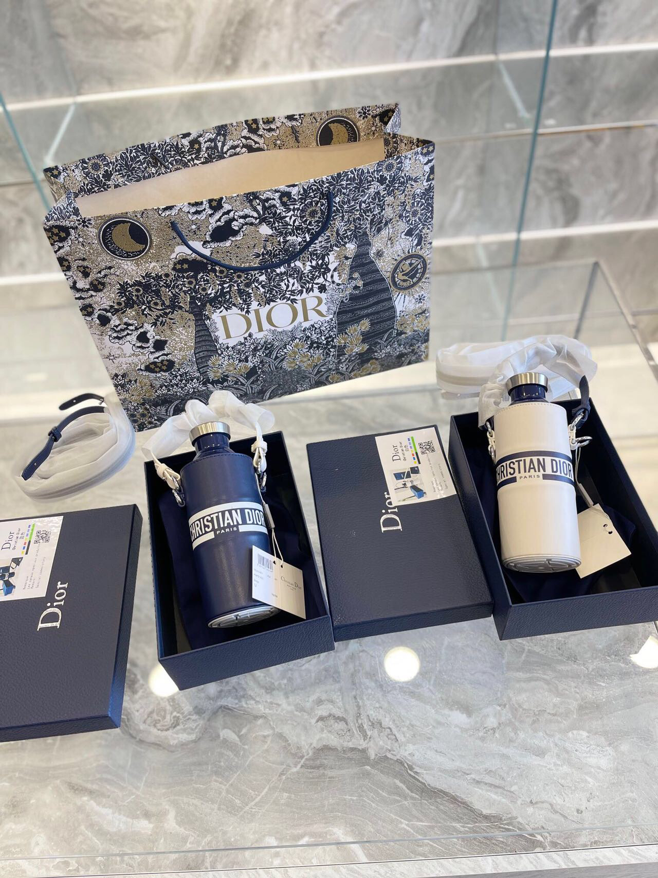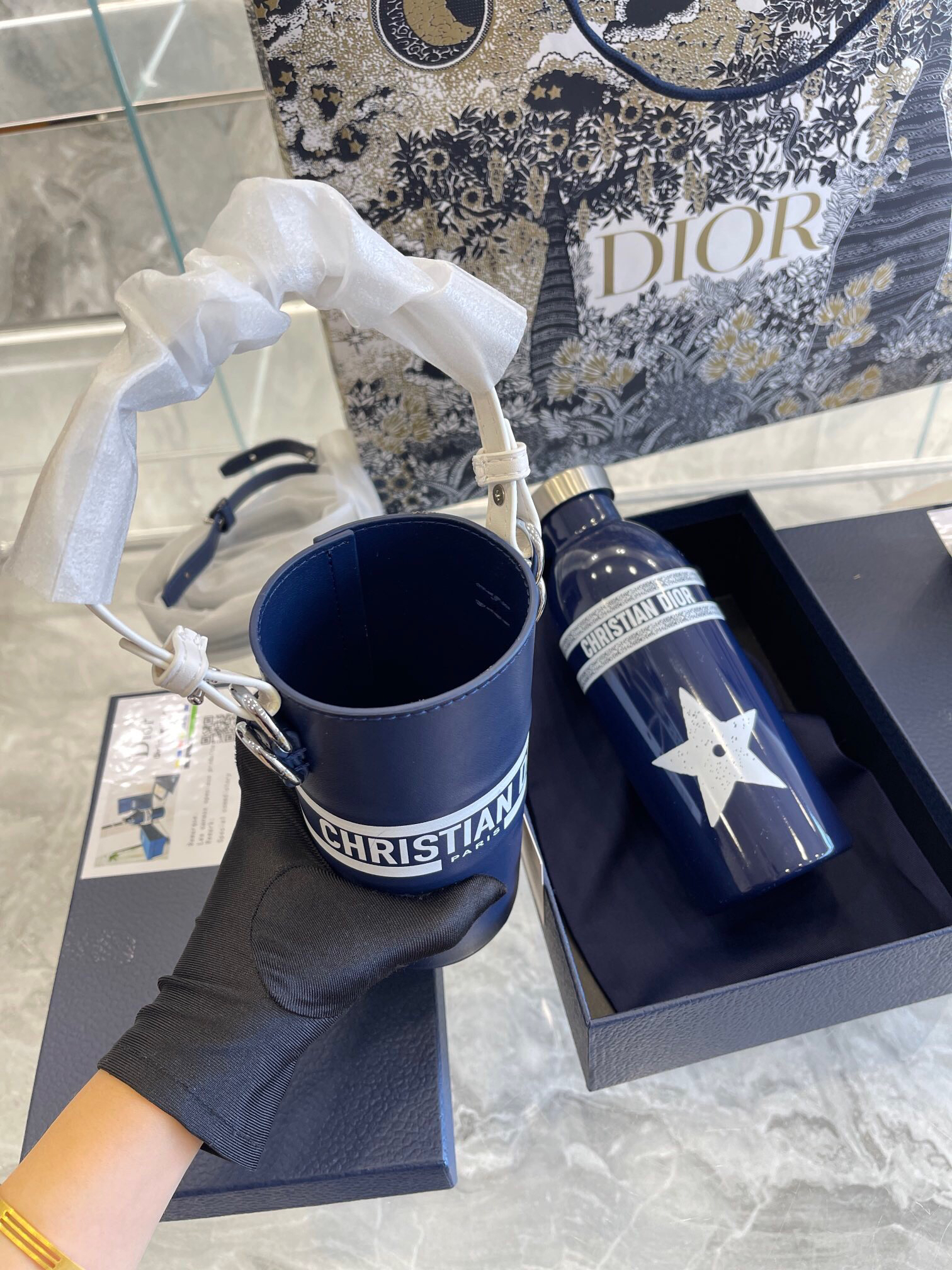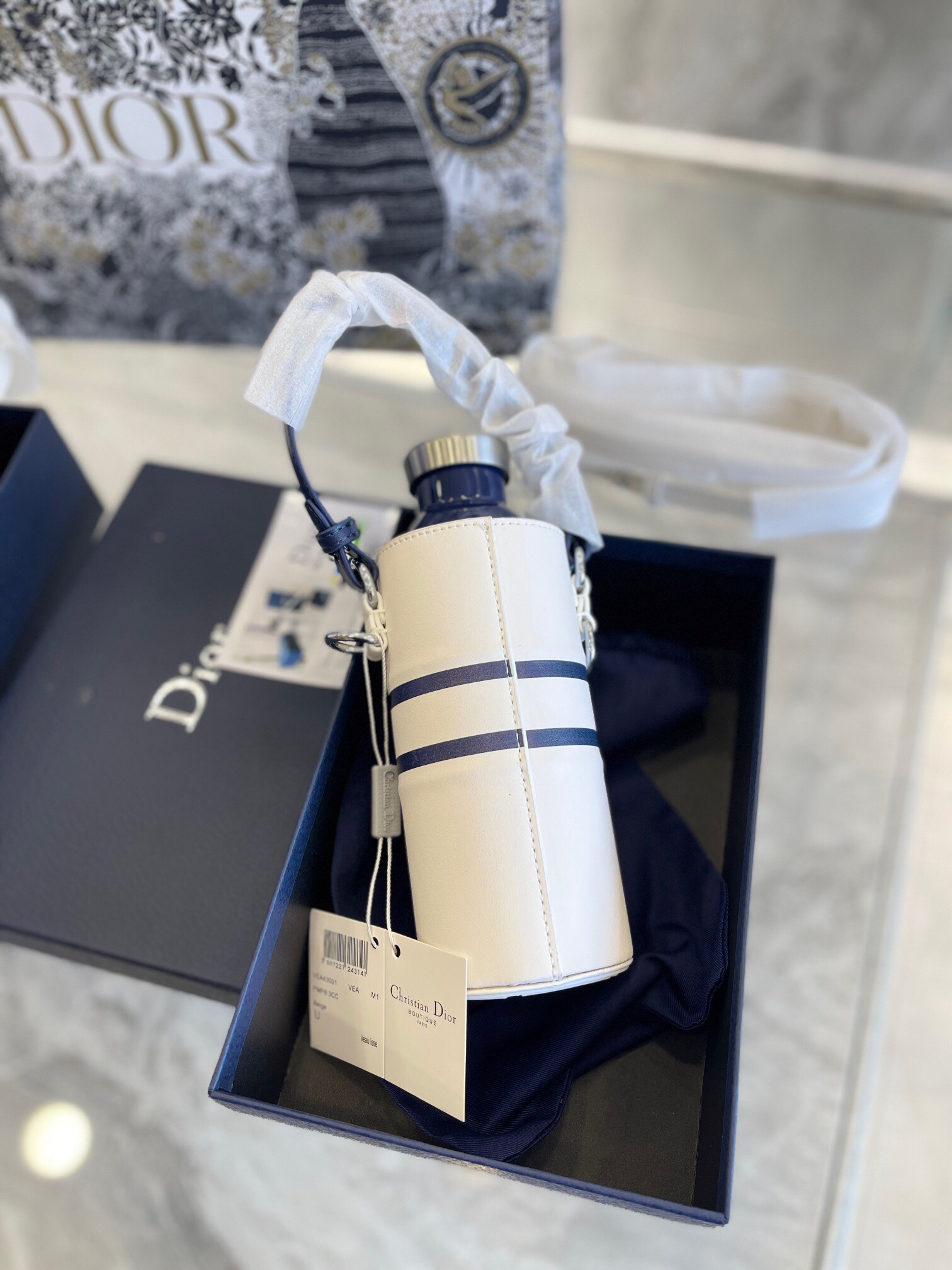 这套水瓶和瓶托彰显Dior的精湛工艺与优雅气质。水瓶采用金属覆层不锈钢打造,饰以激光镌刻的“DIOR”标志和 Dior Oblique图案。瓶托为灰白色粒面牛皮革材质,同样饰以“DIOR”标志。搭配可拆卸、可调节的尼龙提花和粒面 牛皮革“CHRISTIAN DIOR”标志肩带,可斜挎或放入手袋。 配礼盒 迪奥 保温杯 颜色颜值感太到位啦! 内外兼修! 新款字母logo水壶包包! 超高颜值 可以搭配...