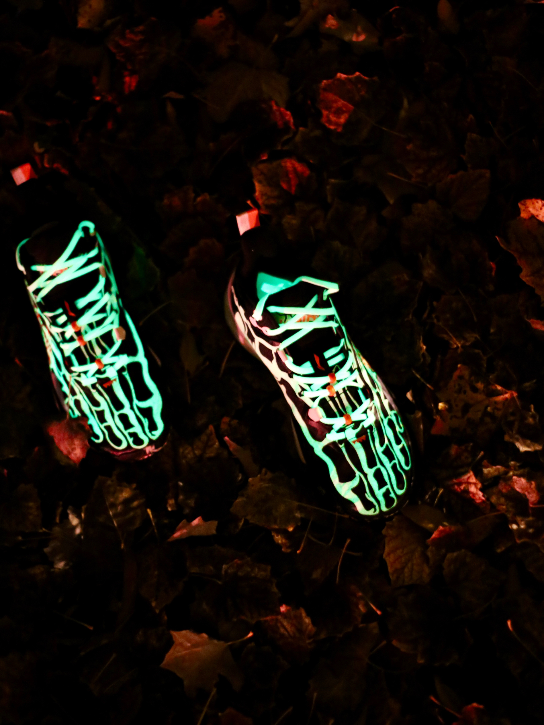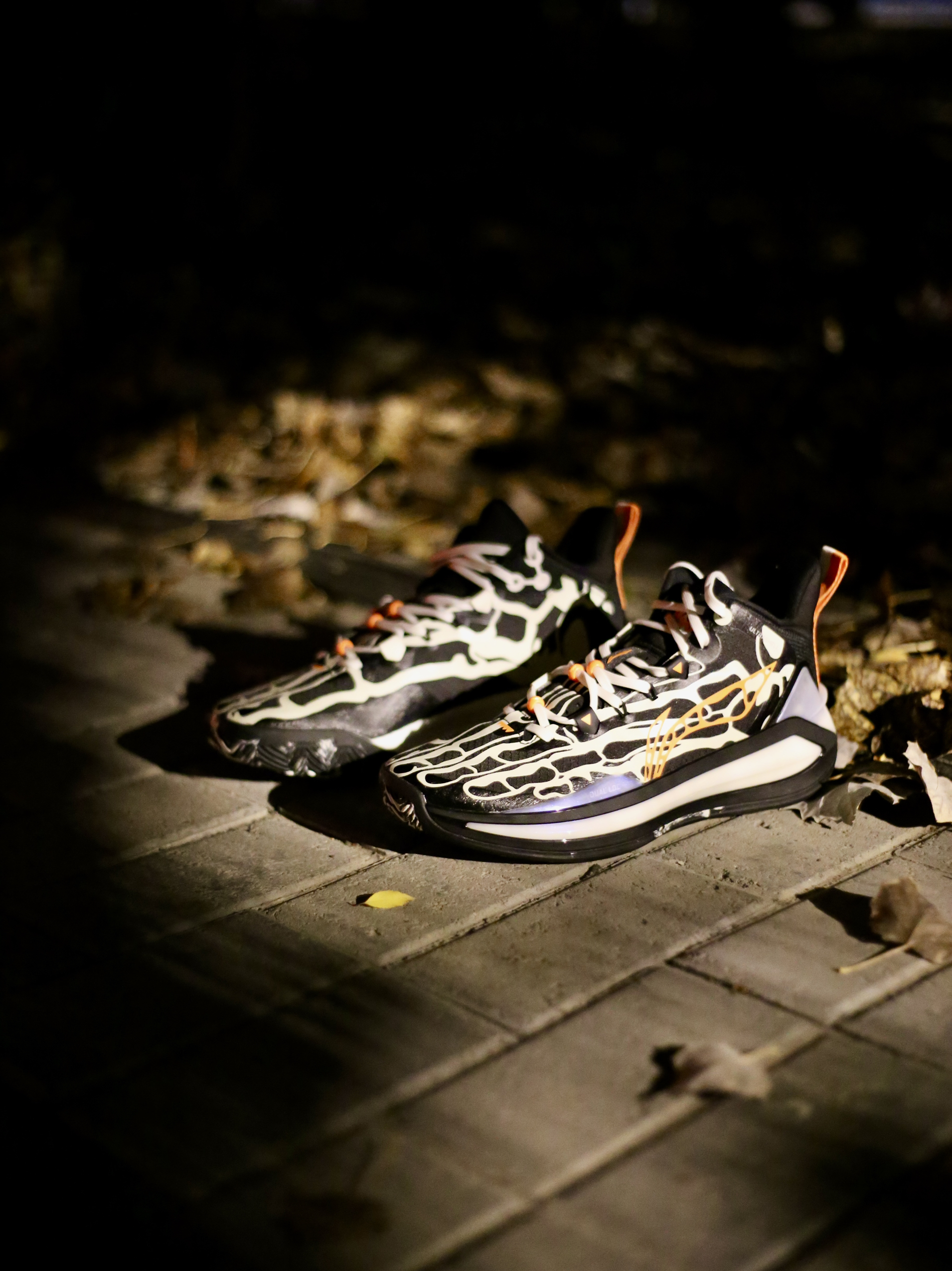 从利刃3.0上市的第一双天空之境开始,我就很喜欢这双鞋,无论是颜值还是实战性能,都是我的菜。 这次利刃3.0针对万圣节🎃还推出了一款万圣节配色,它也是第一双改变了鞋面材质的利刃3.0鞋款,应该是为了夜光更好的附着吧。一双夜光脚骨连鞋带也是夜光的,太帅了有没有啊!各种鞋身鞋盒的小细节都是很多的。鞋舌上两侧各有三个小南瓜🎃。鞋垫上也有一对古骨。大底花纹像是一个个的蜘蛛网🕸️,喜欢球鞋细节和创意的兄弟们...