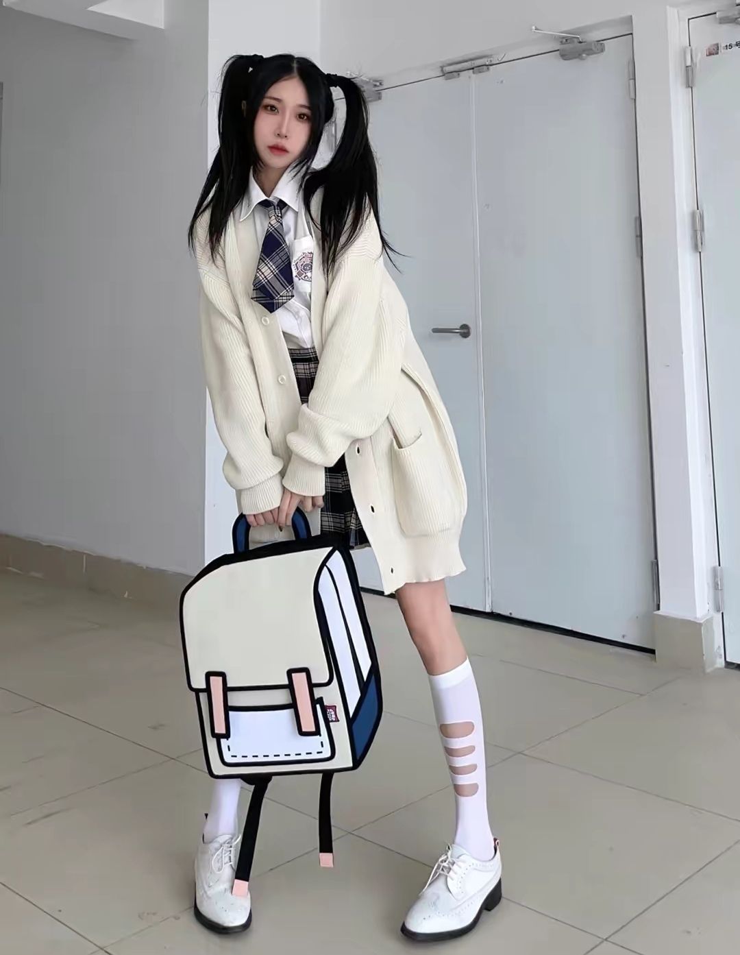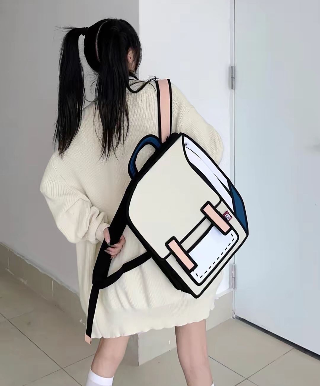 有一说一,这个书包真的超级二次元感觉就像 p 上去的,那个3D效果特别好,而且大小也能装下好几本书。喜欢ニ次元的话,千万不能错过这个!真的太特别!而且男生女生都可以使用哦,像我搭配卫裤,这一身男生也可以穿,背上书包,也不会觉得奇怪,而且非常的吸引眼球。太动漫视觉啦,跨次元的感觉!