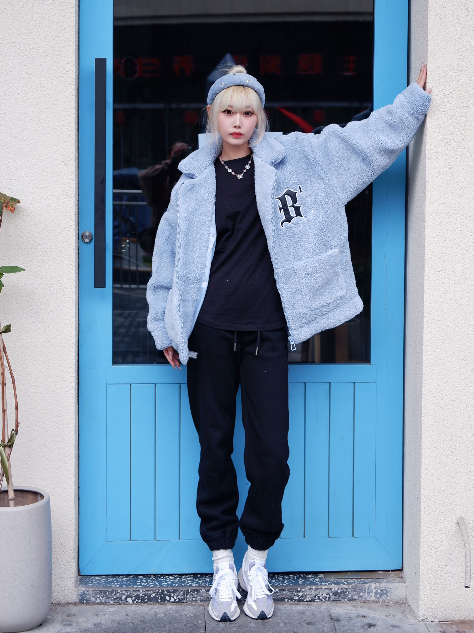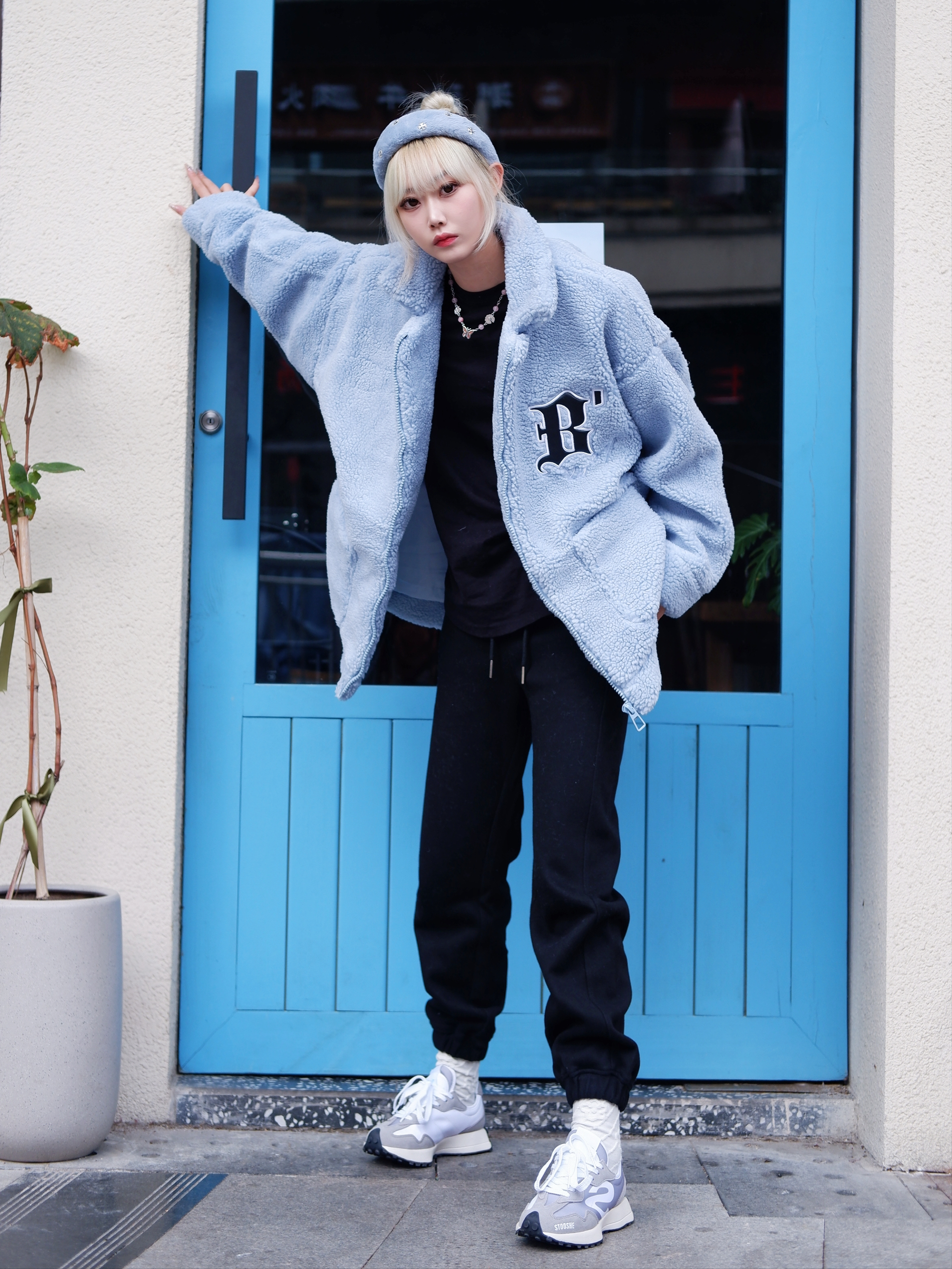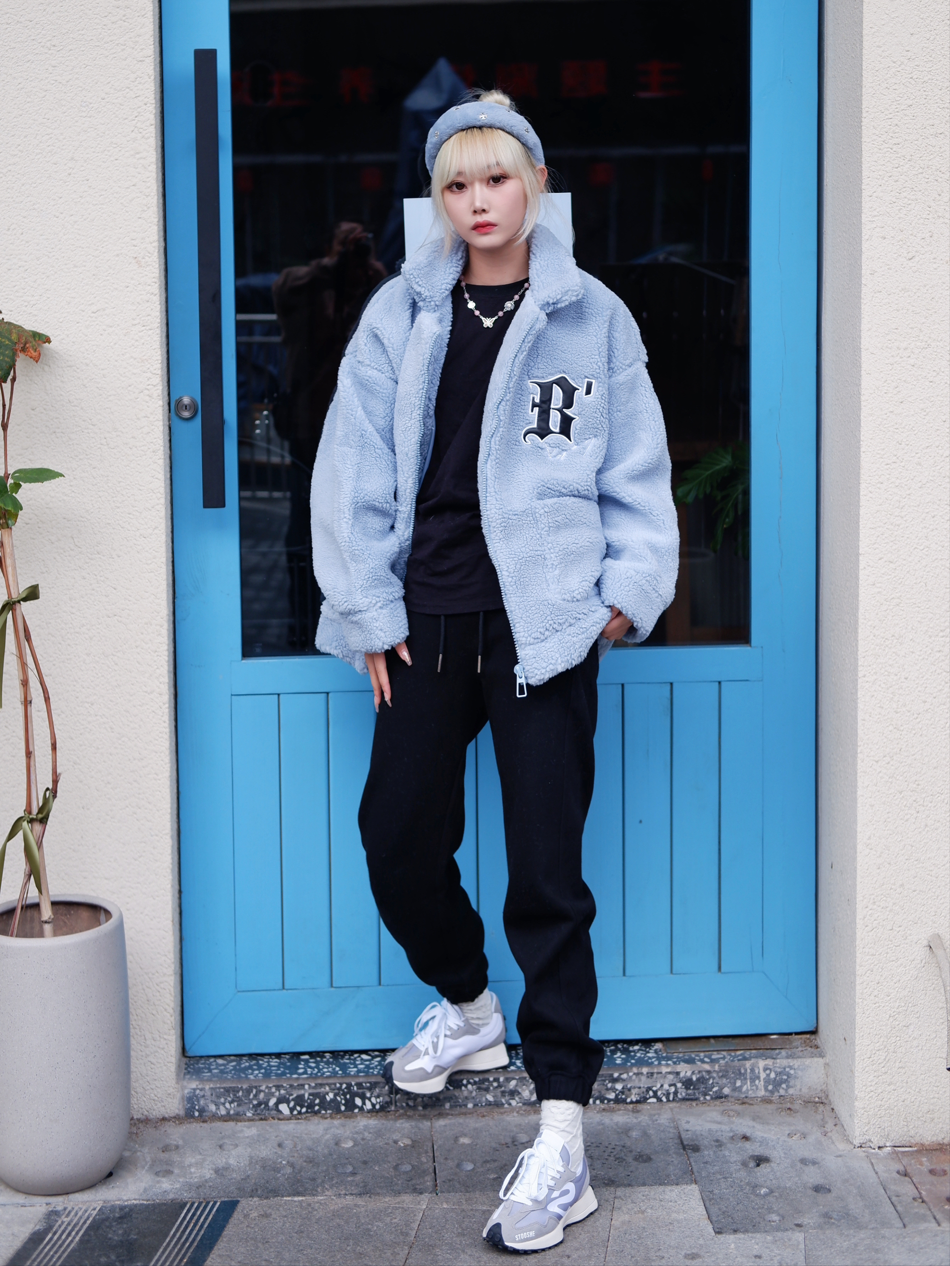 🧥: BJHG 👖: BABUGGE 👟: Stooshe 👭姐妹们,抗寒保暖都要给我做好哦~ 这款软软糯糯的BJHG奶蓝色羊羔绒外套 好显白呀🦷 颜色也很特别 ❄️冬天也不要一直黑色,换个其他的颜色,换来美好心情! 而且衣服的logo很简洁且精致~ 感觉它可以陪我度过好几个秋冬季节~🥰 搭配BABUGGE束脚运动裤 遮胯又显瘦 鞋子是STOOSHE厚底耐磨休闲运动鞋 印花简单又...