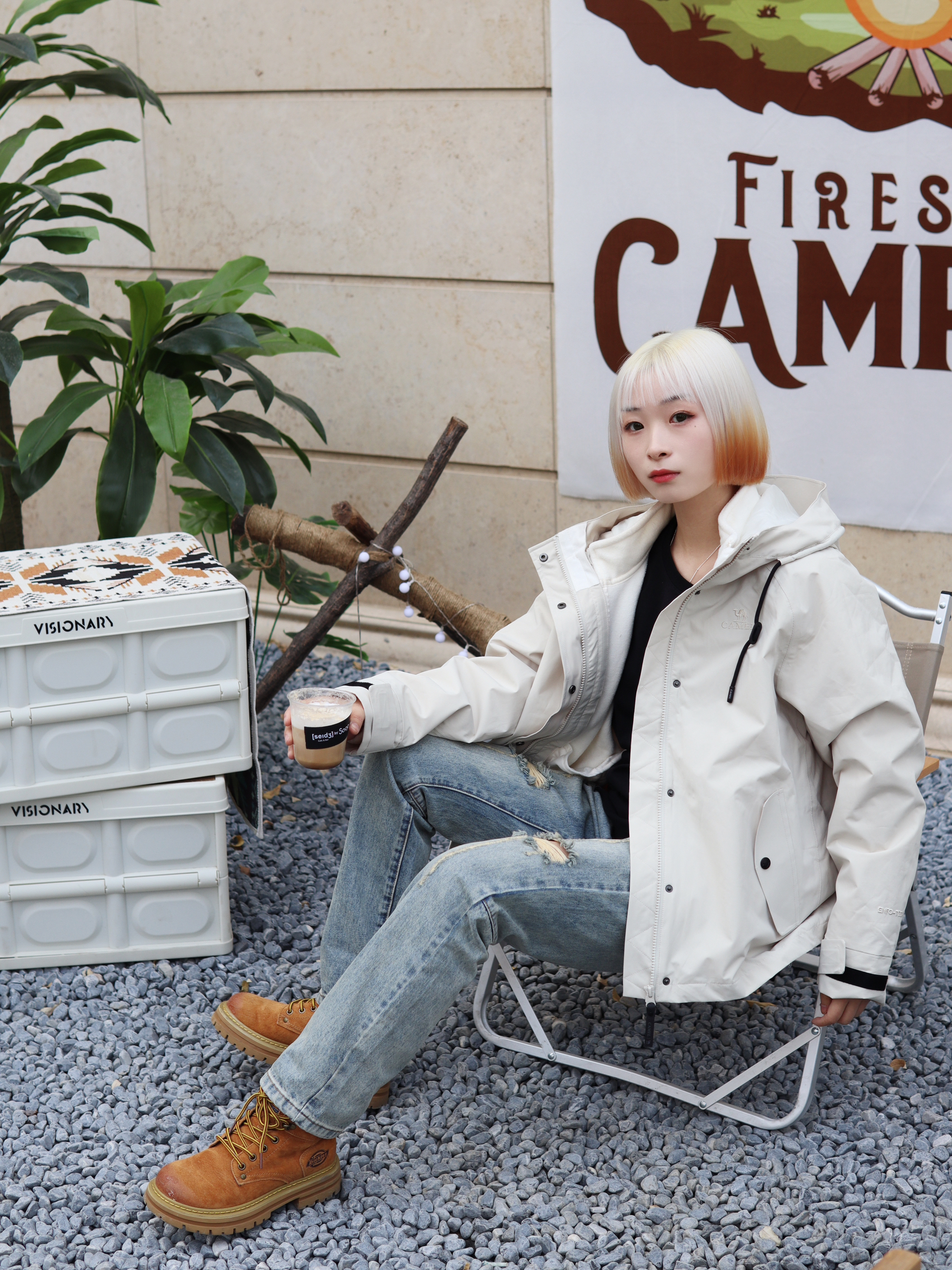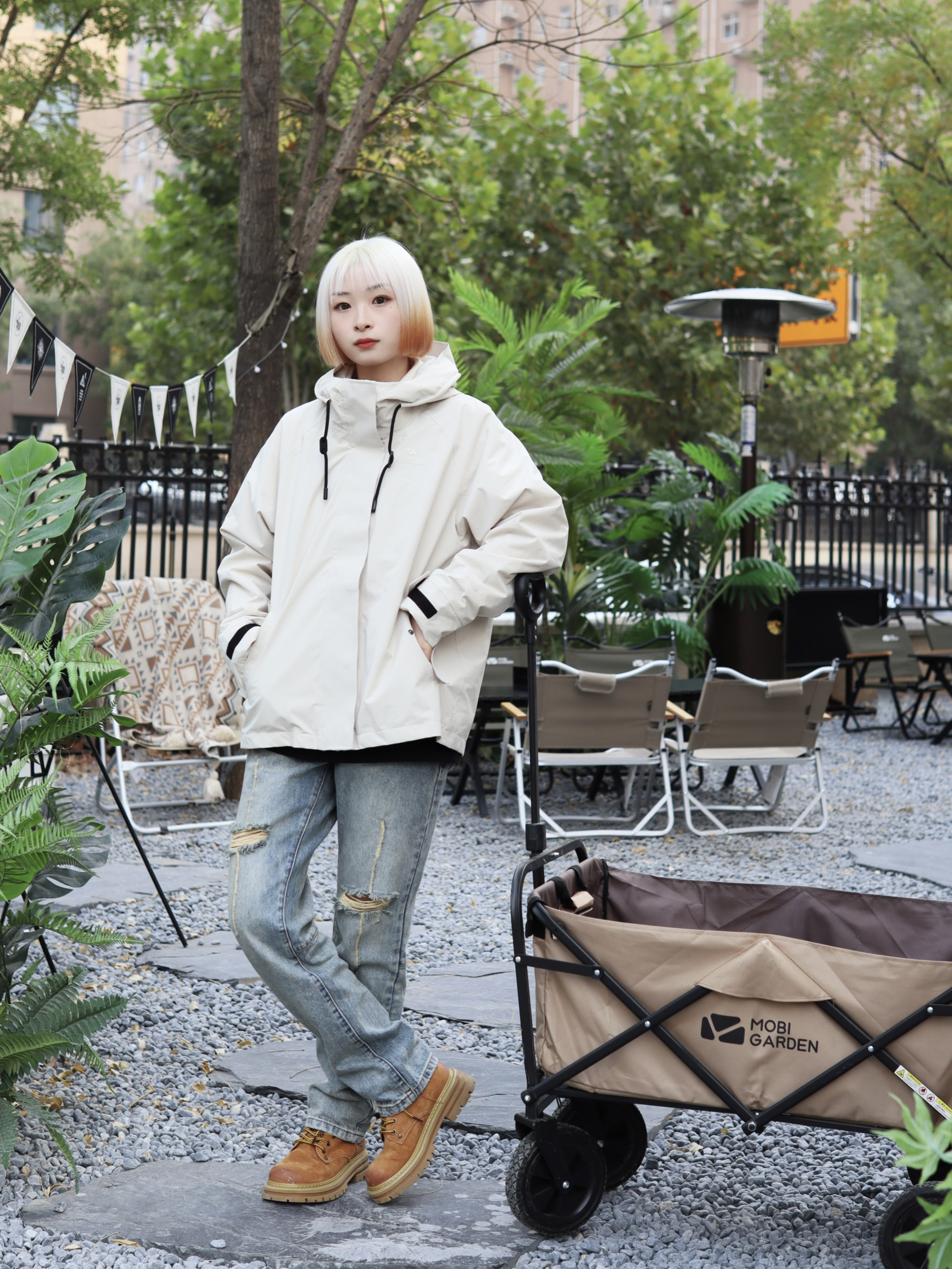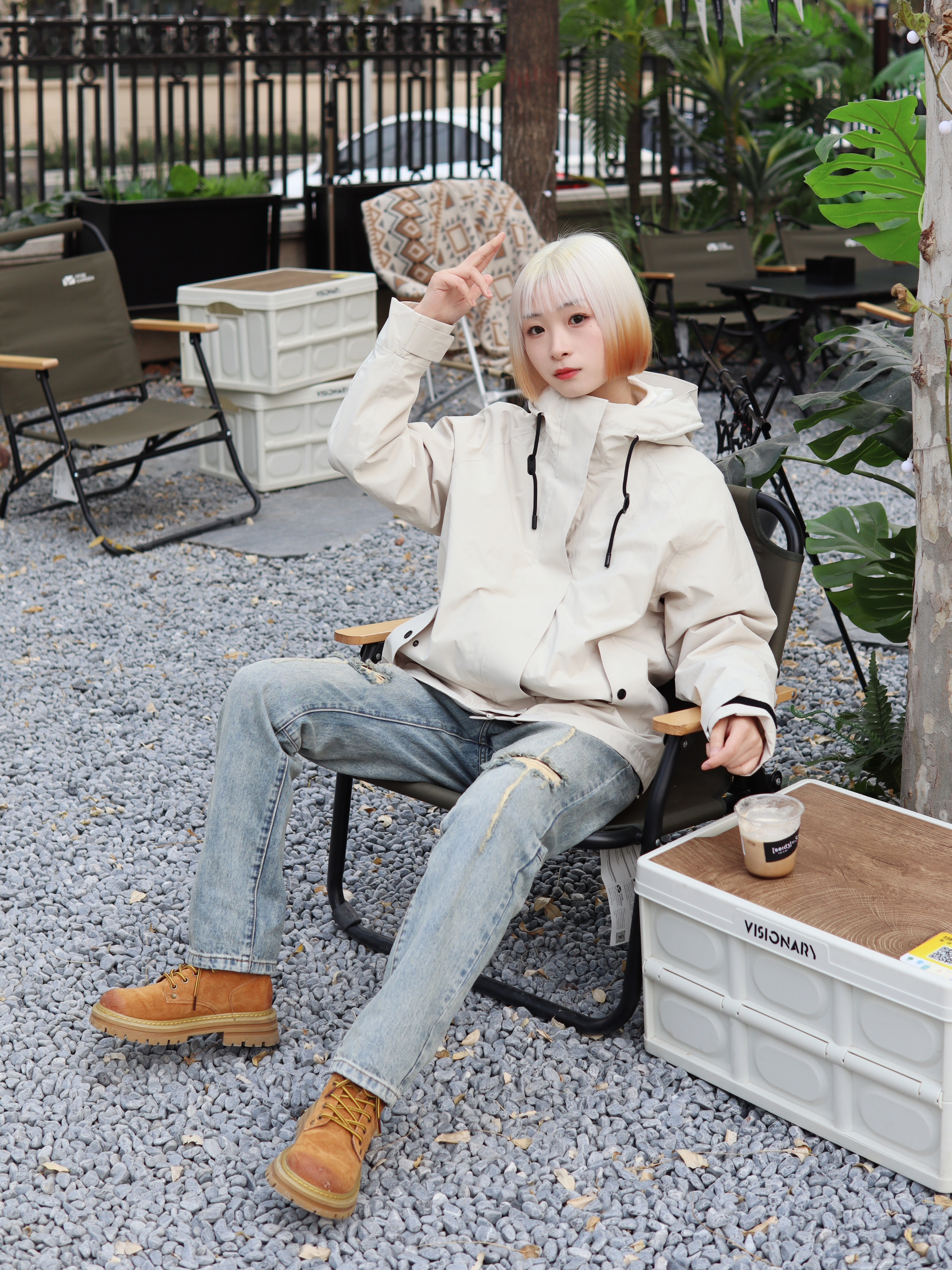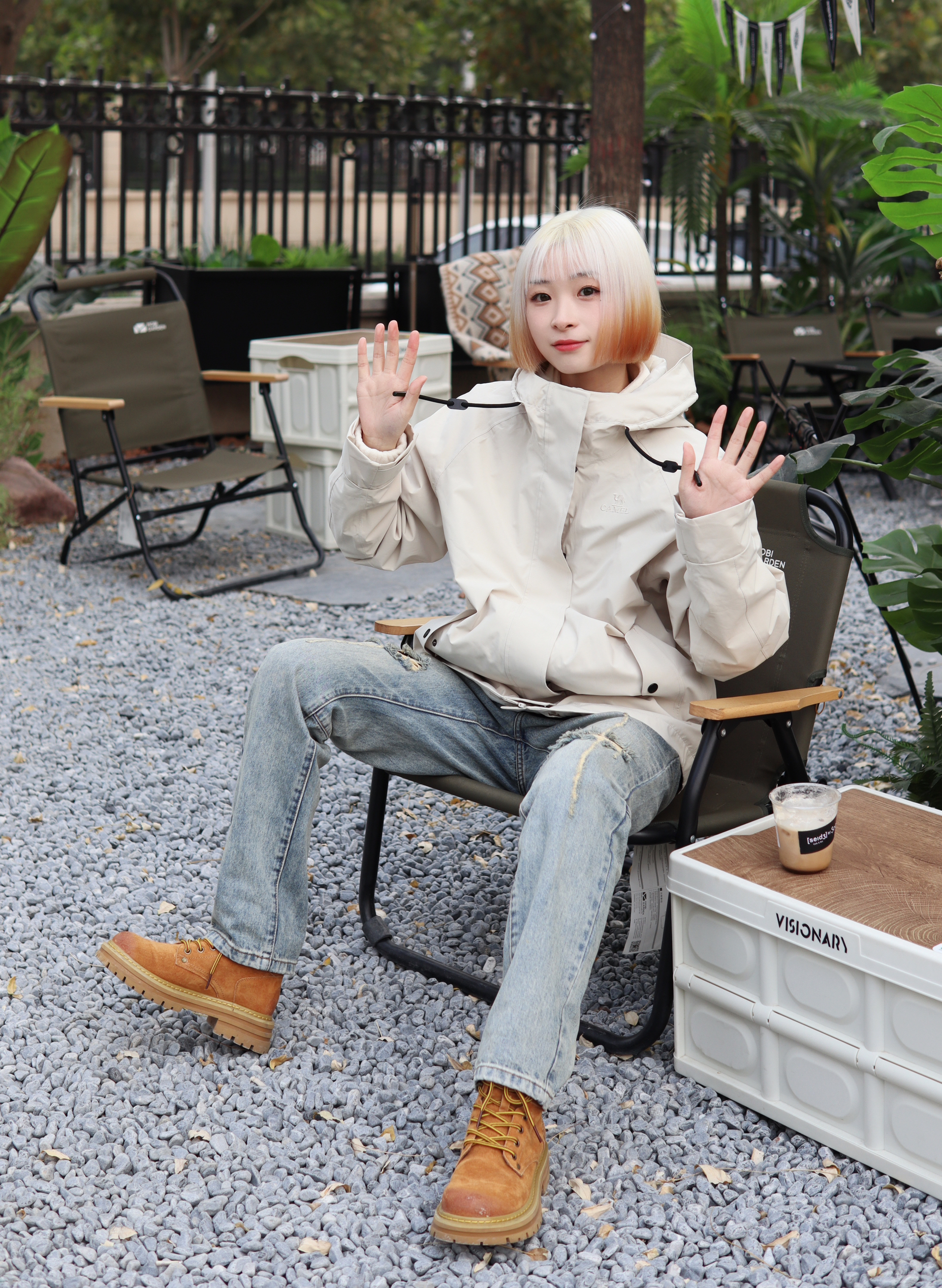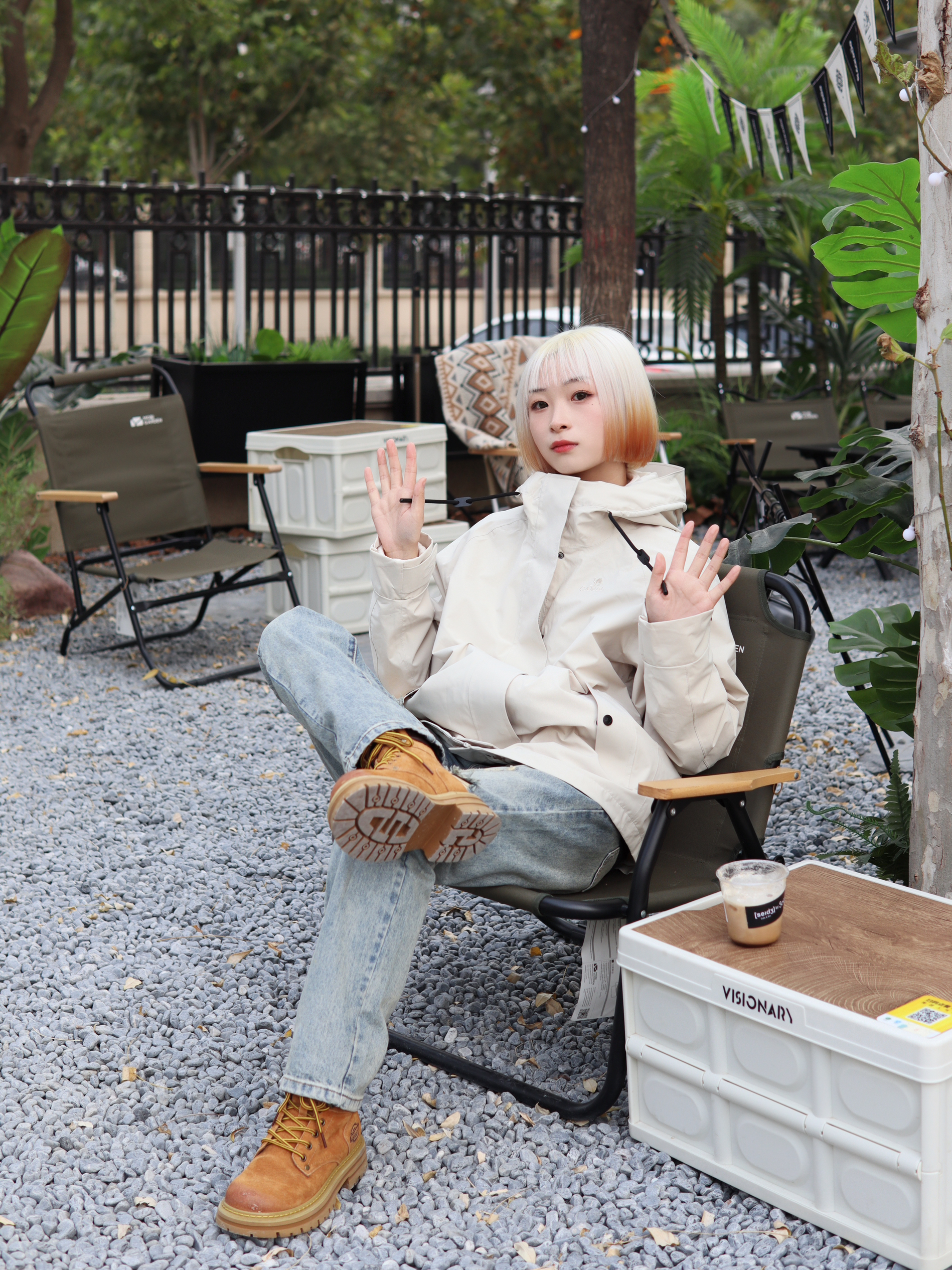北方女孩冬天最后的倔强,拒绝臃肿的穿搭,户外一件冲锋衣妥妥过冬!三合一可拆卸,秋天也能驾驭~ - 第一次尝试浅色系冲锋衣穿搭,上身比较洋气时尚,这个颜色上身完全不土,而且超级显白; 搭配浅蓝色牛仔裤,户外街头风格直接拉满。鞋子就选择大黄靴整体时尚感拿捏✅