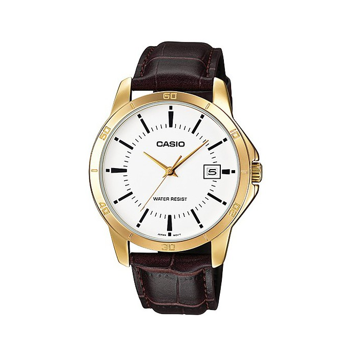 Casio/卡西欧的手表品牌非常不错,这一款是经典的DRESS 黑暗之心限量棕色真皮表带防水石英男表,手表货号是 MTP-V004GL,图片来自网络侵删