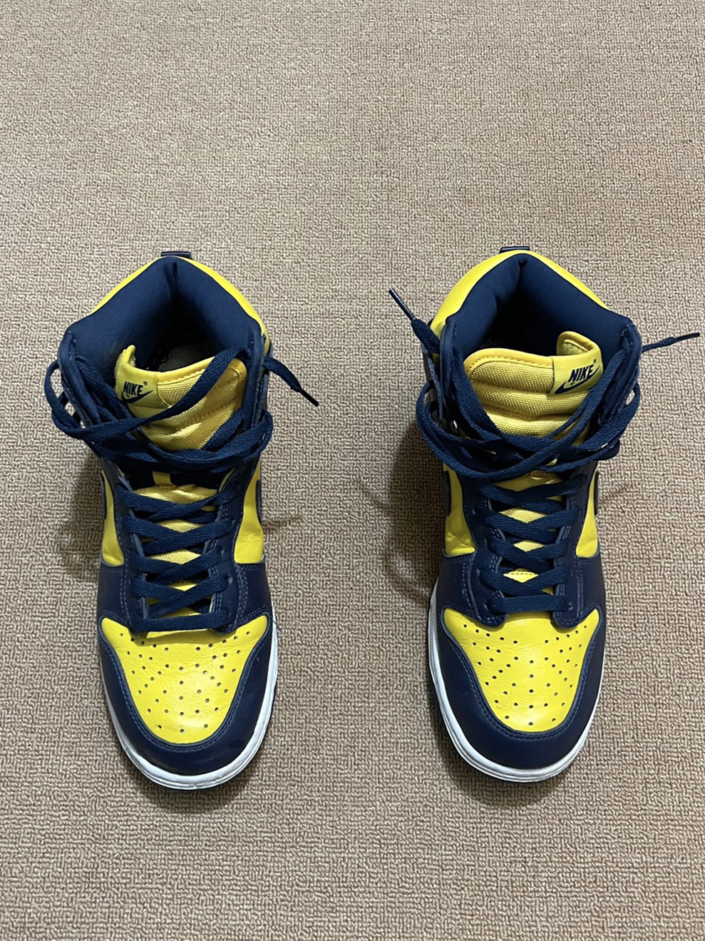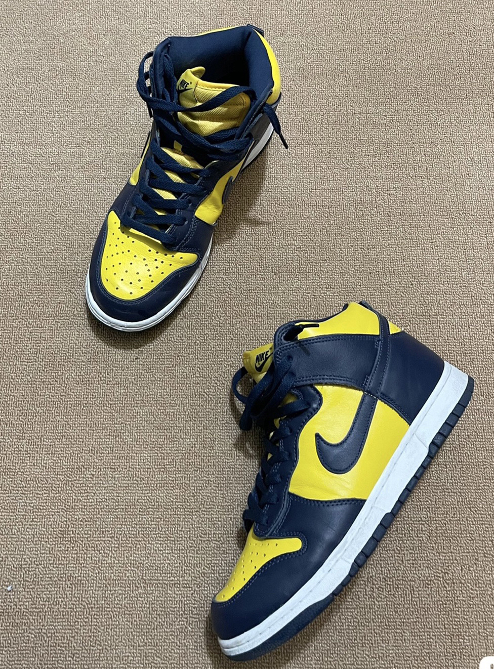 👟球鞋标签:Nike Dunk High Michigan 高帮拼色休闲板鞋 蓝黄 🚶身高:192 🦶鞋码:45 🖼适合风格:休闲 出街 潮流 🤔上脚感受:舒适 出街必备 包裹性强 👗穿搭建议:牛仔裤➕黑色外套 诞生于 1985 年的 Nike Dunk 鞋型定位于篮球运动,以「Dunk/灌篮」为主题,也直接表明了身份,后来的 SB Dunk 鞋型以它为原型,打造了改款的滑板鞋型。 ...
