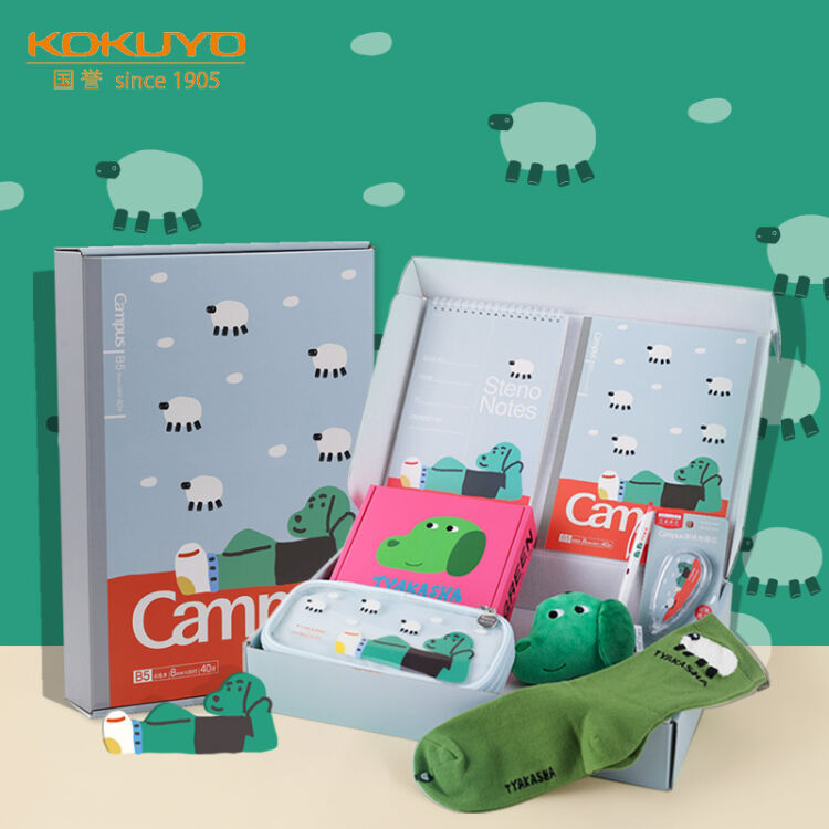 最近从京东入手了一个超可爱的小玩意,给各位文青们特别安利这款国誉(KOKUYO)塔卡沙联名文具礼盒套装。喜欢办公文具的小伙伴肯定对国誉并不陌生,而塔卡沙则是来自上海的服装设计师品牌,有超多可爱的卡通形象,我自己就超爱穿他家的衣服。 这次的联名礼盒套装里包含了以下八款产品—— 联名无线装订本:封面那条躺平的MRGREEN狗狗超级可爱,挺着自己的小肚腩优哉游哉,确实感觉没有理想还是挺轻松的哈哈哈...