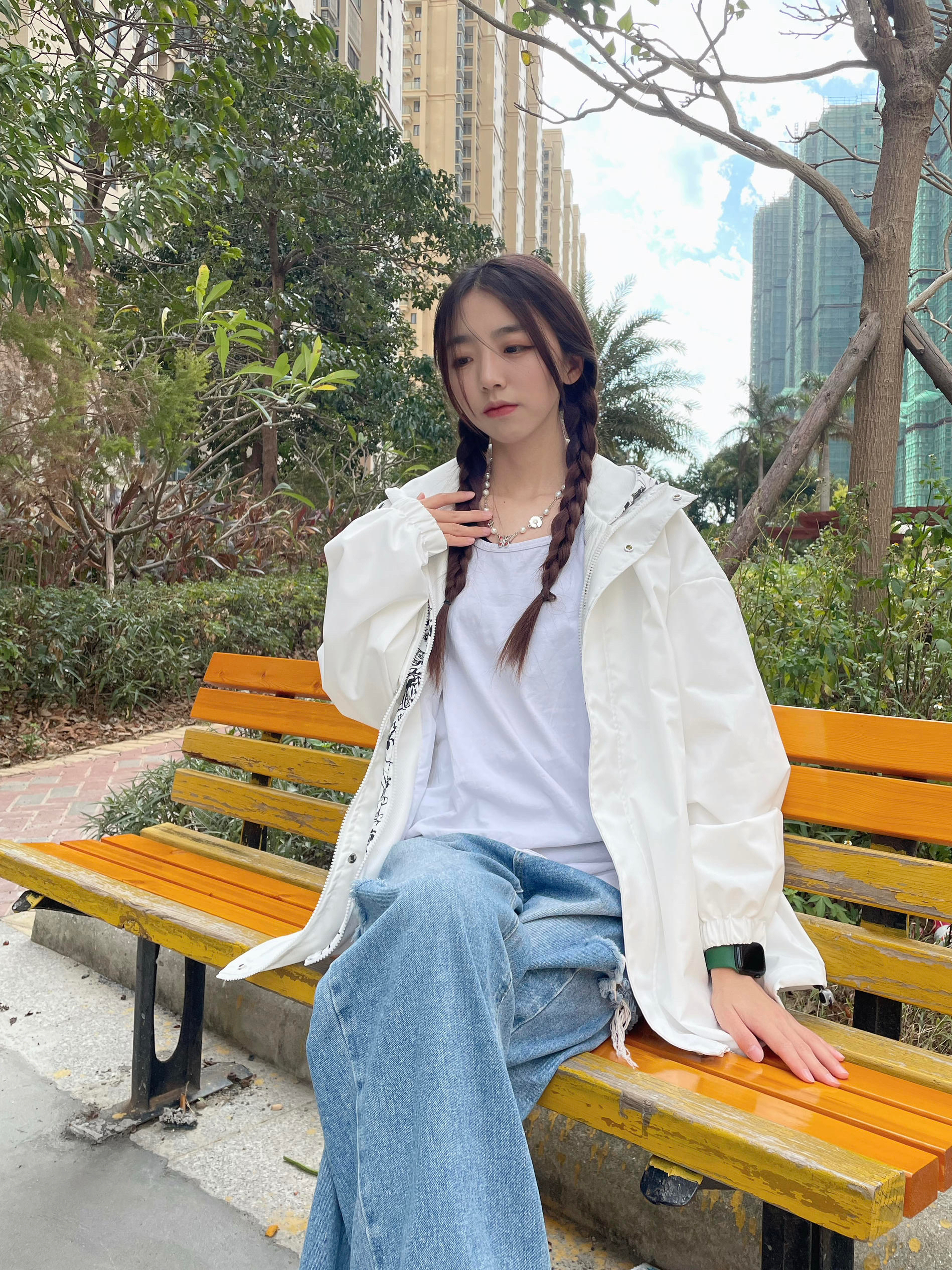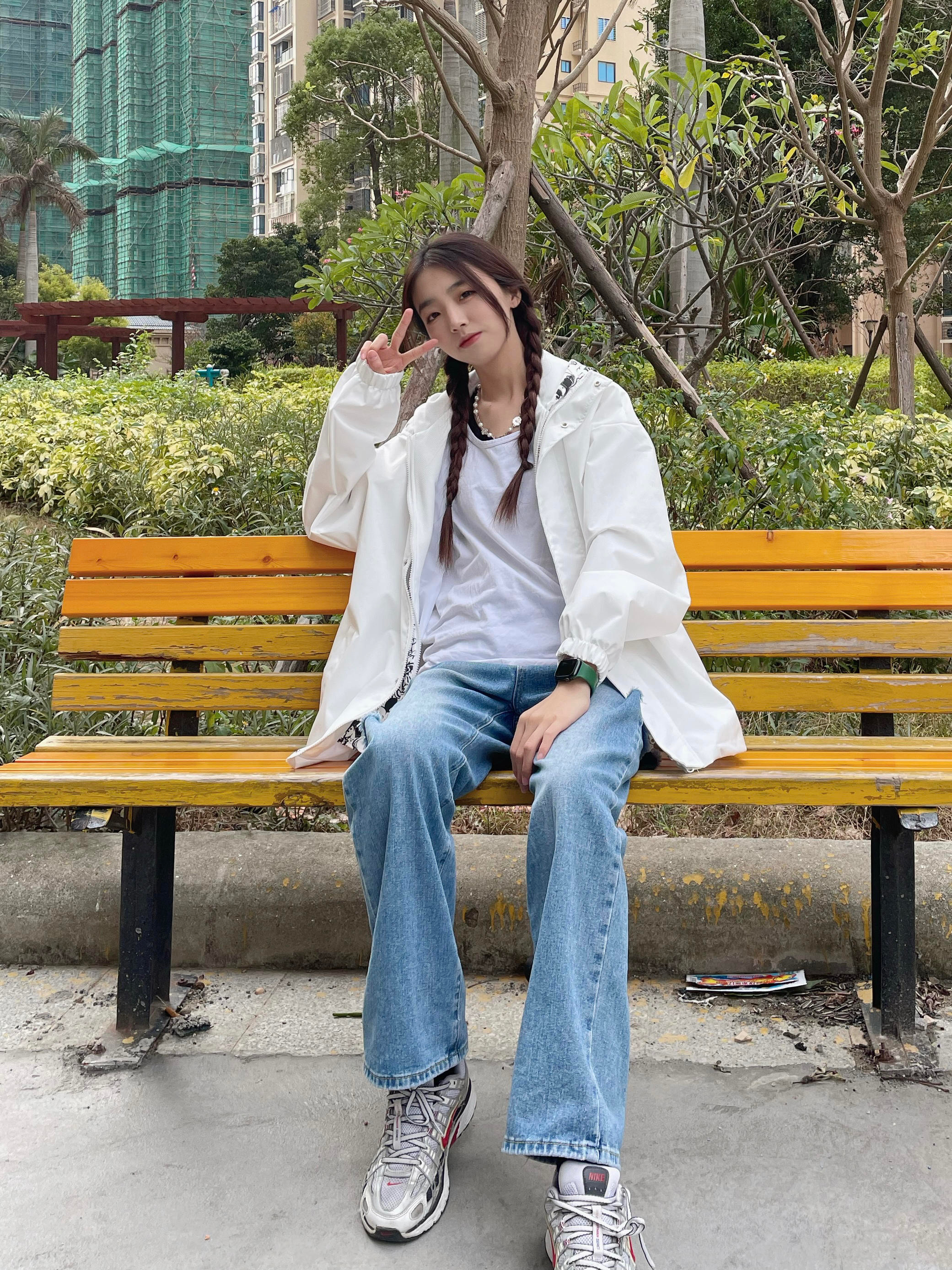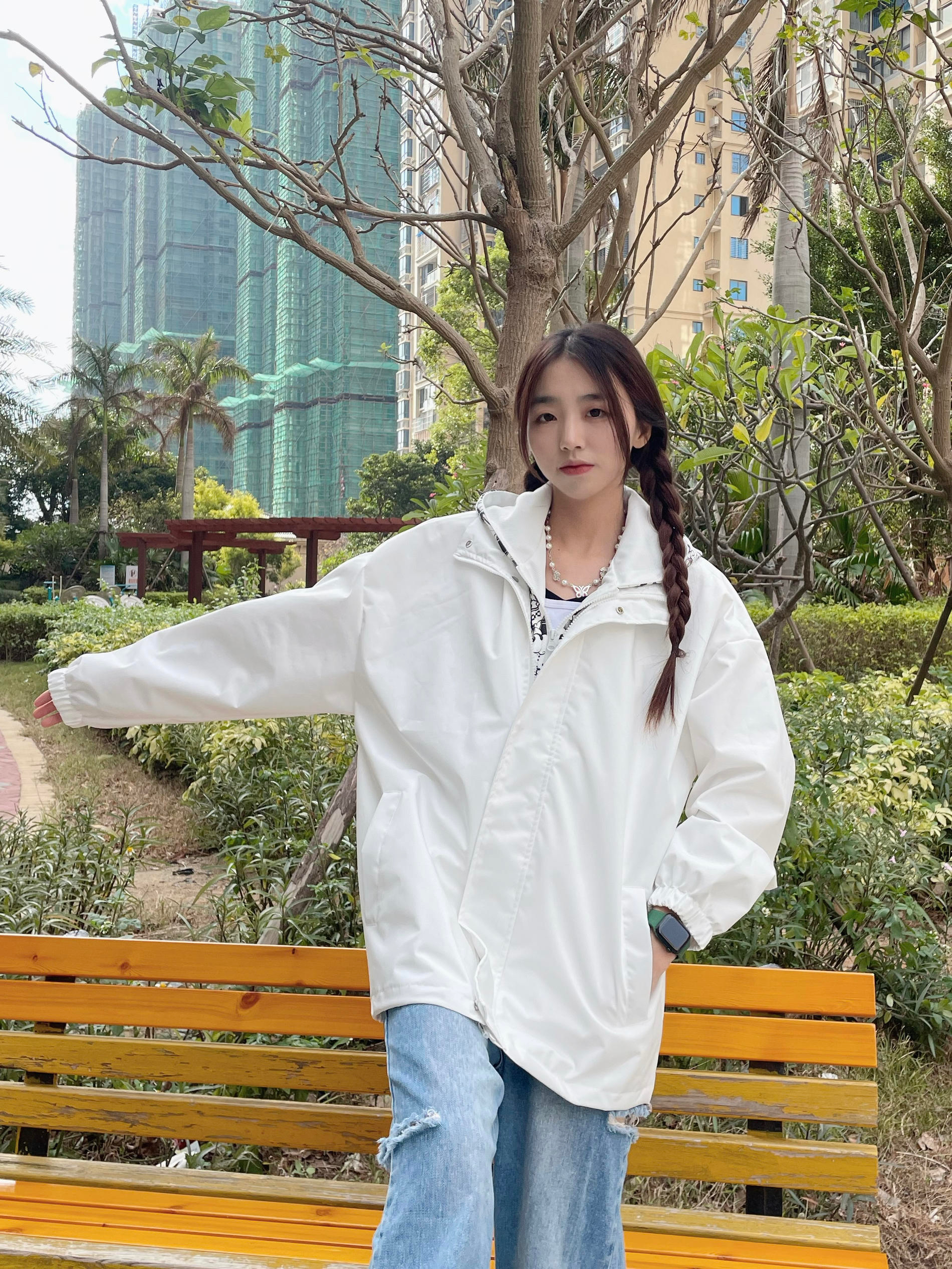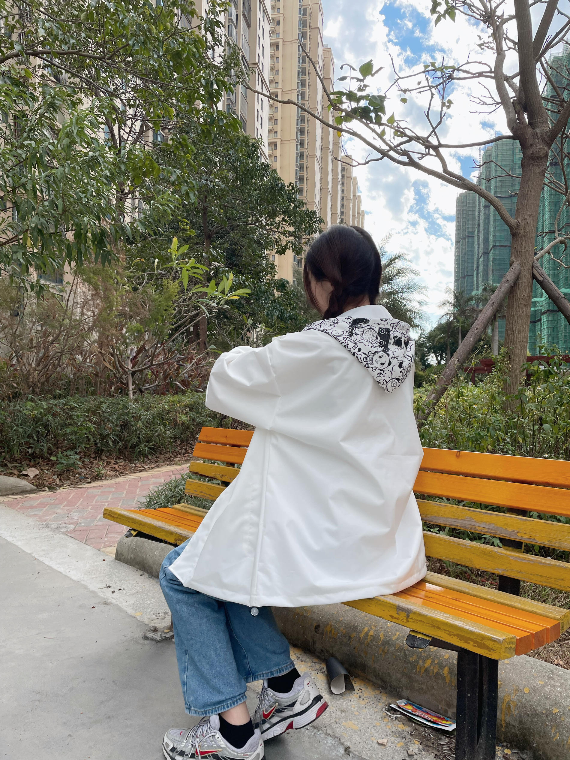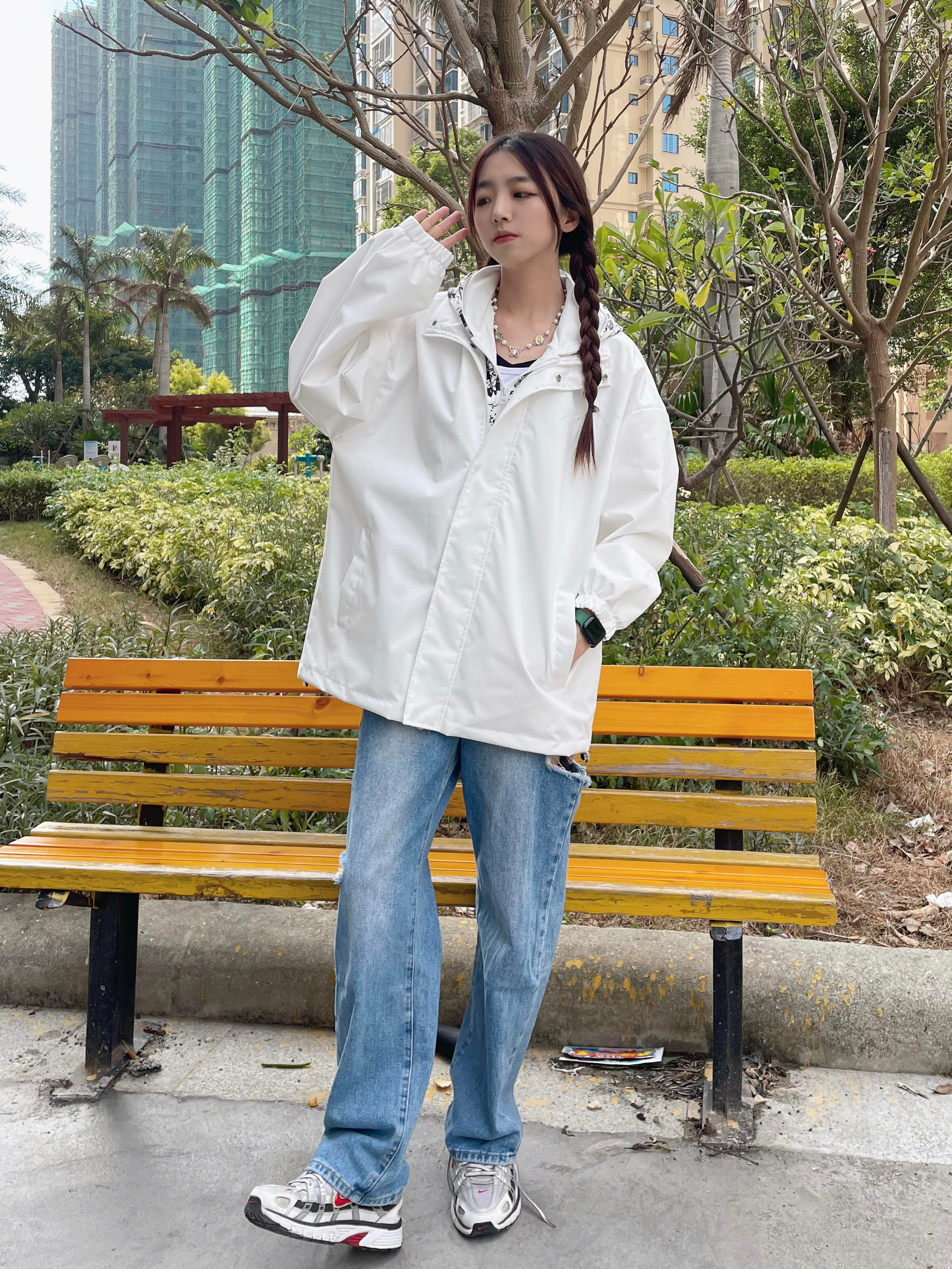 Halo!这里是小铭同学的穿搭分享频道📺 身高:168 体重:44 风格:日系/街头/潮流 这件外套近期最爱惹!秋冬穿搭必备外套啦 白色假两件的设计 把小叮当放在内层 白色和冬天的适配度💯 搭配了蓝色牛仔裤 再搭配复古运动鞋 这一套也太有活力啦