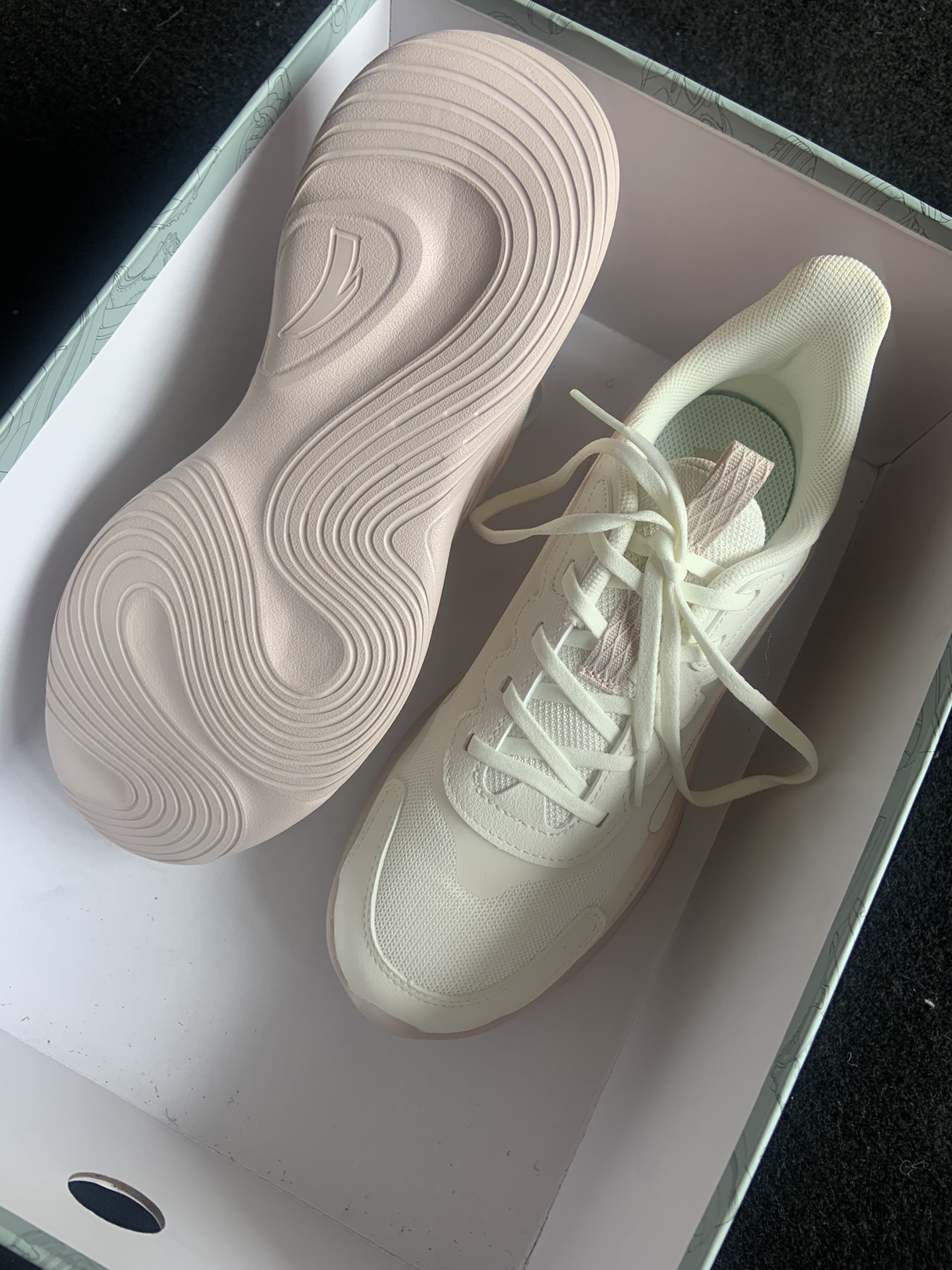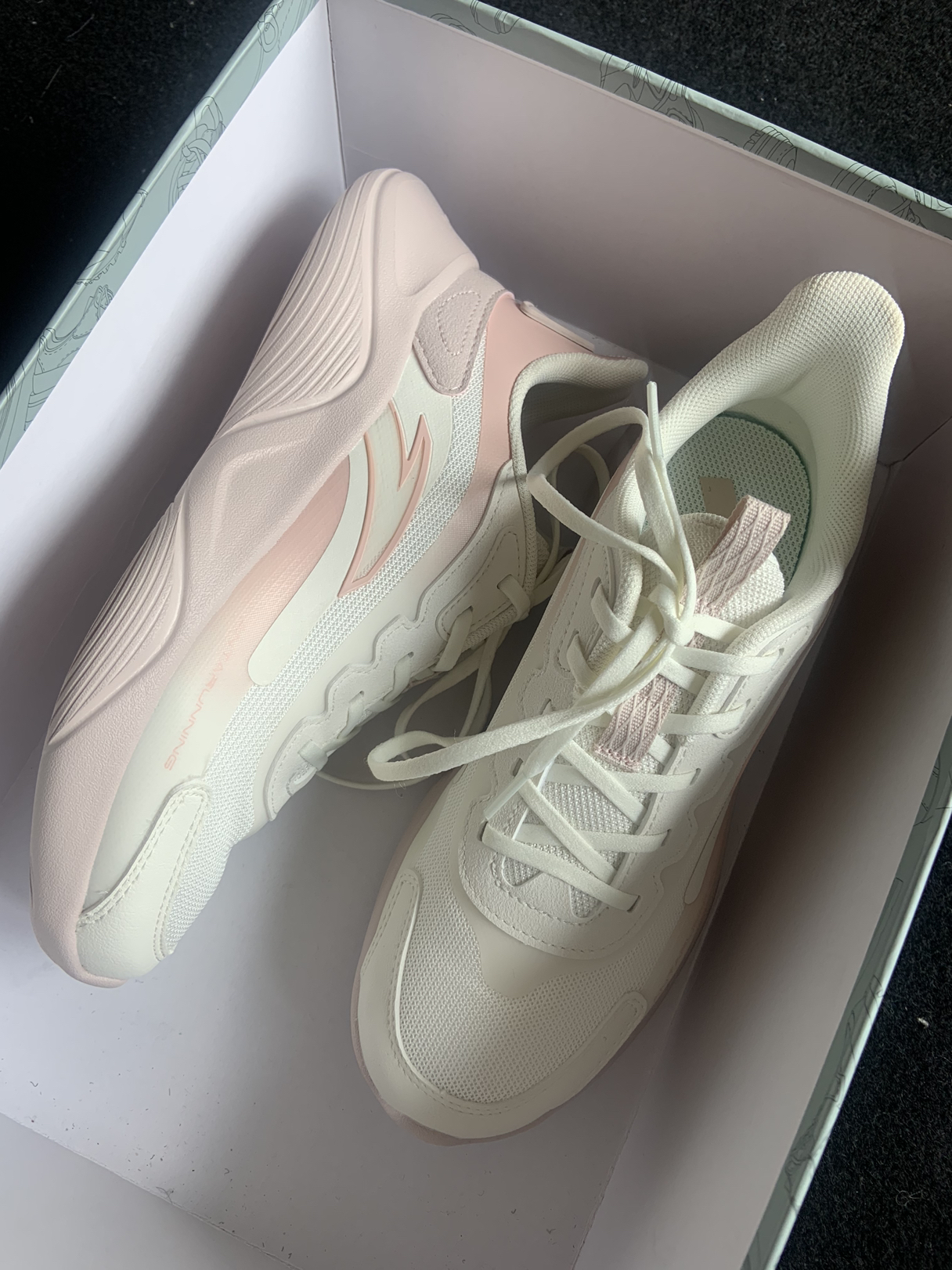 鞋子整体还挺轻盈的~ 穿着跳绳一点不费劲!嘎嘎舒服~ 小粉色也很好看啊啊!