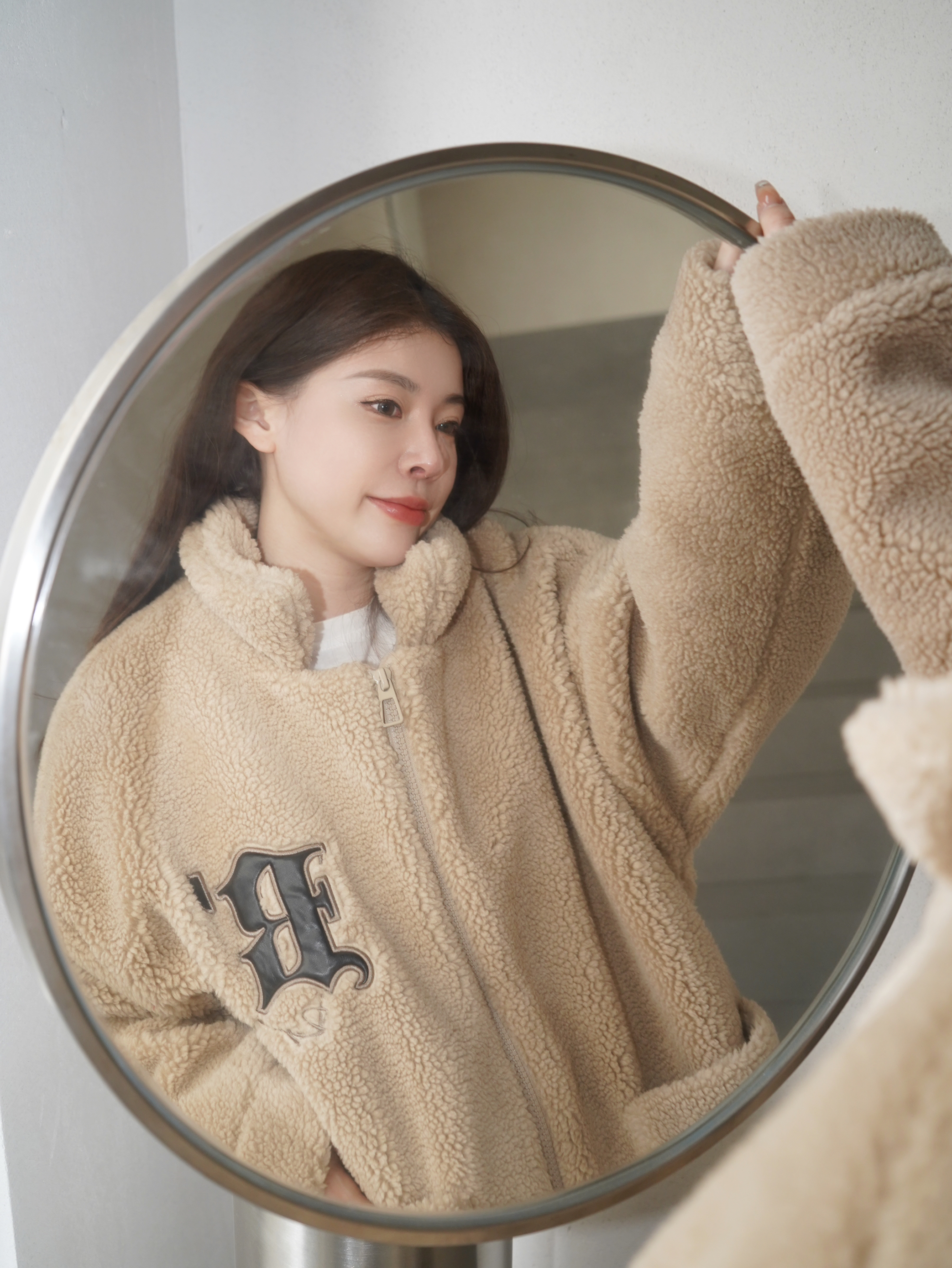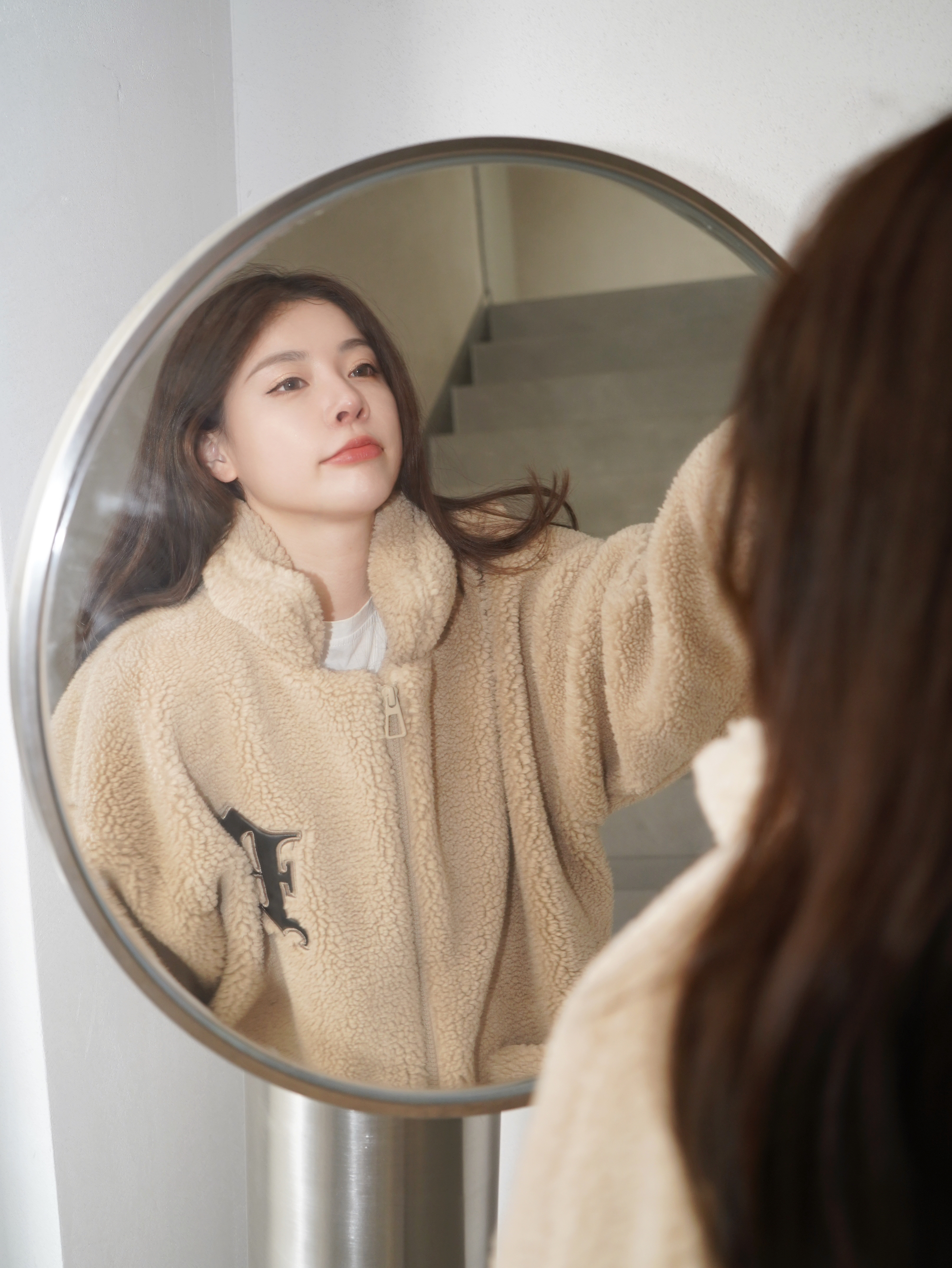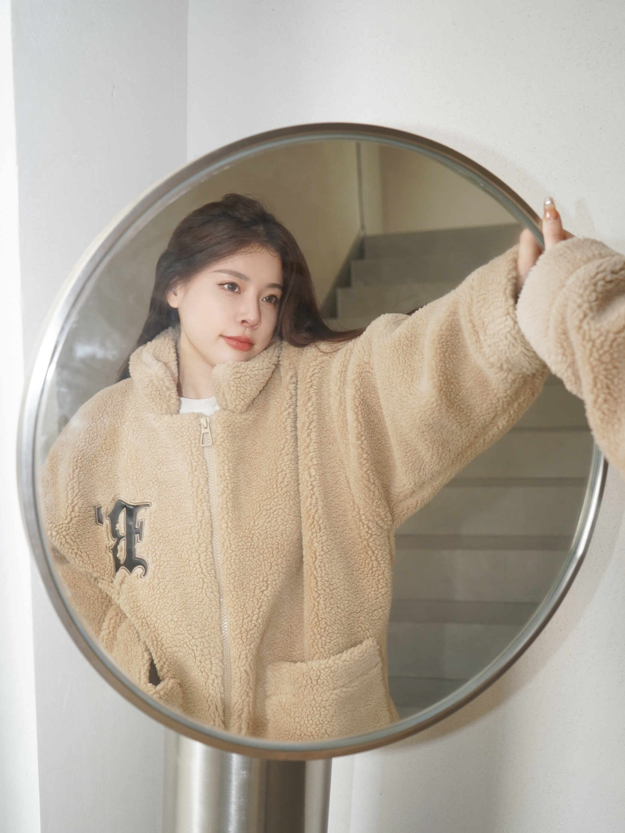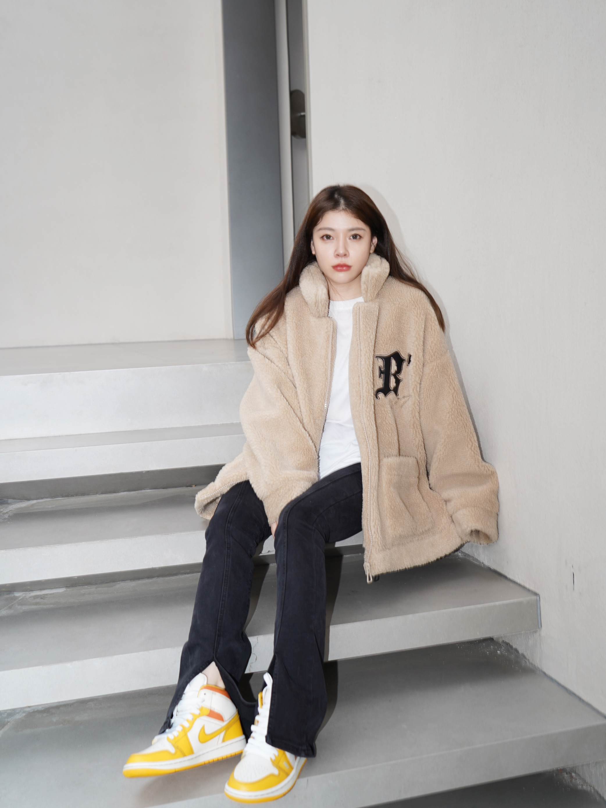 嘻嘻嘻!暖棕色的羊羔毛不常见耶 同色系的运动鞋 zun的好看