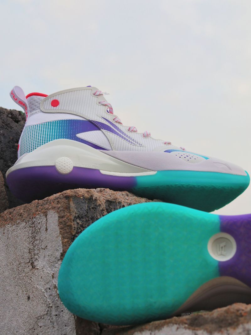 hello! 这边是小泽,今天是给大家带来了一双颜值与性能并存的实战篮球鞋! 来自李宁的驭帅15! 这一次的驭帅15不同于之前的驭帅14是走了一个复古篮球鞋的路线,而且我这次入手的白蓝紫配色也是十分的小清新! 不得不说李宁在实战篮球鞋颜值的设计上真的要比其他国产品牌强上许多! 配置方面鞋子在中底是搭载了全掌的李宁云科技和全掌的䨻科技脚感绝对是得到了保证! 除此以外中底足弓处还有李宁独特的稳定装置所...