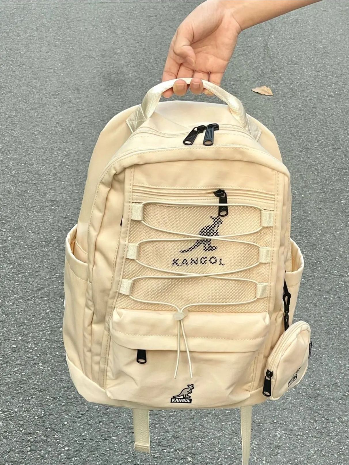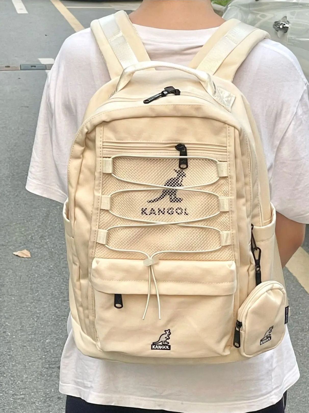 品牌名称:Kangol 中号 学生简约百搭运动背包防水大容量书包 有人不知道 kangol 这个双肩包我真的会难过的OK ? 书包真的好绝啊 嫩嫩的配色,容量还很大!可以装很多东西而且包包自重很轻~防水布料也不怕弄湿!象牙白真的超级百搭嗷! 上学的宝子们赶紧冲!我们要做上课最好看的那个! (图源网络侵删)