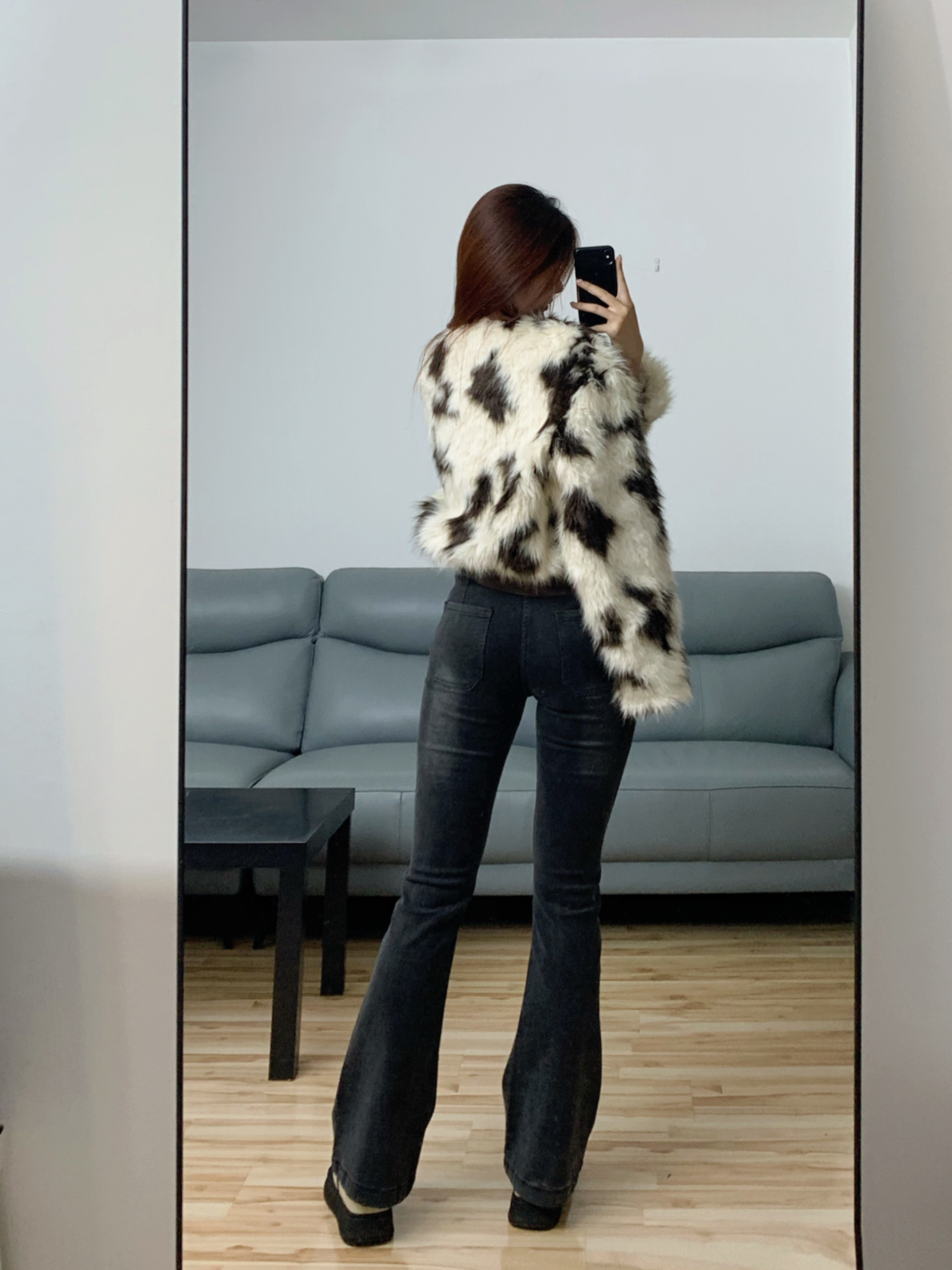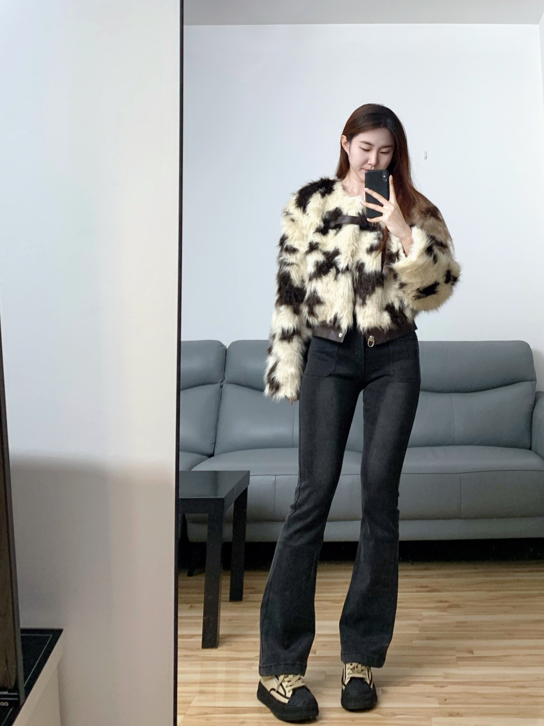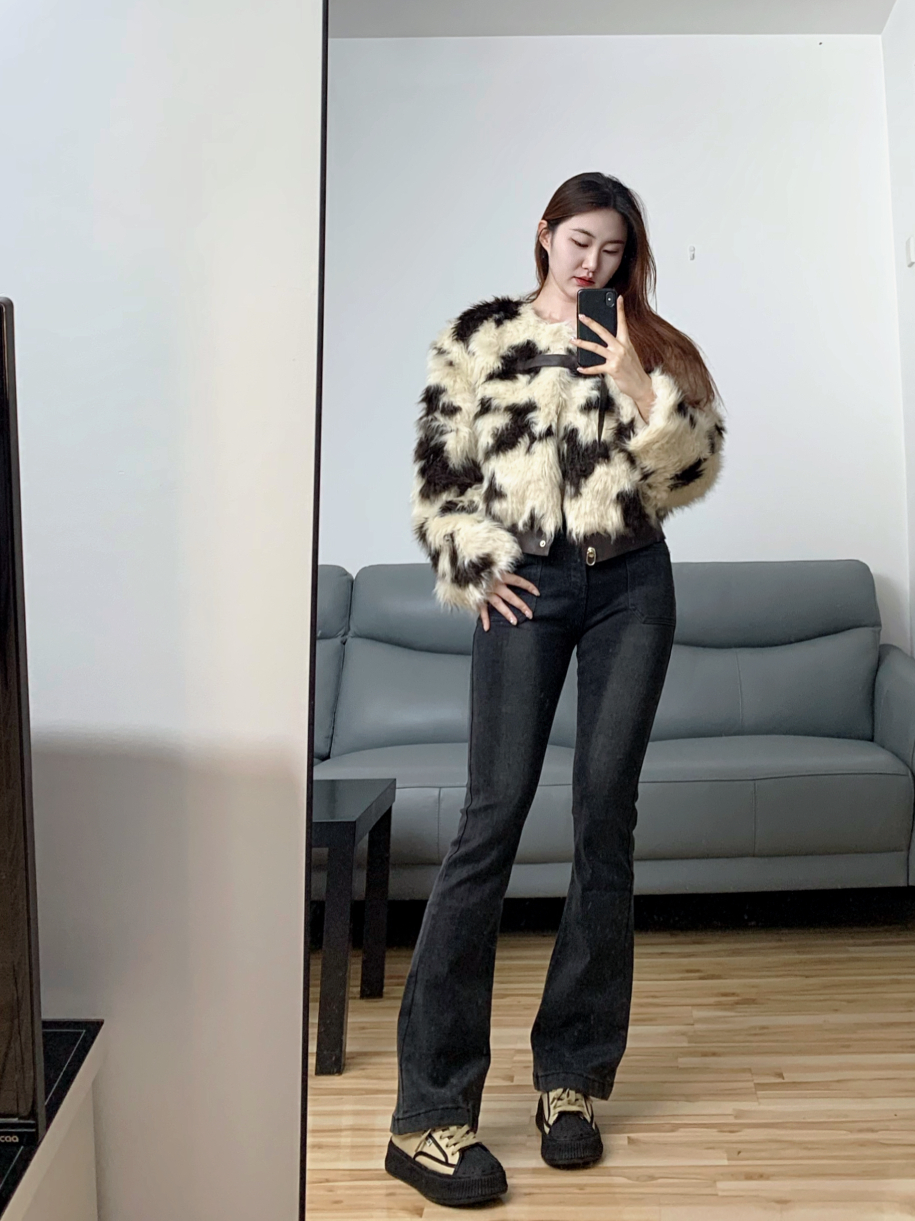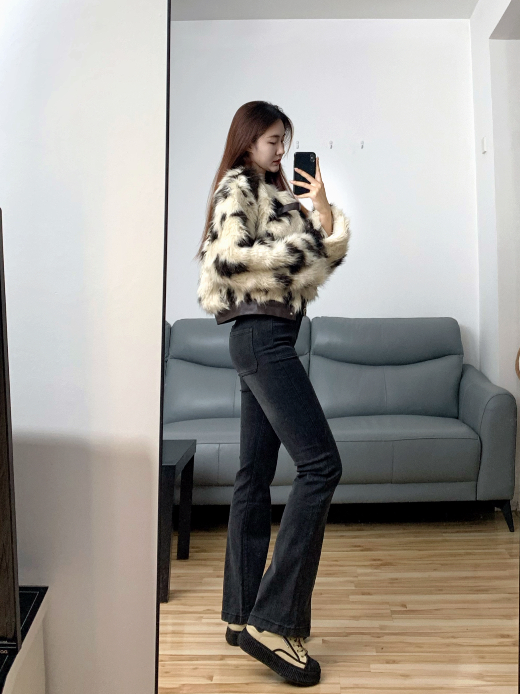 毛毛外套➕灰色微喇裤太绝了~ 一整个气质住了,高个子女生这么穿超好看! 微喇裤梨🍐型牛仔裤天花板!