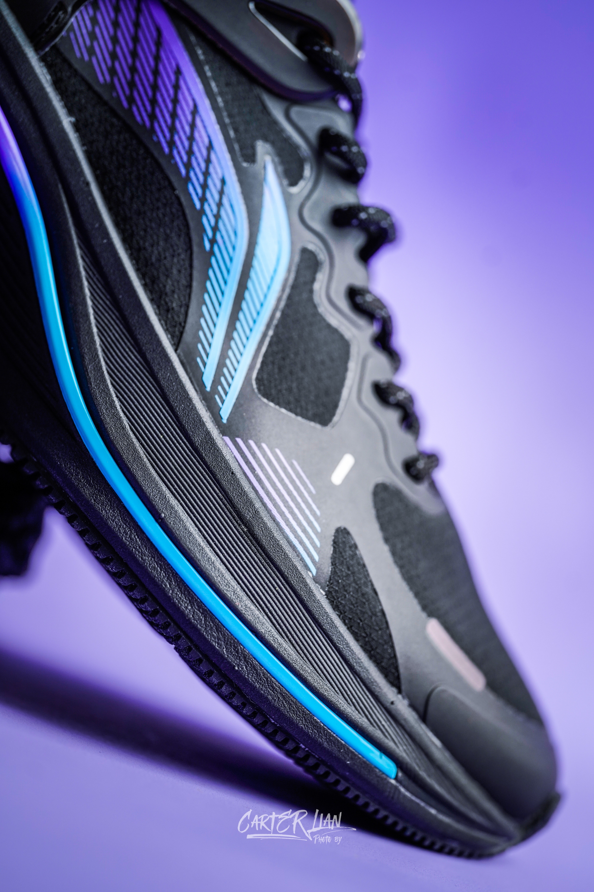 这双吾适2.0赛博配色灵感来源于赛博朋克世界的科技感元素,整体黑色为主色调,搭配蓝紫的霓虹渐变去点缀。日常穿着慢跑的话还是非常耐脏的。 鞋面材质上采用了精密编制鞋面为主,在辅以热压去补强,后跟环抱的TUP进一步去强化后跟的锁定感。 中底采用了Lightfoam的科技,双密度设计,中底的厚度也可以带来不错的缓震。加上内置的铲型助力片和贯穿全掌的TPU支撑片,去提供鞋子的稳定性和推进力。 实际感...