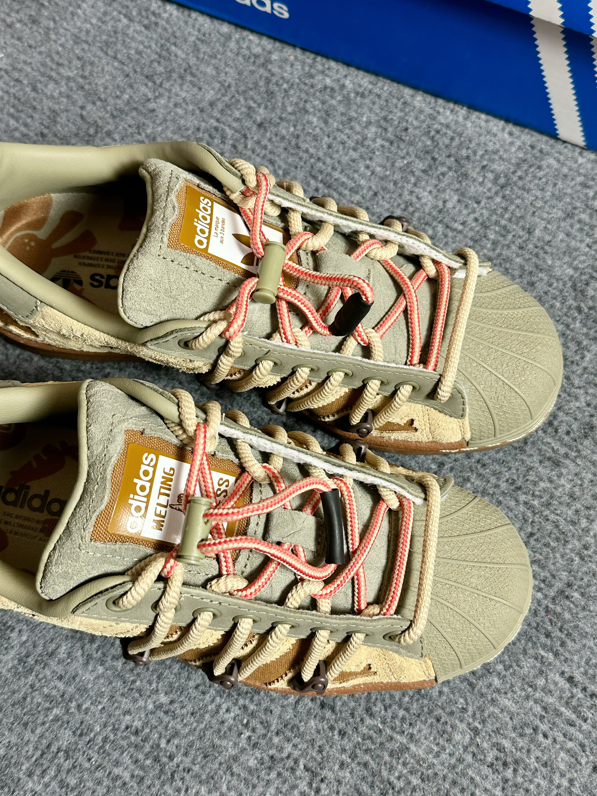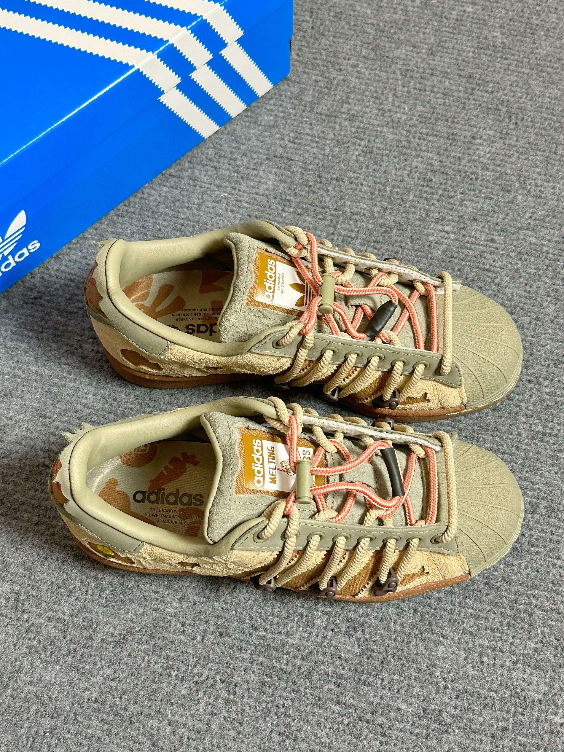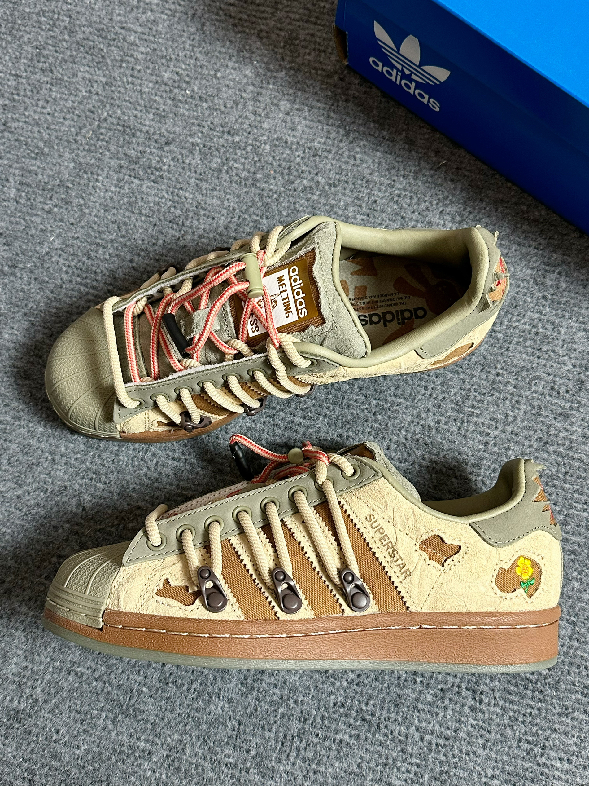 鞋款:melting sadness x adidas originals Superstar 兔子洞系列板鞋绿棕 笈售日期:2022冬季 笈售价格:1099