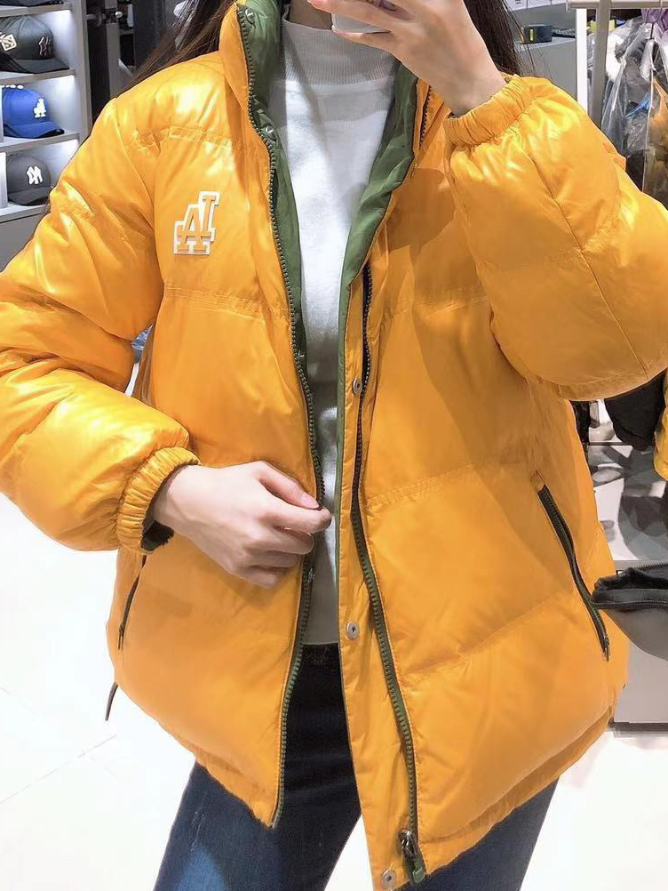 这个冬天我就靠它保命了!!超级暖和的一身穿搭,谁会不爱呢! 这一款是MLB 潮牌双面可穿保暖户外短款大口袋羽绒服 31DJ02061,他家的羽绒服真的是太有设计感啦 这一款羽绒服也是双面穿的设计,黄色和绿色的配色都是比较特别也比较新颖的 (图源来自网络)