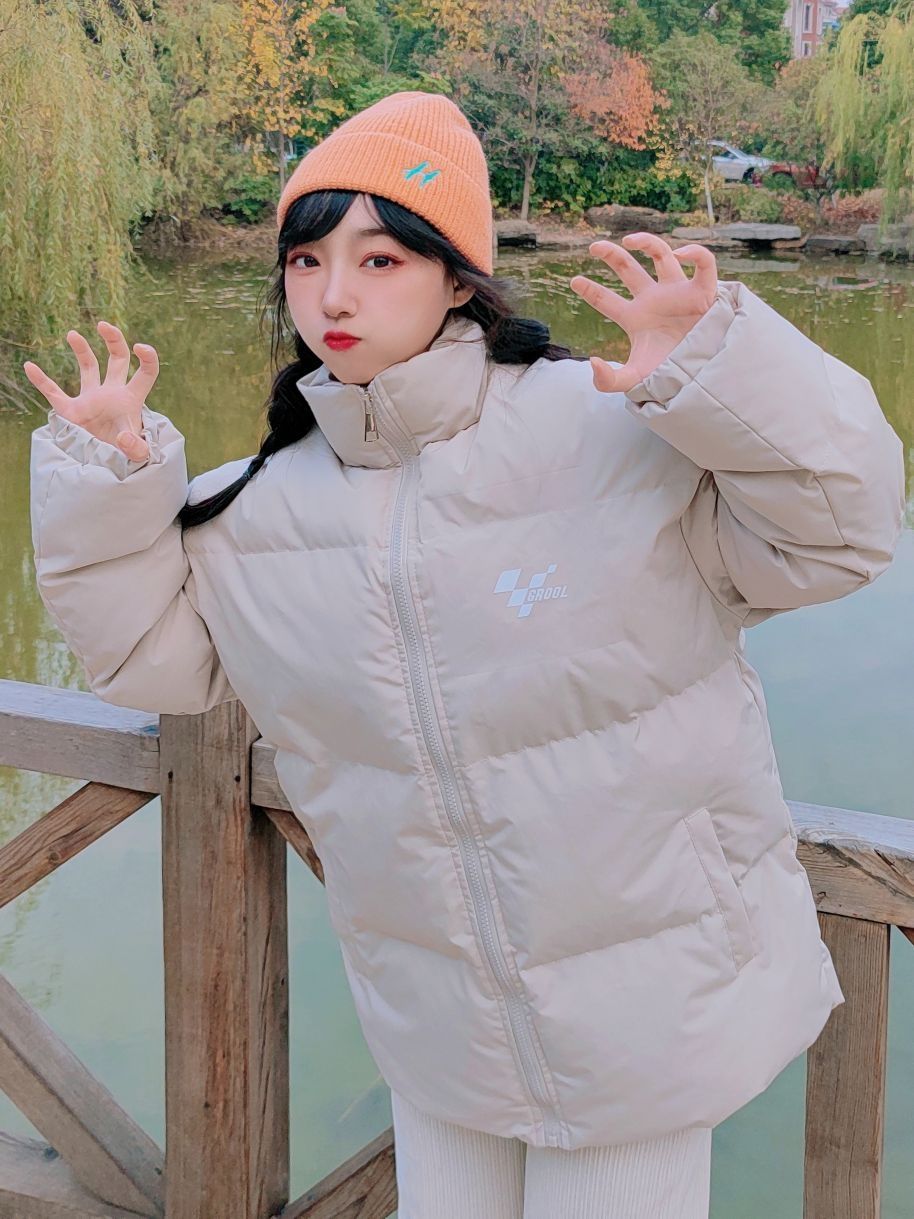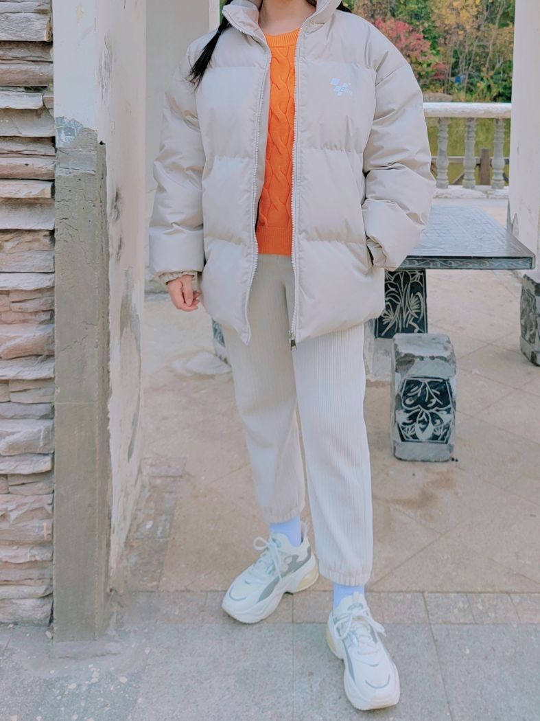 🌞160cm/46kg ↓ 现在已经是正经的冬天啦, 让我看看👀哪个宝子还没备好棉衣? 我们江苏近来真的还蛮冷的, 保命面包服这件就够了~ 是✨GROOL赛车格立领棉服外套哈, 米白色比较简约百搭, 10度左右的天气里面搭件毛衣就🉑, 下面配上厚实灯芯绒束脚裤👖, 我觉得很暖和🔥抗寒的! 嗯✌🏻尺码穿的是XL哈, 喜欢这样子大大的被抱住的感觉~