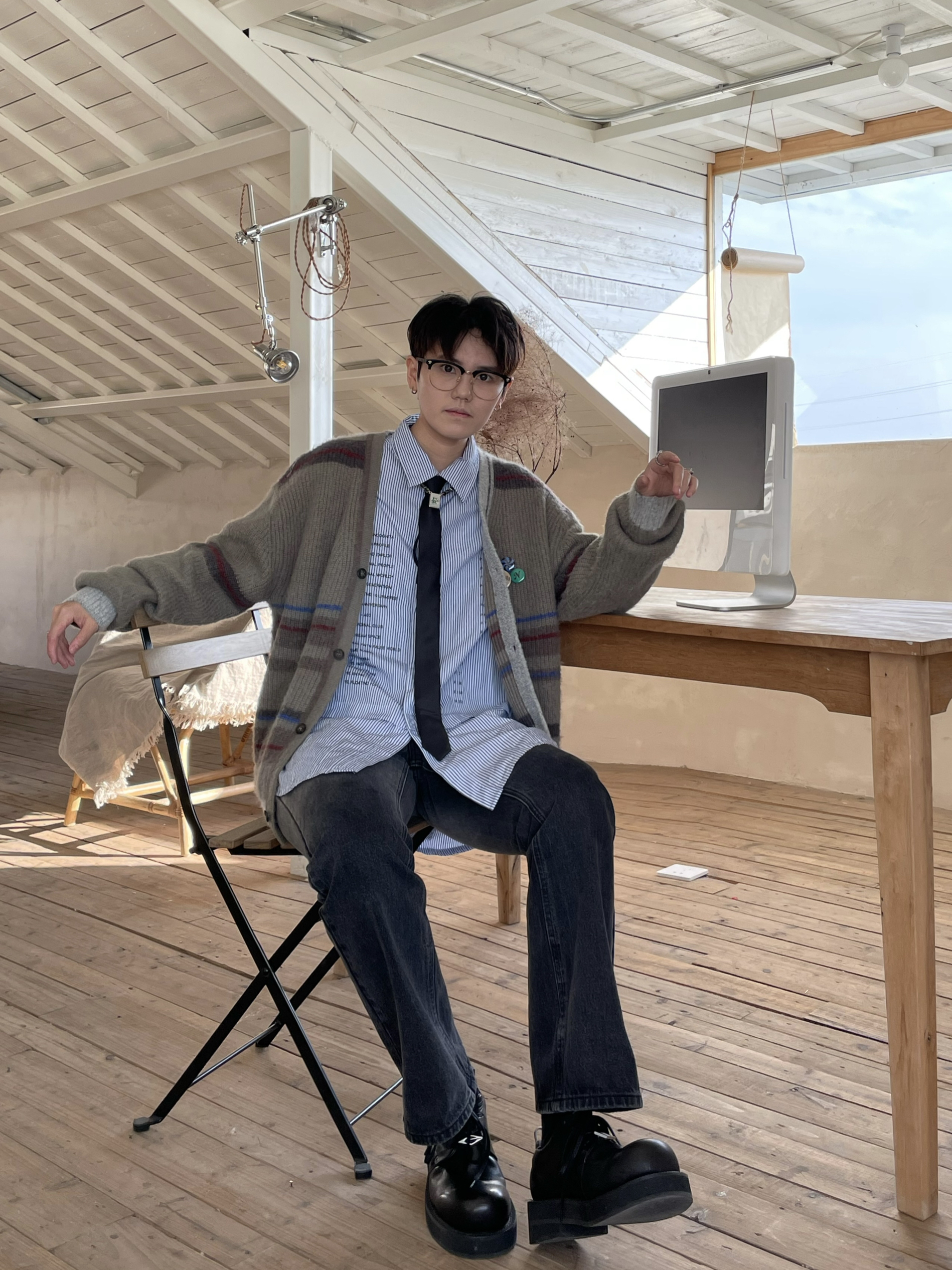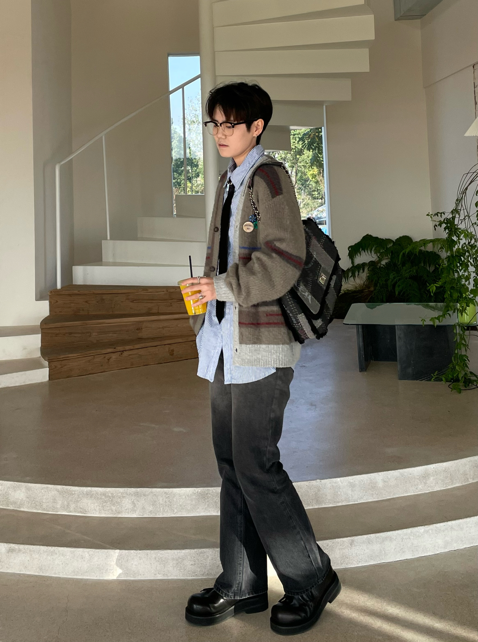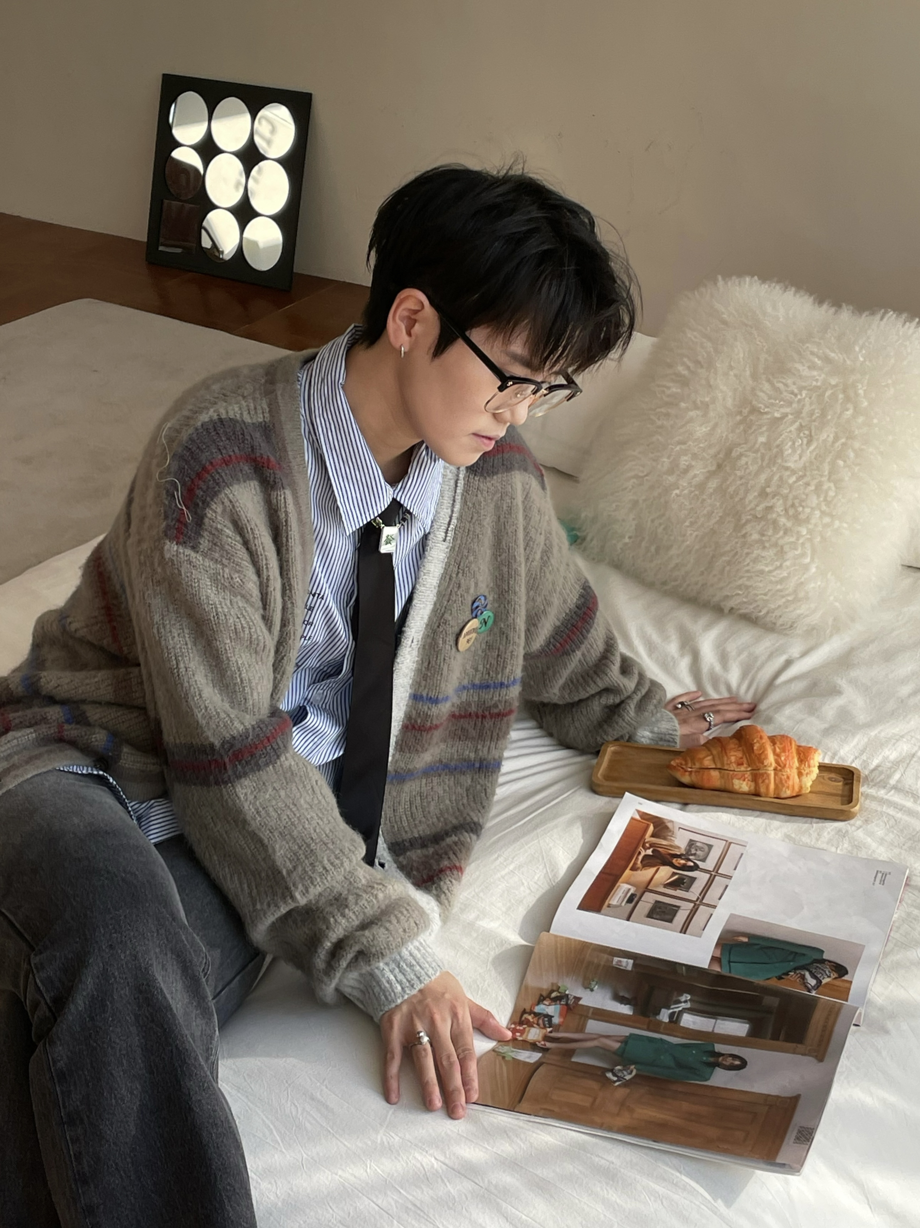 今天的穿搭就走精致韩国学长风,选择了条纹马海毛开衫毛衣+衬衣+修身微喇牛仔裤的搭配,超级适合深秋以及早冬,搭配个外套或者风衣也是妥妥当当滴~ 当然,脸上的装饰品也不可少,选择了木九十这款复古椭圆半框眼镜作点缀,又斯文又高级的气质直接拉满。很精巧的设计,也不重,高度数的姐妹不必担心,完全不会压鼻梁,带上去是不是看着脸小了许多,修颜作用体现的明明白白,我愿称之为素颜天花板。哦对了,黑色+金色花纹点缀我...
