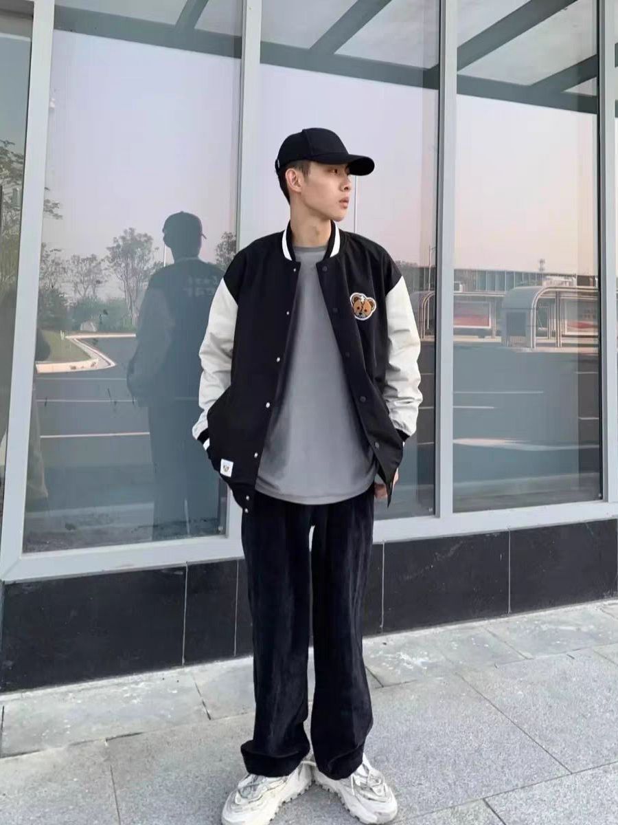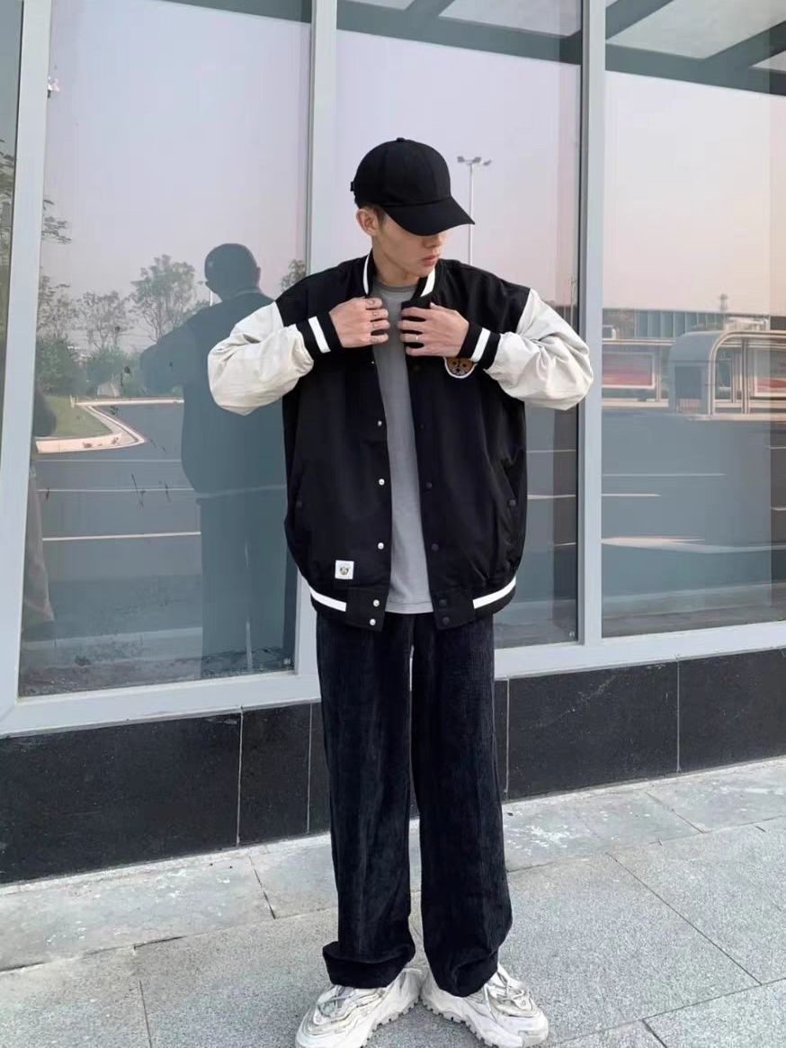 ☀黑色系真的yyds,简单又舒服! ☀黑白拼色棒球服搭配黑色灯芯绒阔腿裤,一套即遮肉又好看👋 ☀这条裤子是我最近的心头爱了,版型很绝,遮胯遮肉第一名,有拖地的慵懒时髦感 又不会那么挑身高 ☀秋冬肯定少不了灯芯绒阔腿裤🥳
