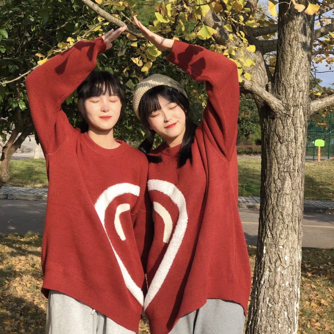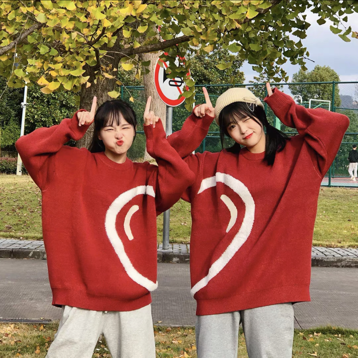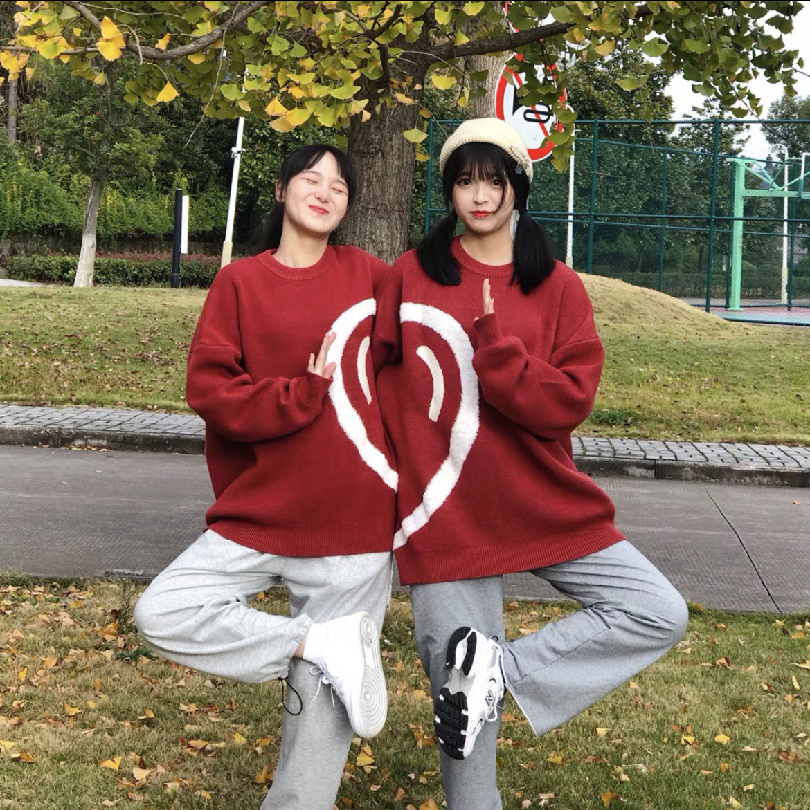 针织爱心情侣毛衣来啦!小众简约~设计感满满 面料敲厚实,软糯糯的,敲舒服高级百搭,上身巨减龄!!红色款很有氛围感呢,节日穿搭最合适不过了。 男女同款~和闺蜜一人一件不要太好看啊! (图片来自网络,侵删)