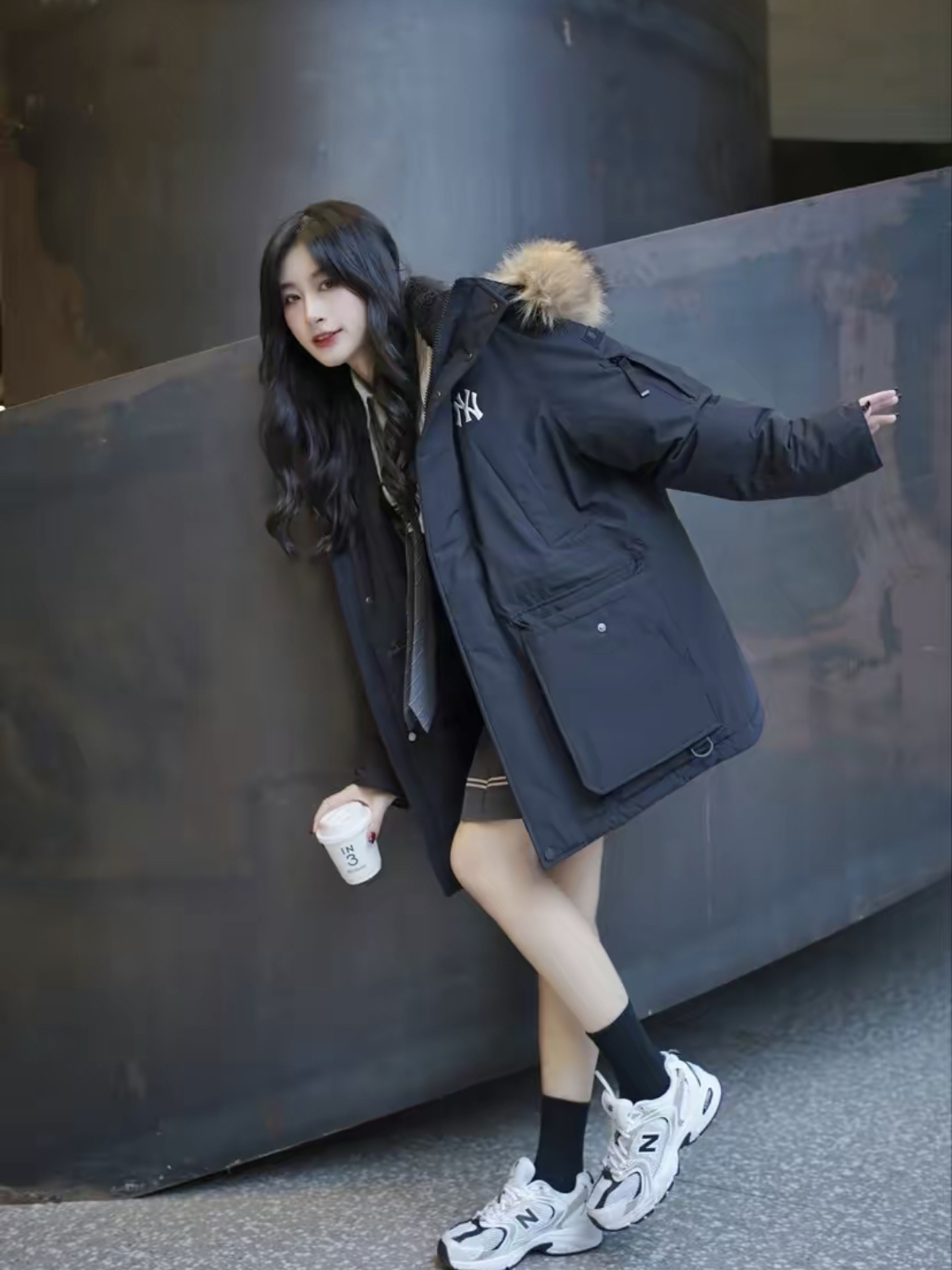 这款羽绒服运用了双层防绒内胆设计!防风性能超强,冬天穿非常保暖!采用真貉子毛领,灰鸭绒填充,蓬松度高,帽子是连在一起的,连帽设计走在户外,把领子拉到最高,双手插进口袋非常暖和了,尺码让所有身材都可以轻松驾驭! (图片来自网络,侵删)