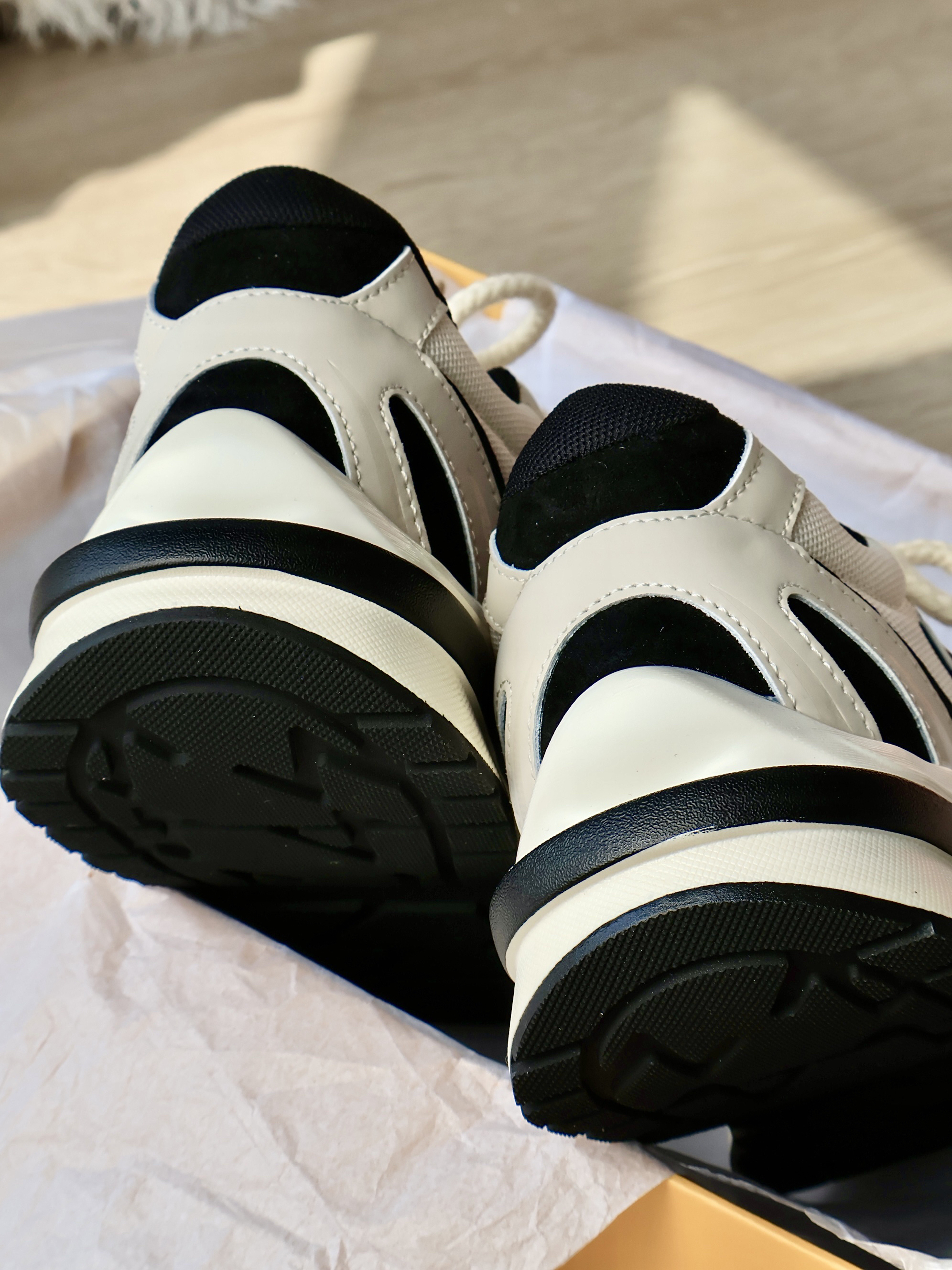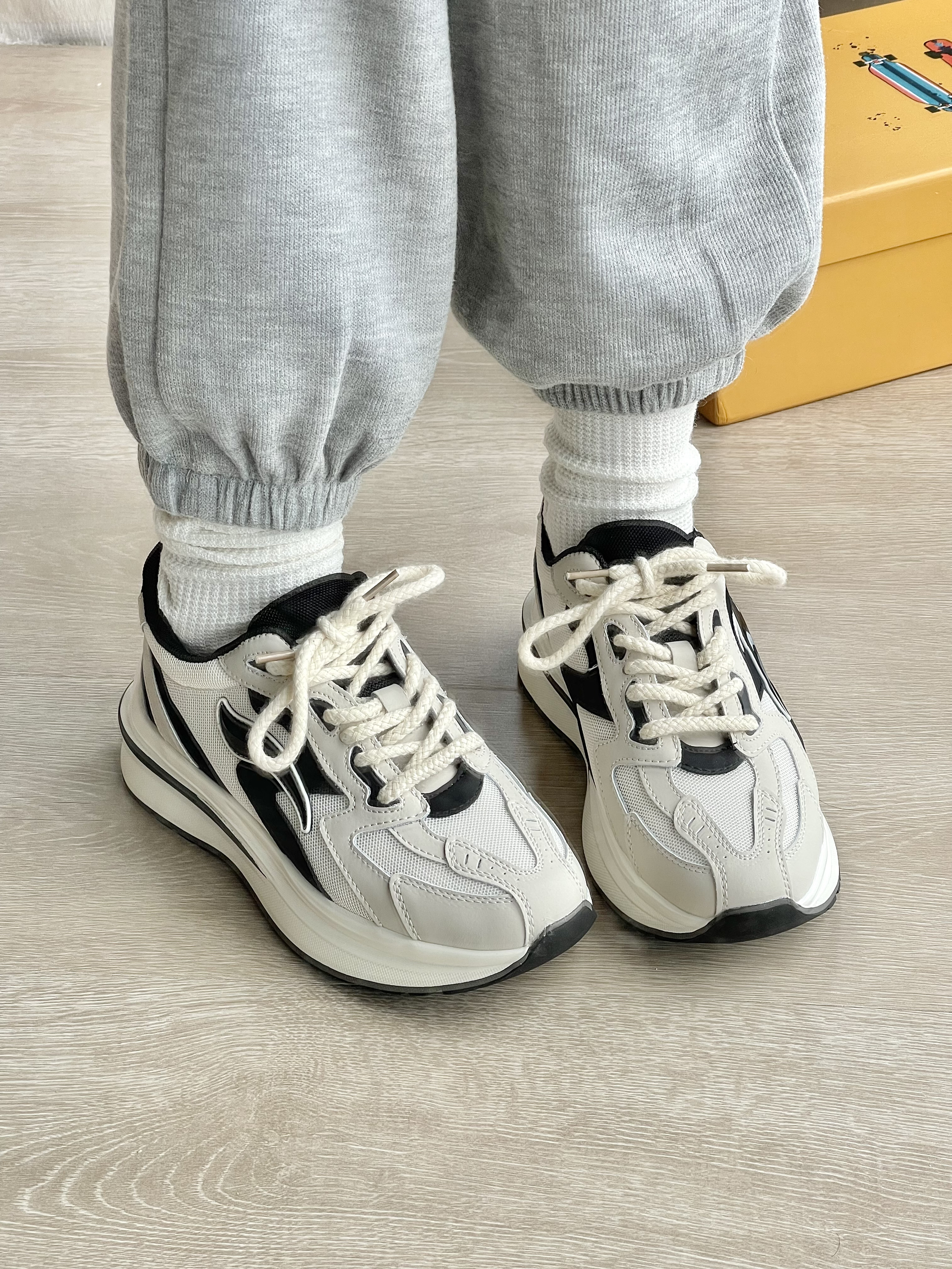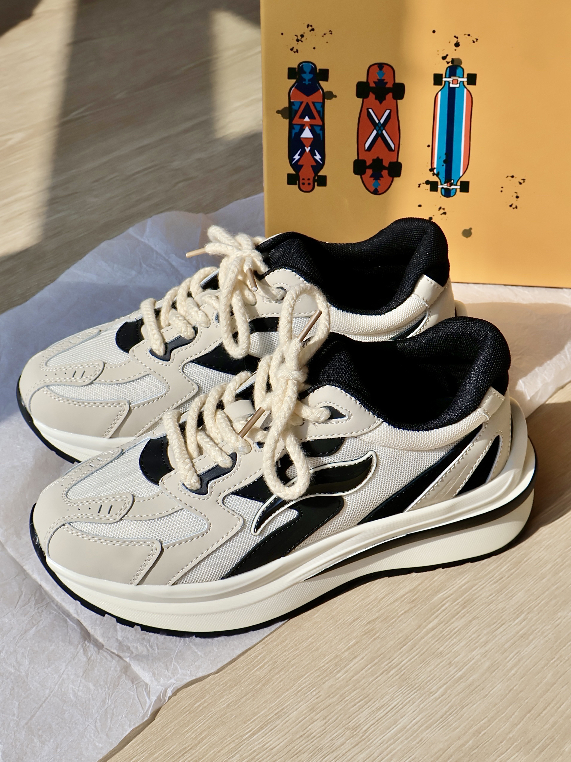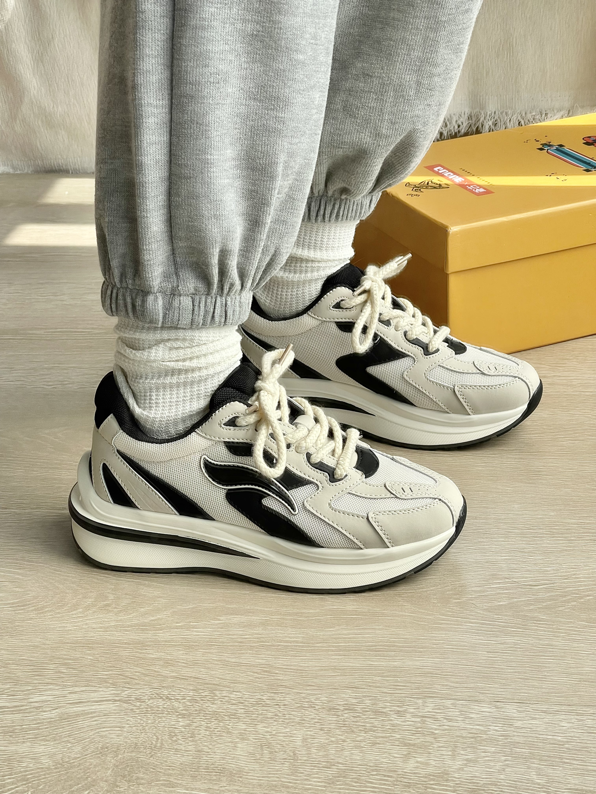 小众国潮运动鞋 颜值好戳我呀 没想到上脚会这么好看 奶呼呼的显脚小 还附送两个防磨后跟垫 挺用心! 带4cm增高 矮个姐妹福音