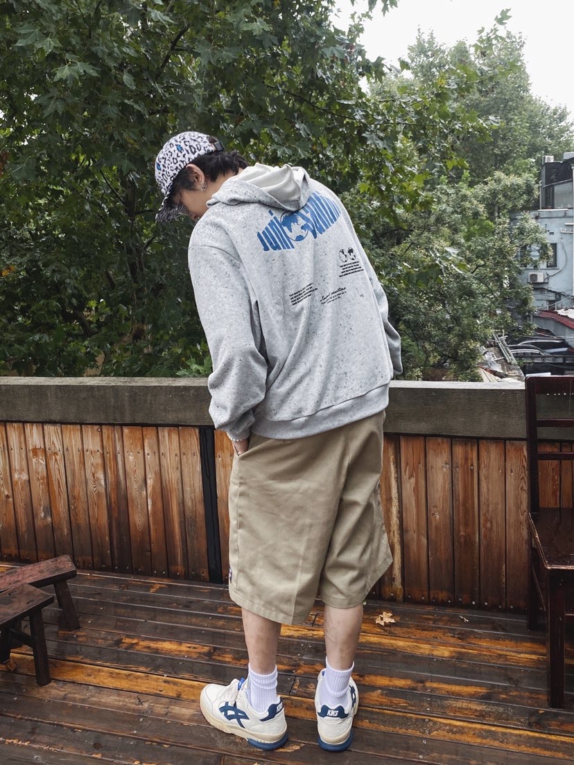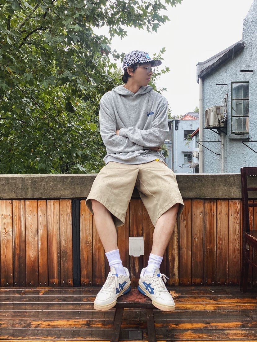 下雨天故意不打伞是为了耍帅☔️ 灰色系穿搭是真的狠狠帅住了 卫衣配短裤轻松拿捏街头感🤏🏼 上身和球鞋的蓝色细节呼应小心思✌🏻 酷酷的街头感穿搭原来这么简单🚶🏿