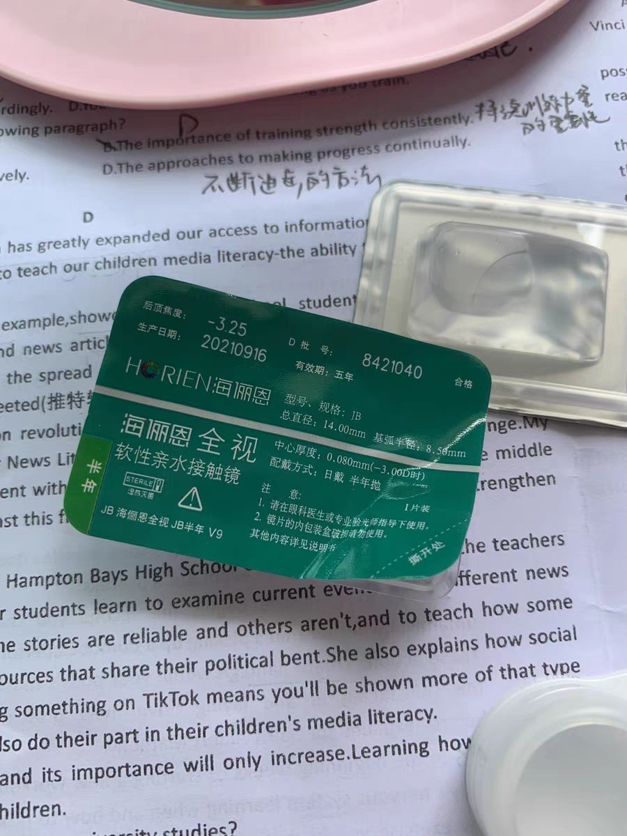 近视星人离开眼镜人畜不分😭😭运动、拍照什么的带框眼镜又不方便😞隐形眼镜和护理液也是一笔大开支,生党表示能省则省😆😆 海俪恩隐形眼镜 我一直用的就是图片这款,海俪恩全视。是我在眼镜店配眼镜时,老板推荐的,然后一直用着这款,在眼镜店💰不记得多少了 以前看别人戴感觉好可怕,像是扣眼珠子似的🤣,但是作为大脸的我真的不适合戴框,虽然左右眼度数不到300度,但是不戴吧又瞅不清人(真是好多姐妹的苦恼😭) 这...